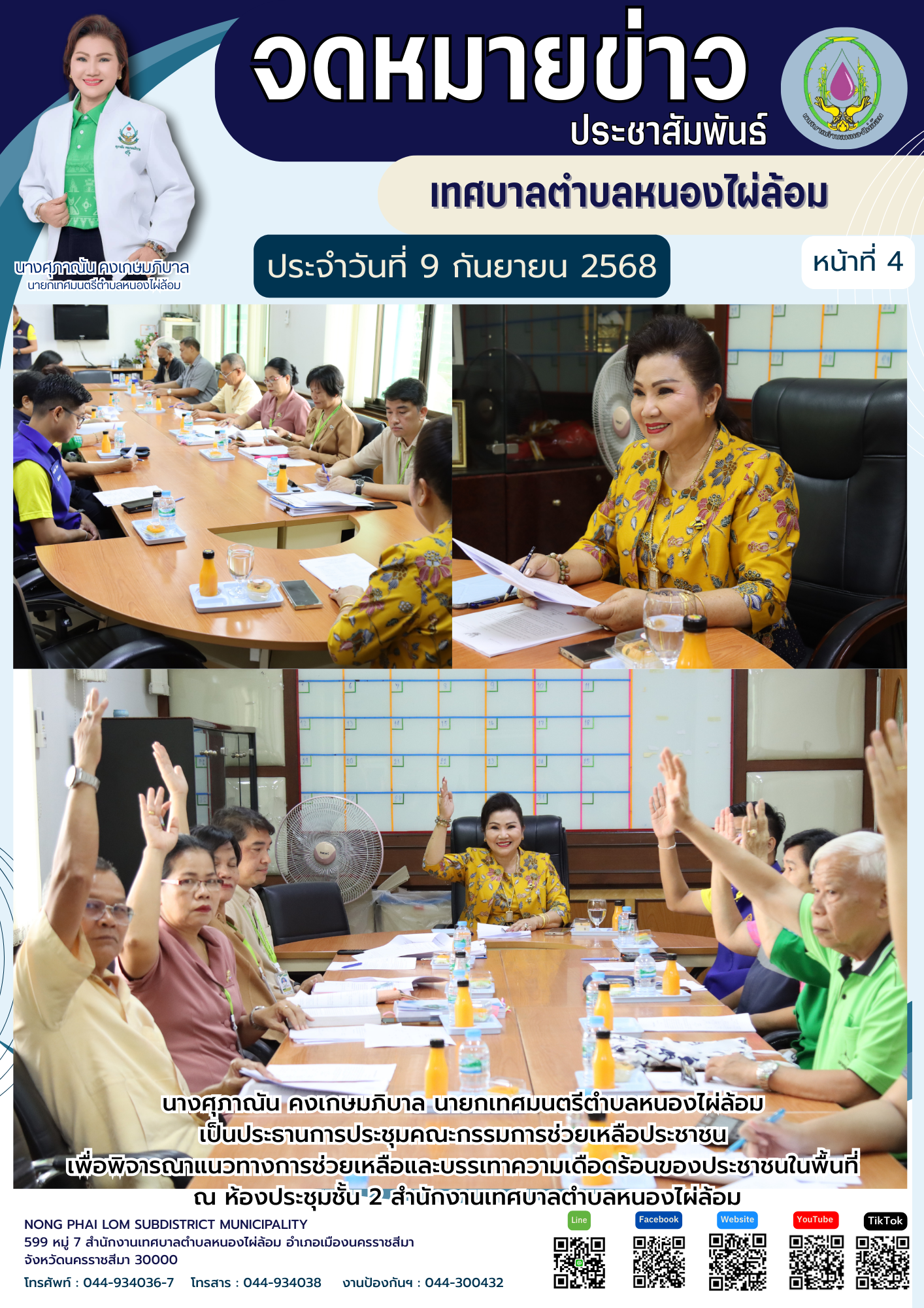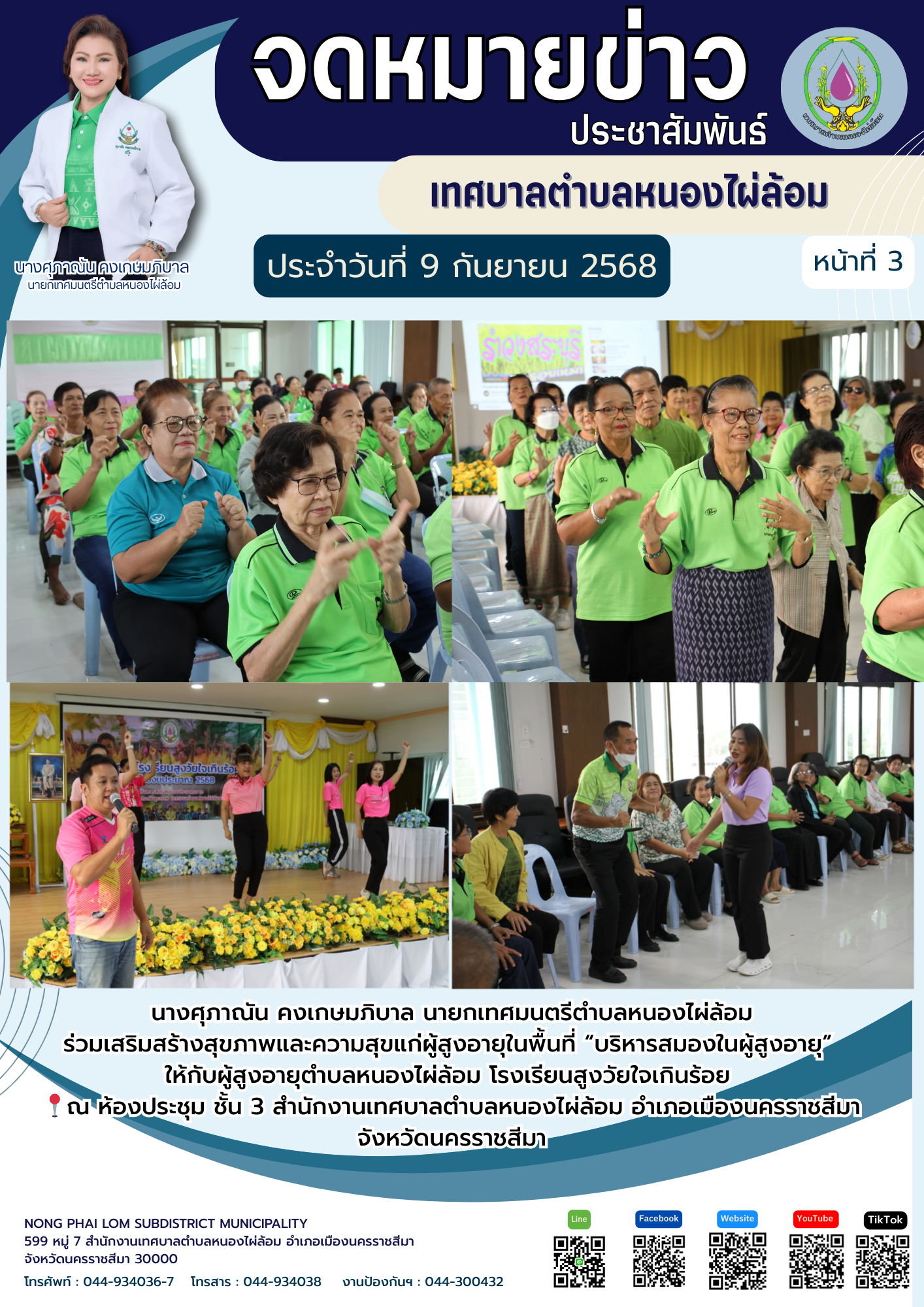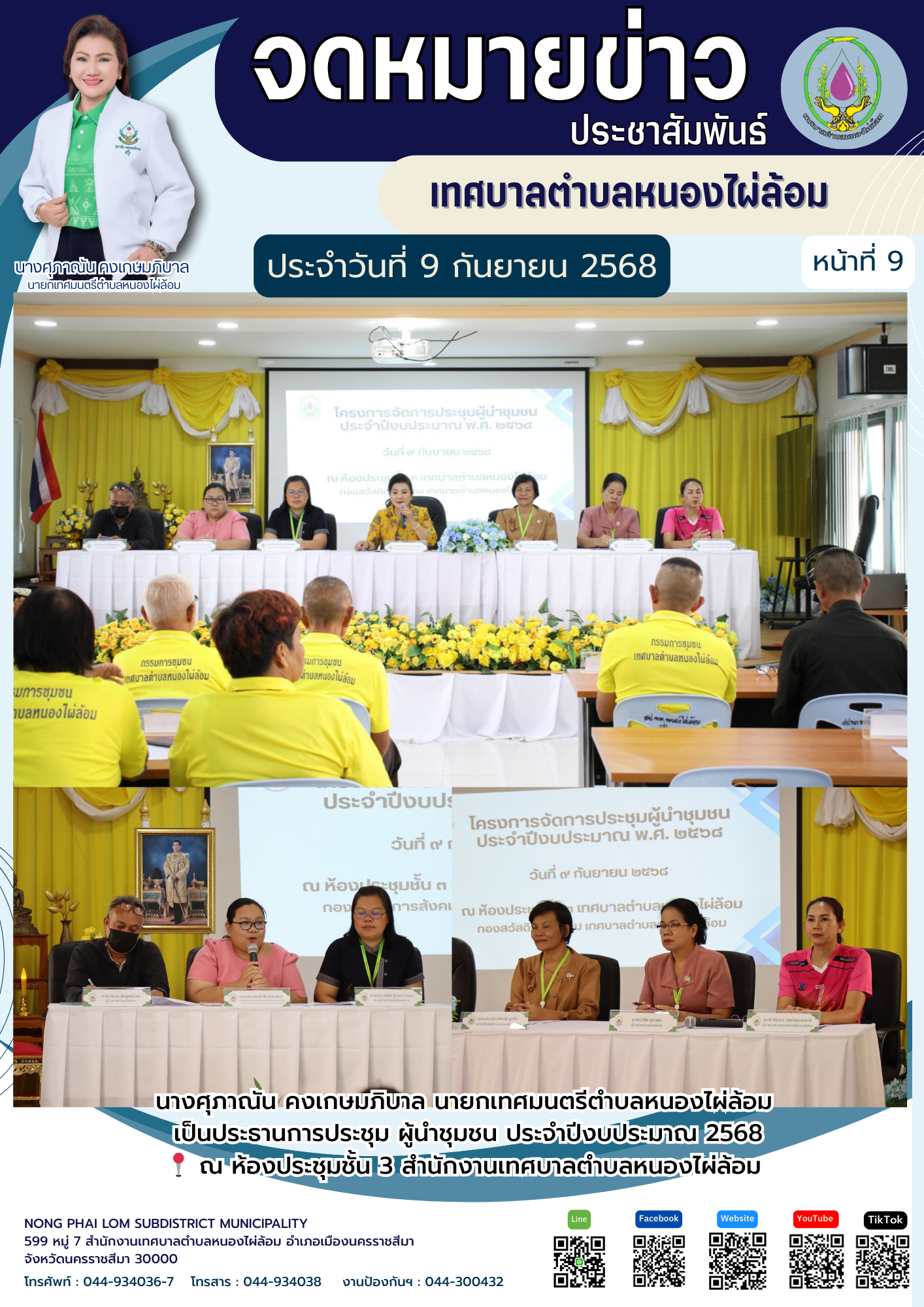 จดหมายข่าวเทศบาลตำบลหนองไผ่ล้อมประจำวันที่ 9 กันยายน 2568