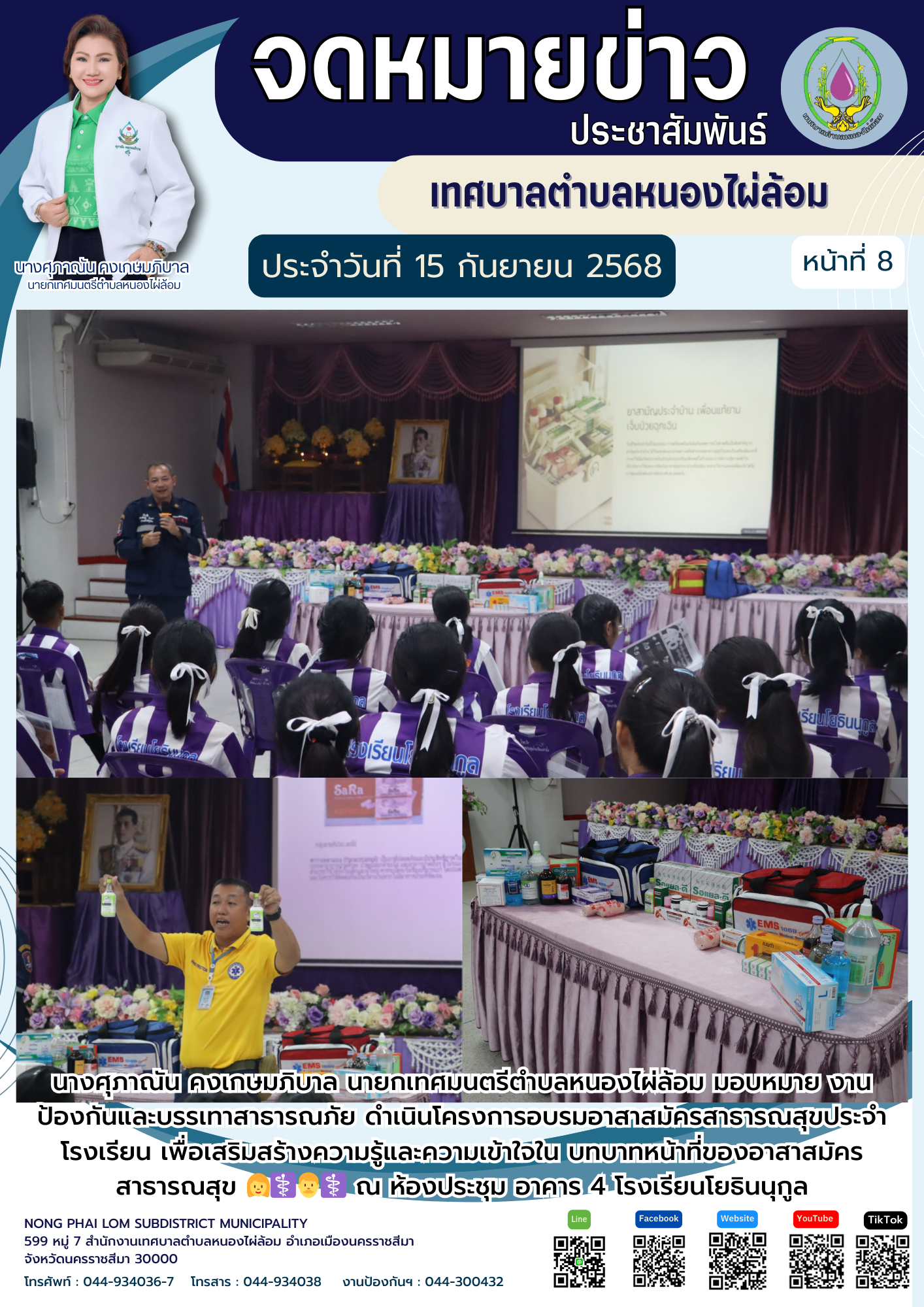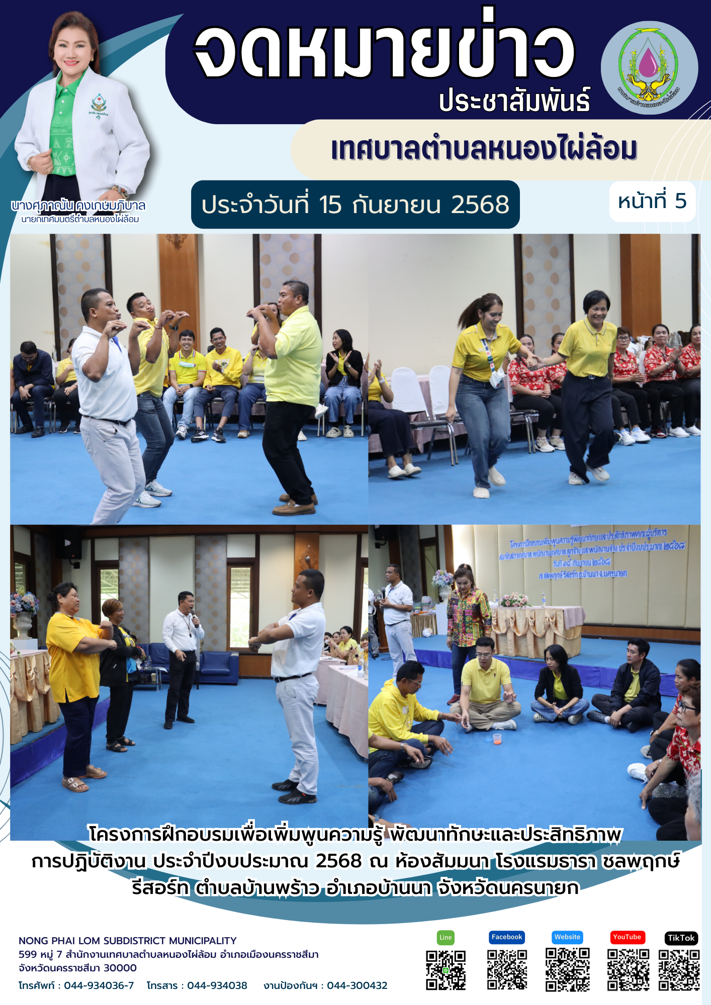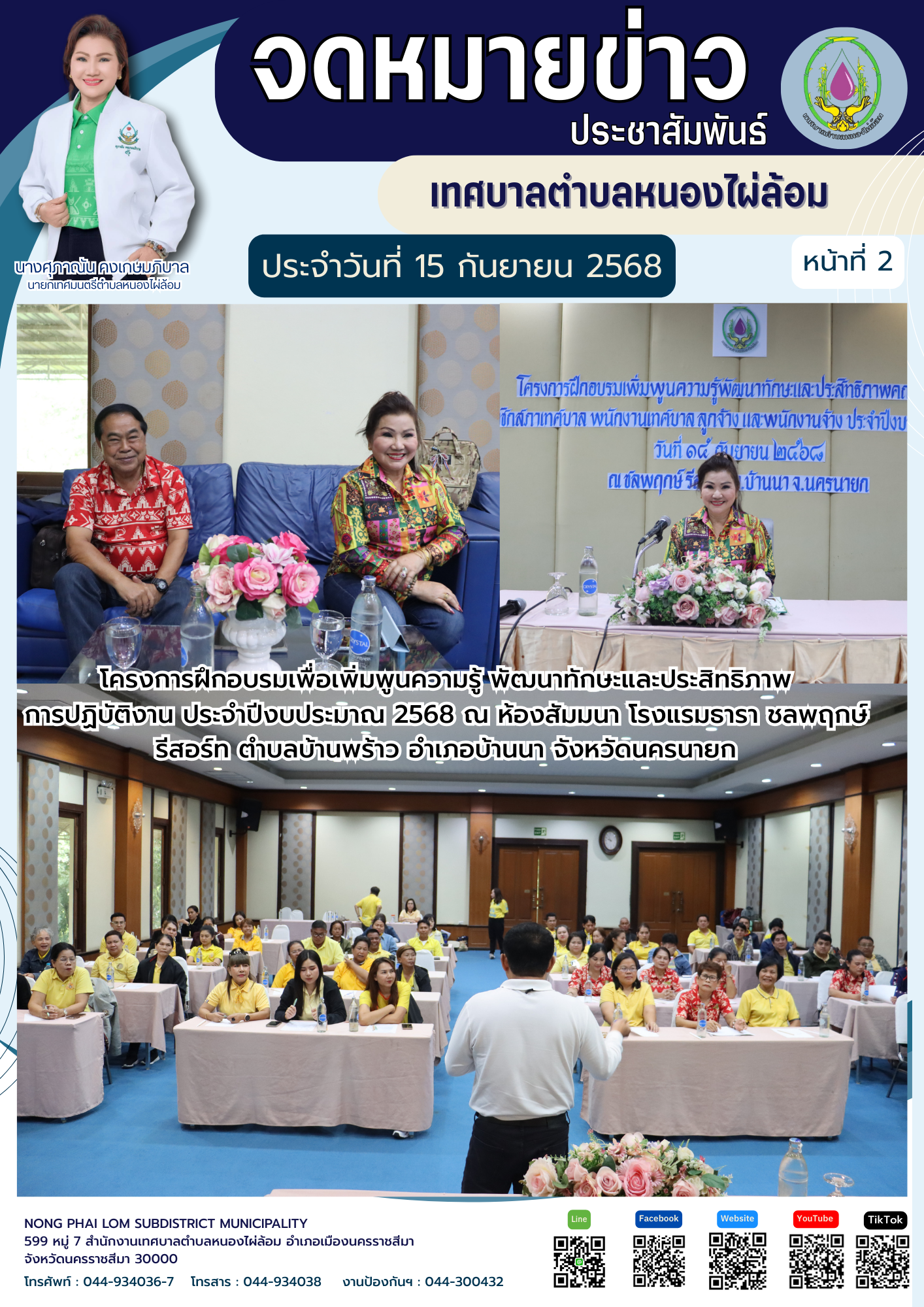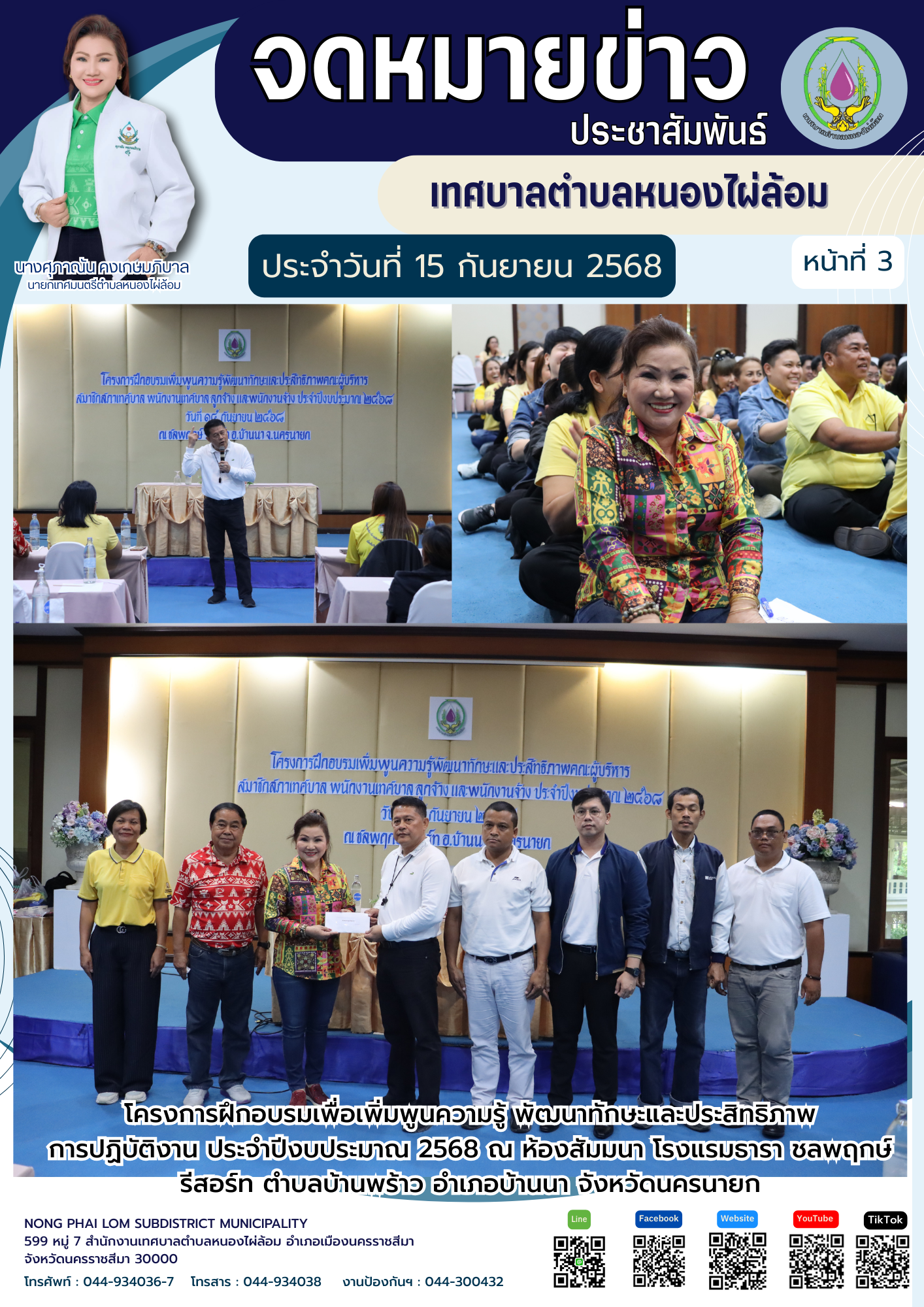 จดหมายข่าวเทศบาลตำบลหนองไผ่ล้อมประจำวันที่ 15 กันยายน 2568