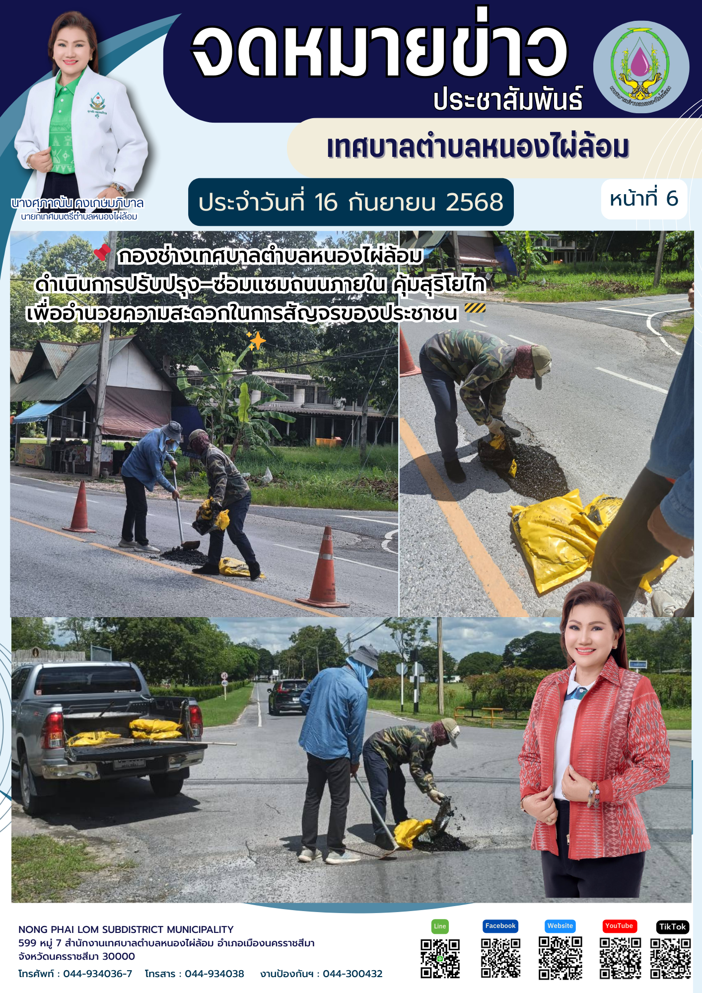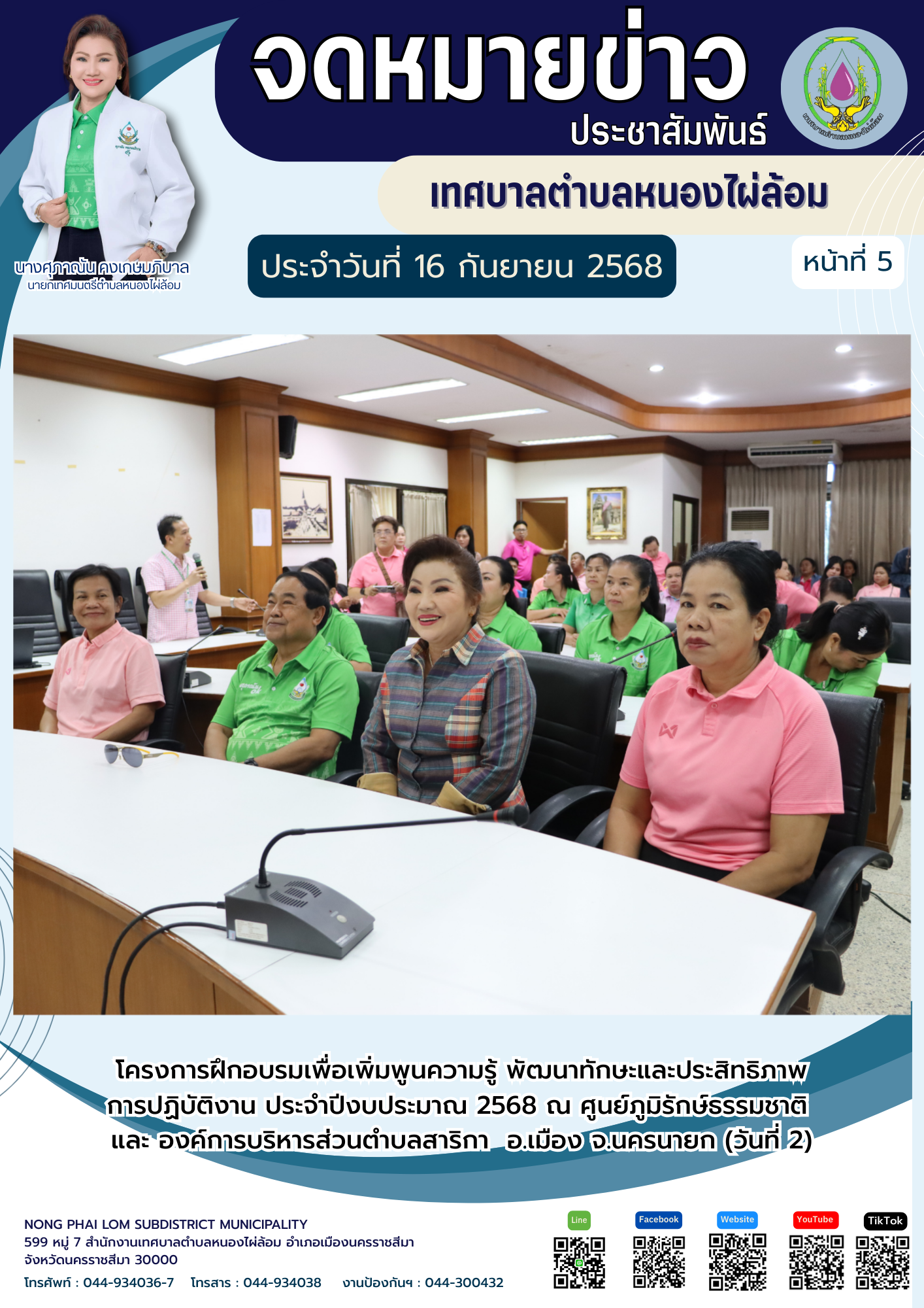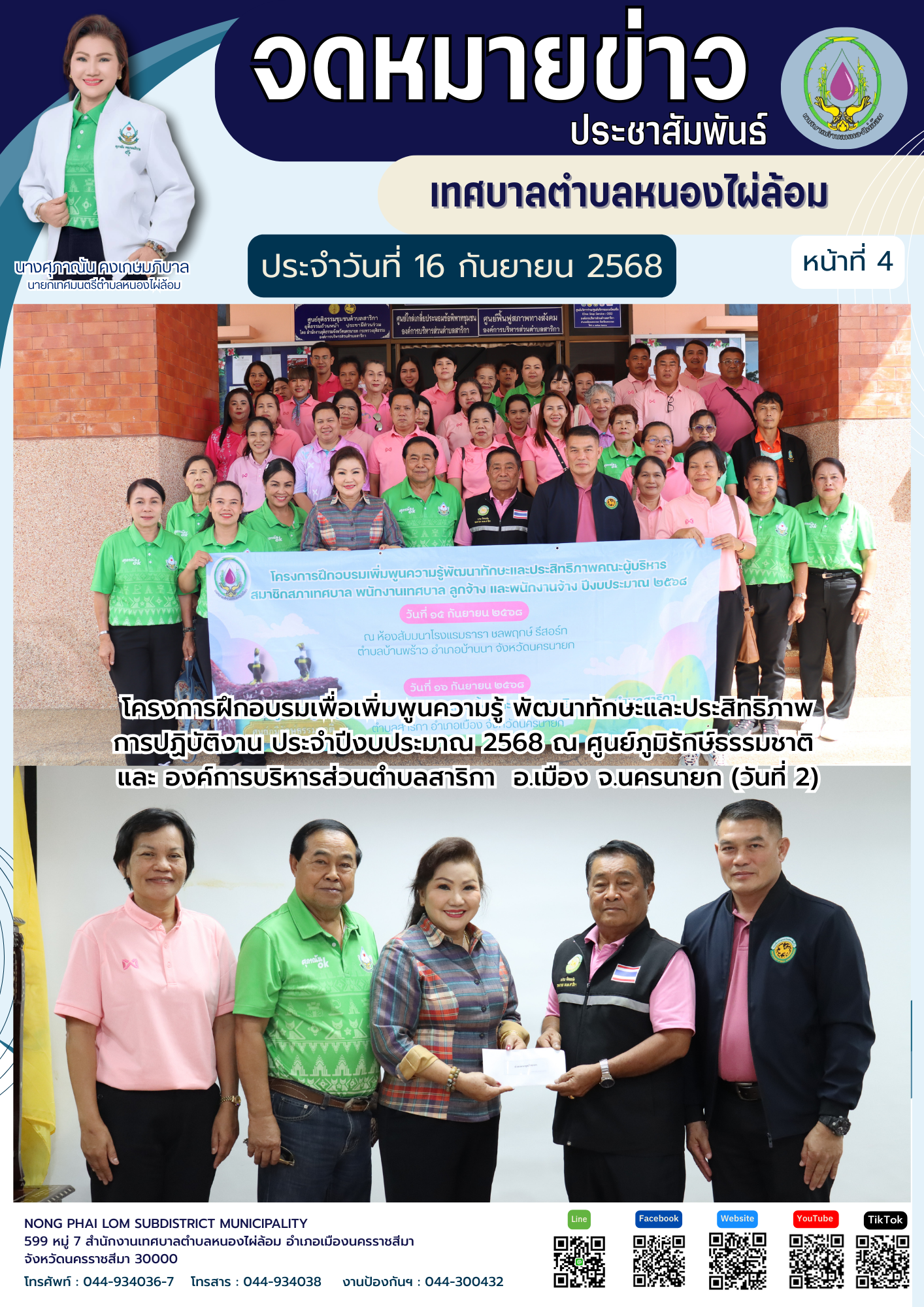 จดหมายข่าวเทศบาลตำบลหนองไผ่ล้อมประจำวันที่ 16 กันยายน 2568