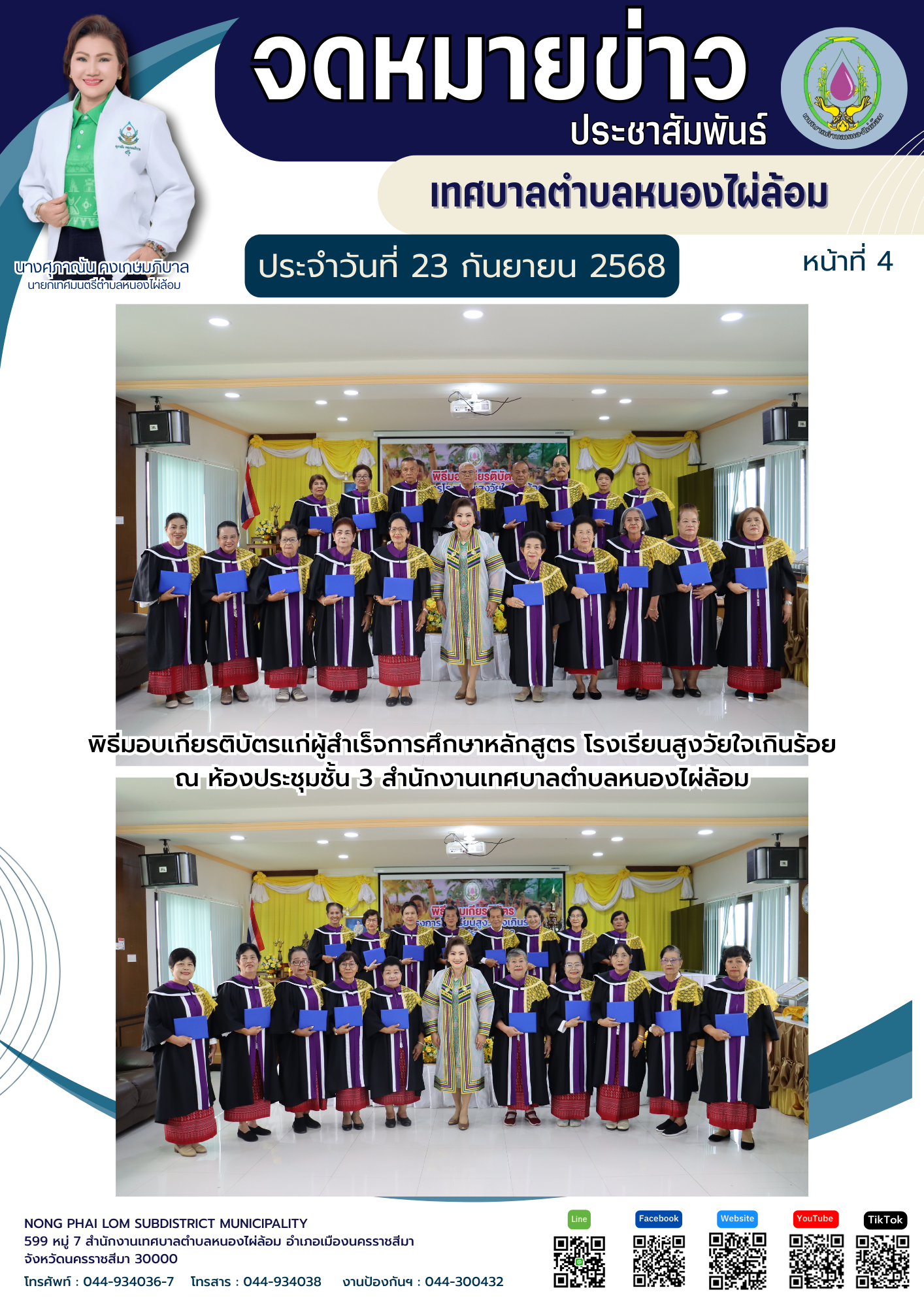 จดหมายข่าวเทศบาลตำบลหนองไผ่ล้อมประจำวันที่ 23 กันยายน 2568