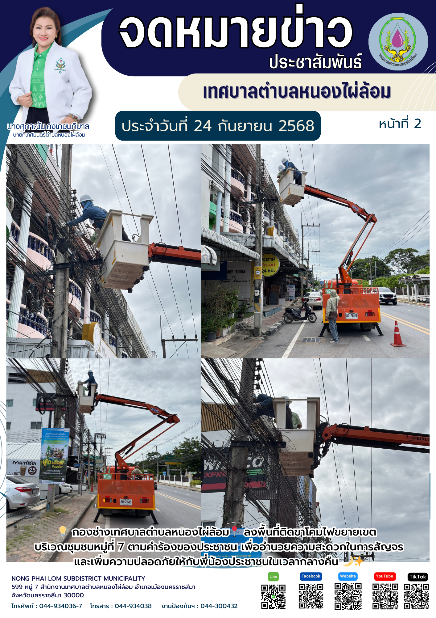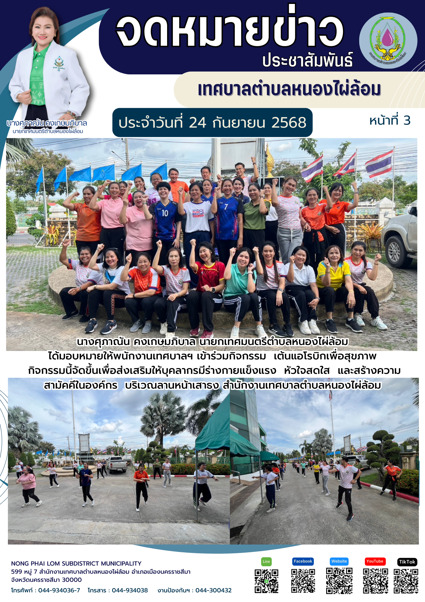 จดหมายข่าวเทศบาลตำบลหนองไผ่ล้อมประจำวันที่ 24 กันยายน 2568