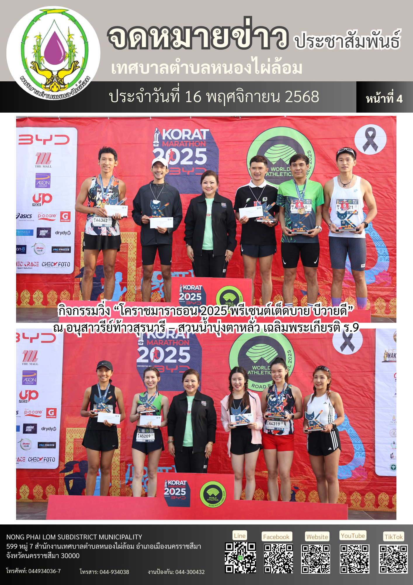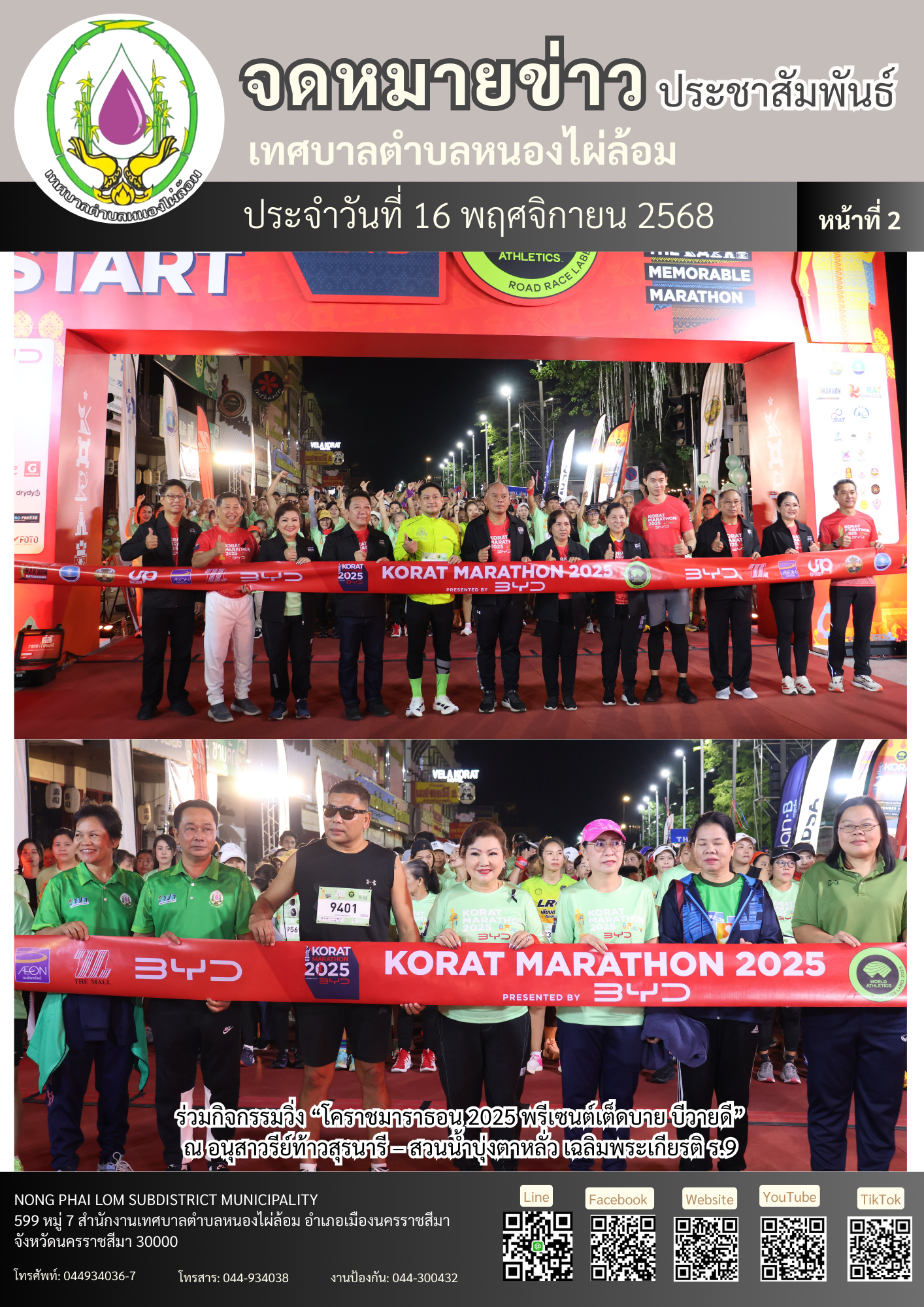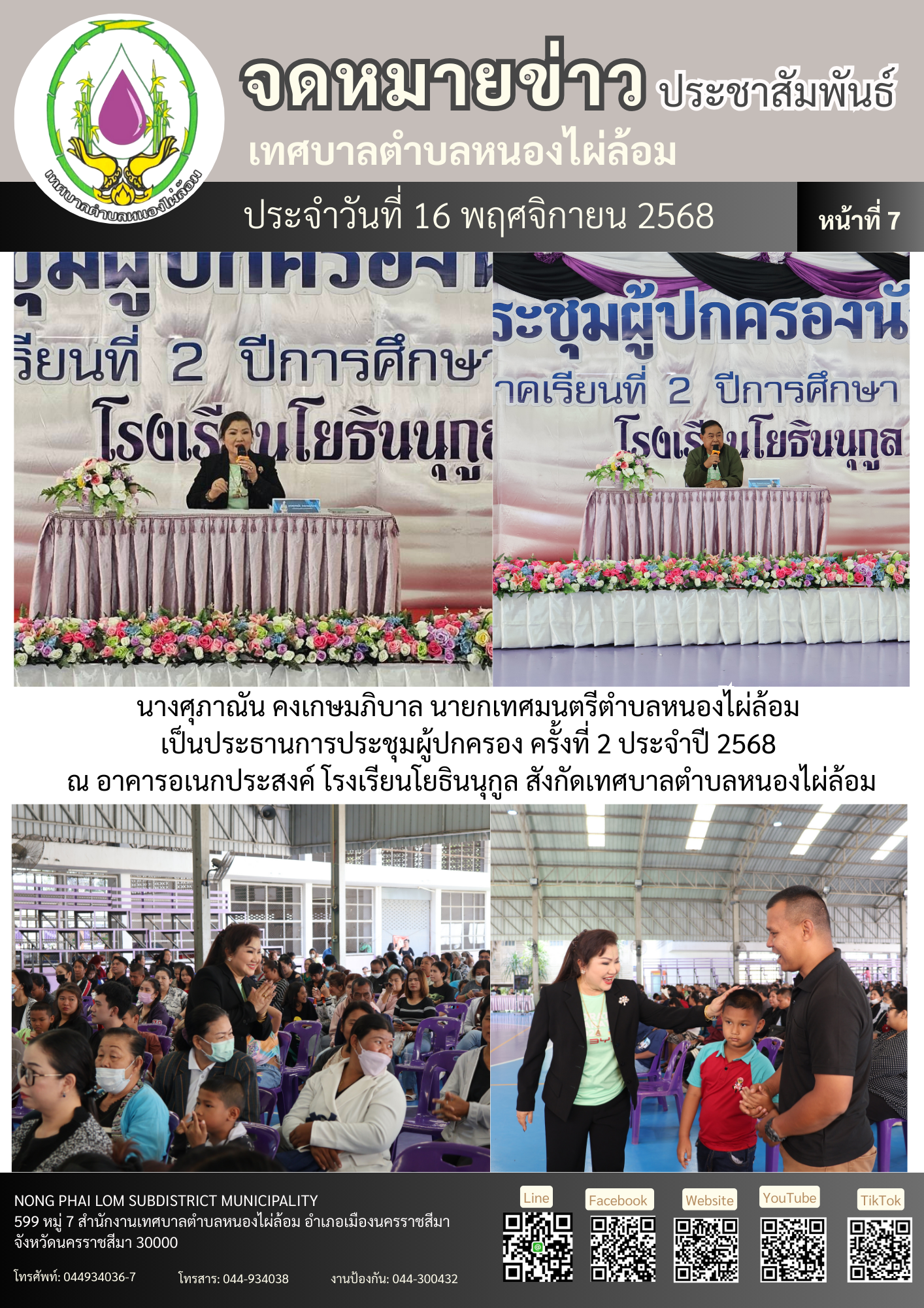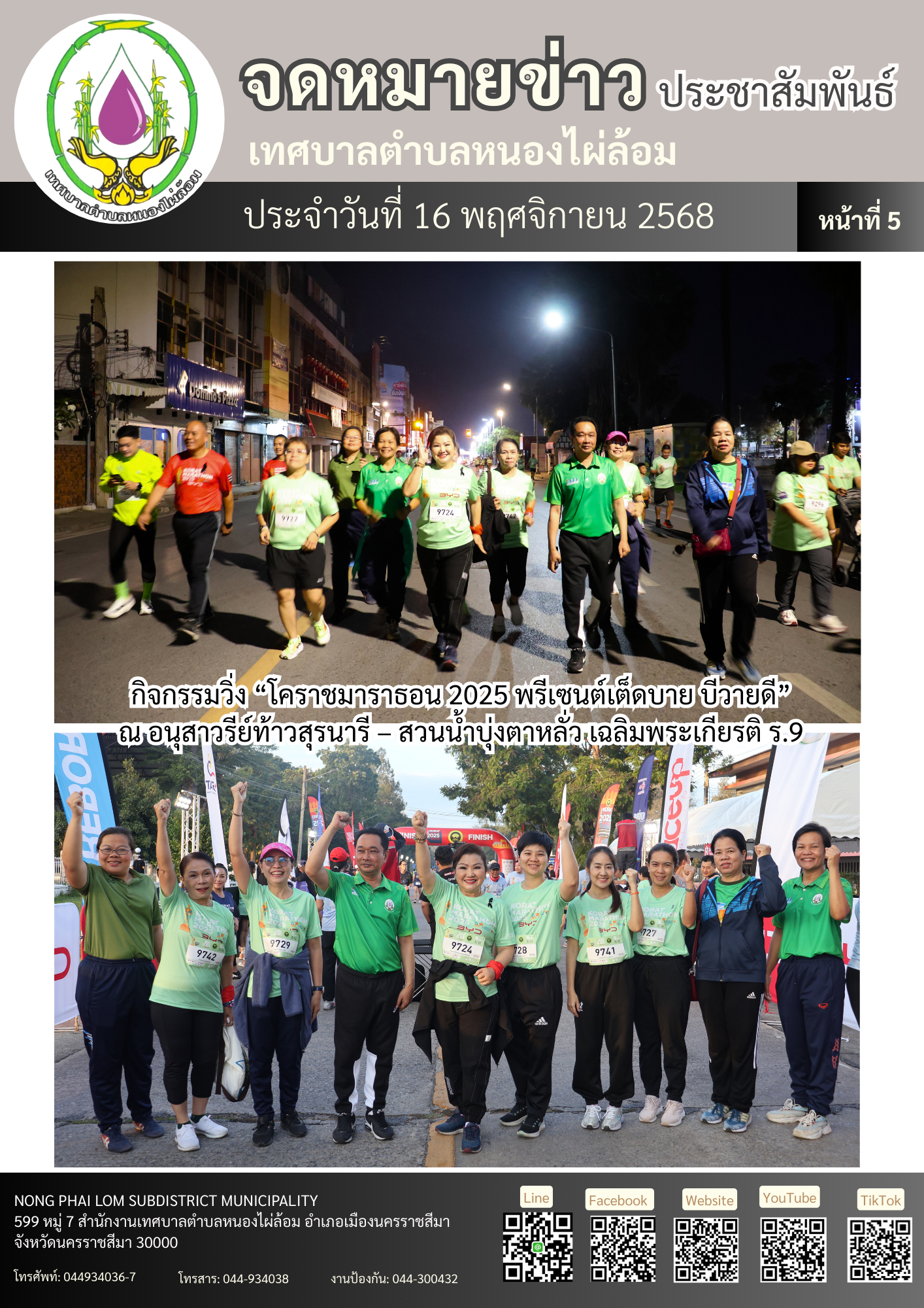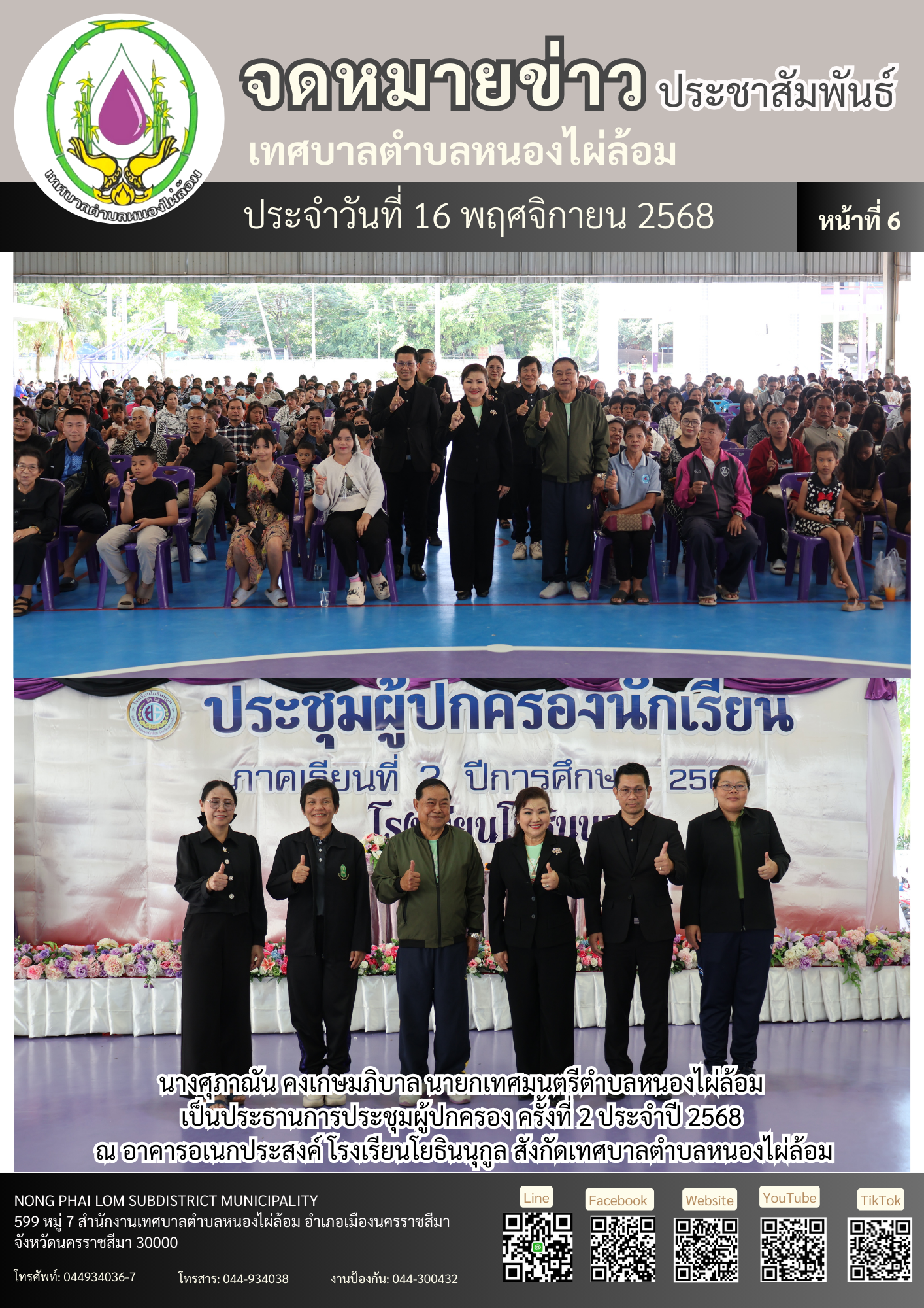 จดหมายข่าวเทศบาลตำบลหนองไผ่ล้อม ฉบับประจำวันที่ 16 พฤศจิกายน 2568