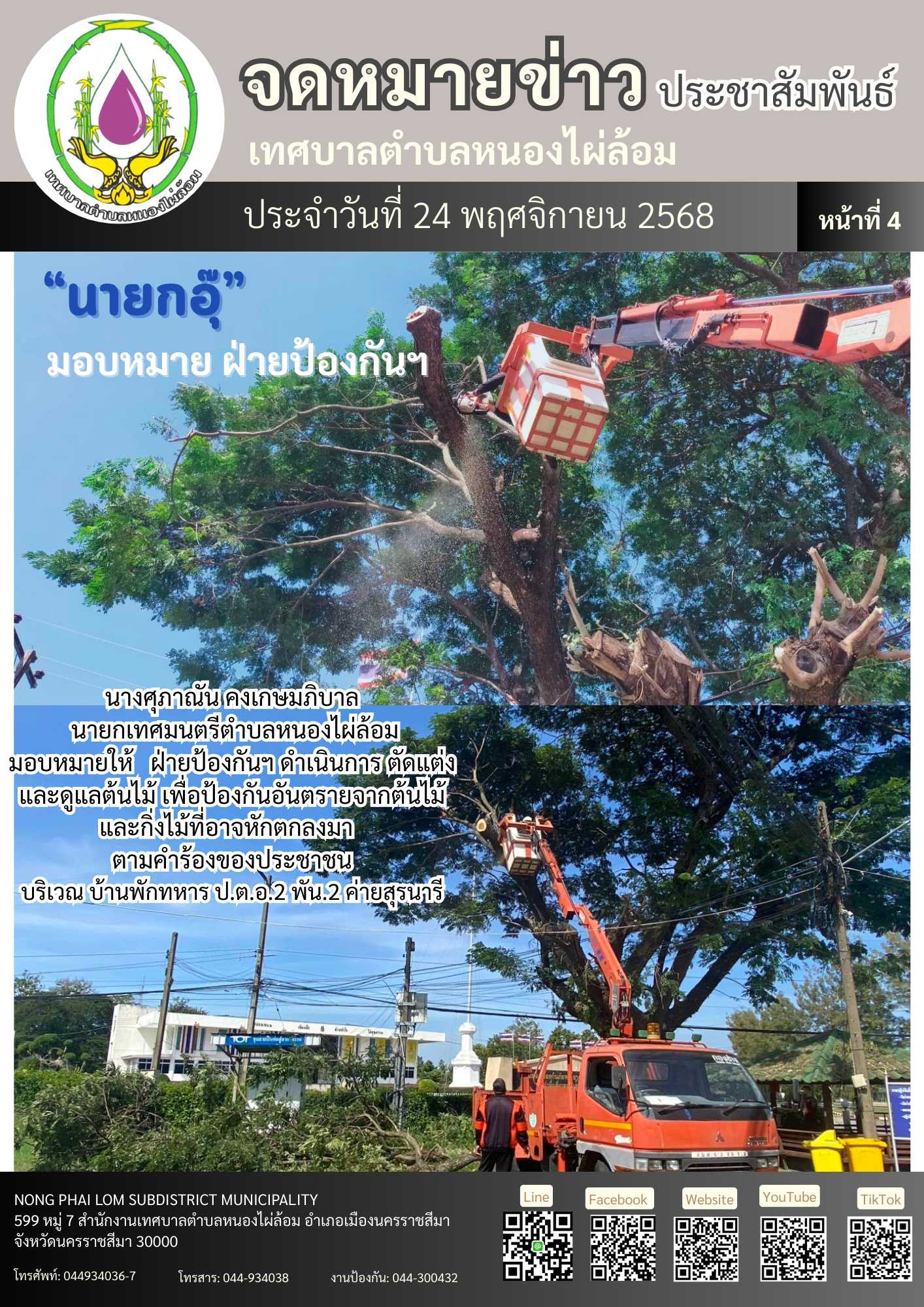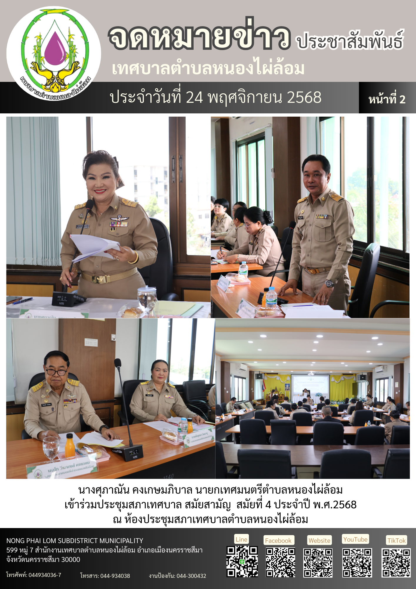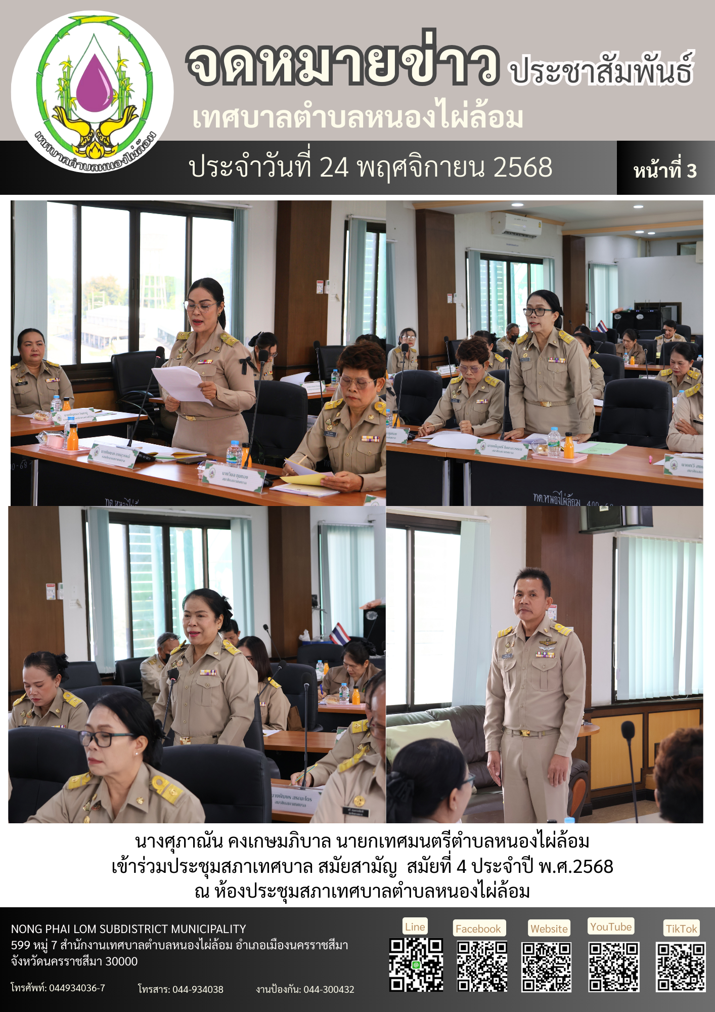จดหมายข่าวเทศบาลตำบลหนองไผ่ล้อม ฉบับประจำวันที่ 24 พฤศจิกายน 2568