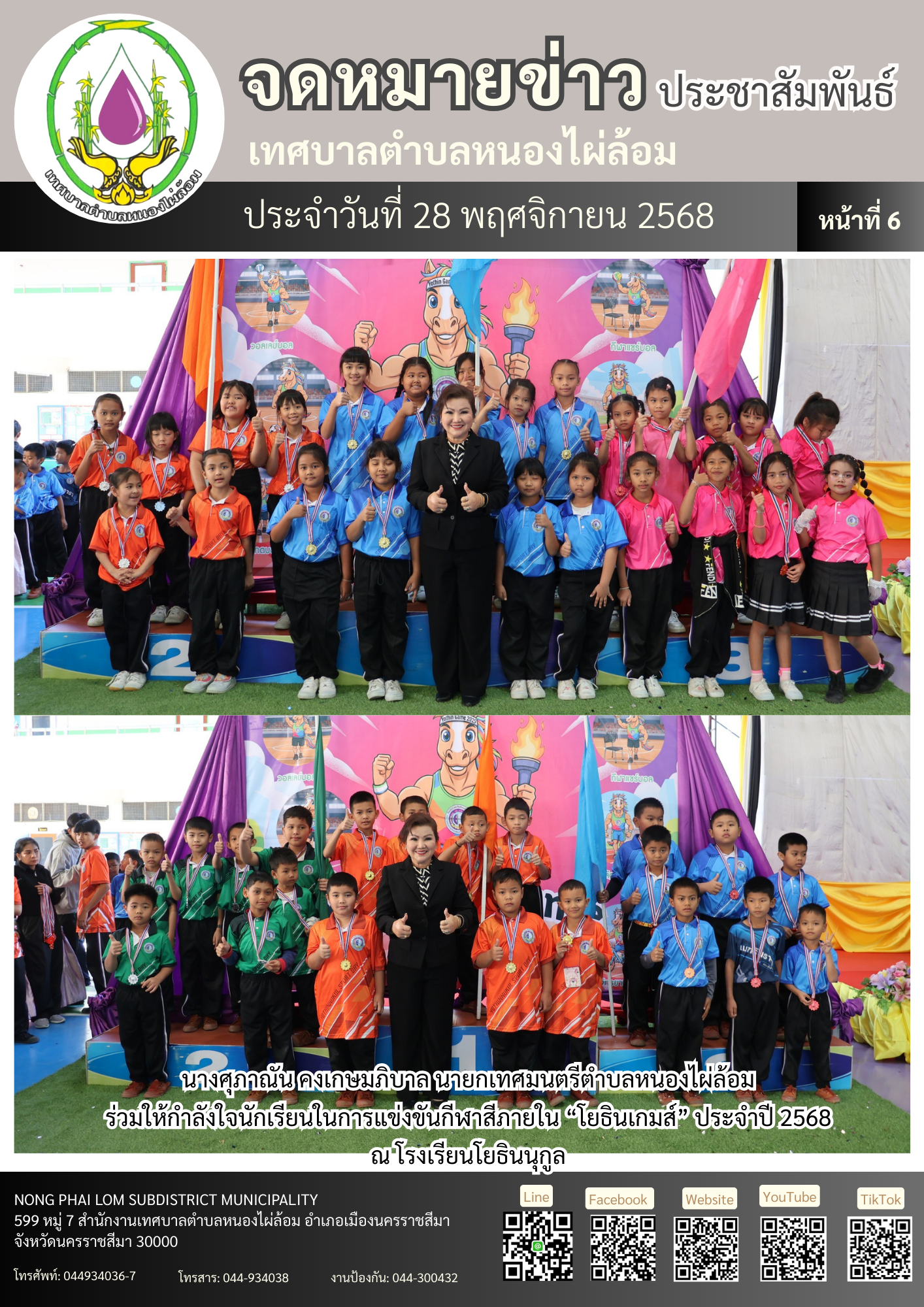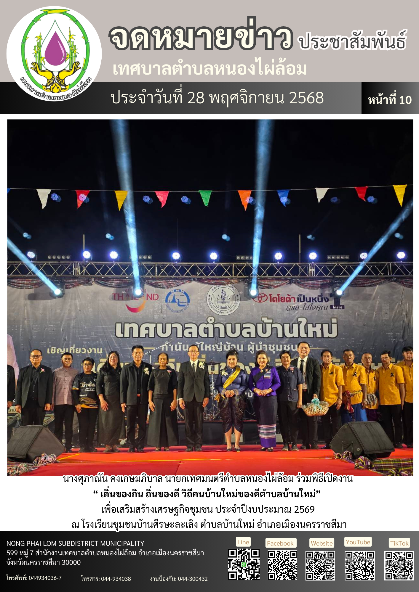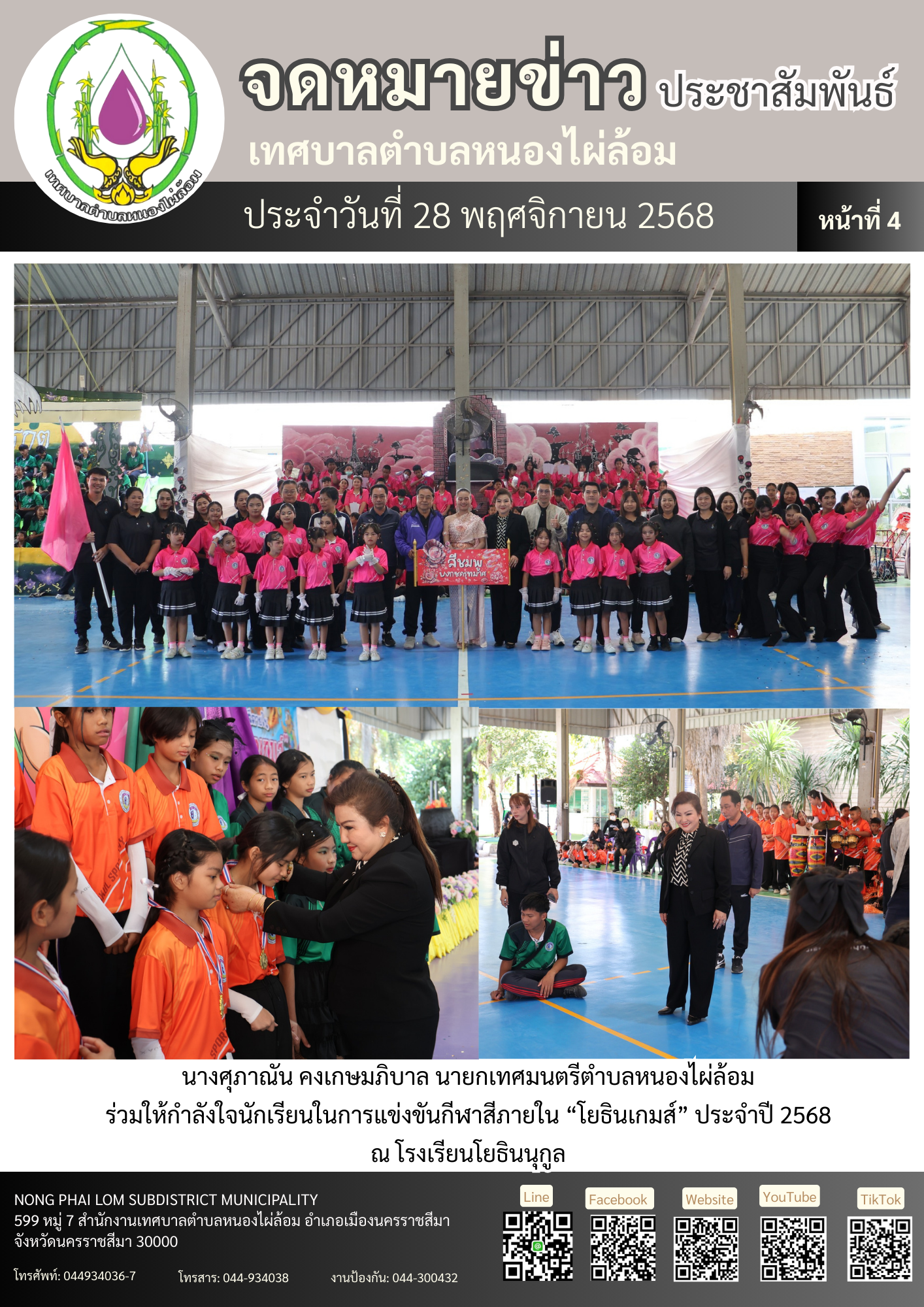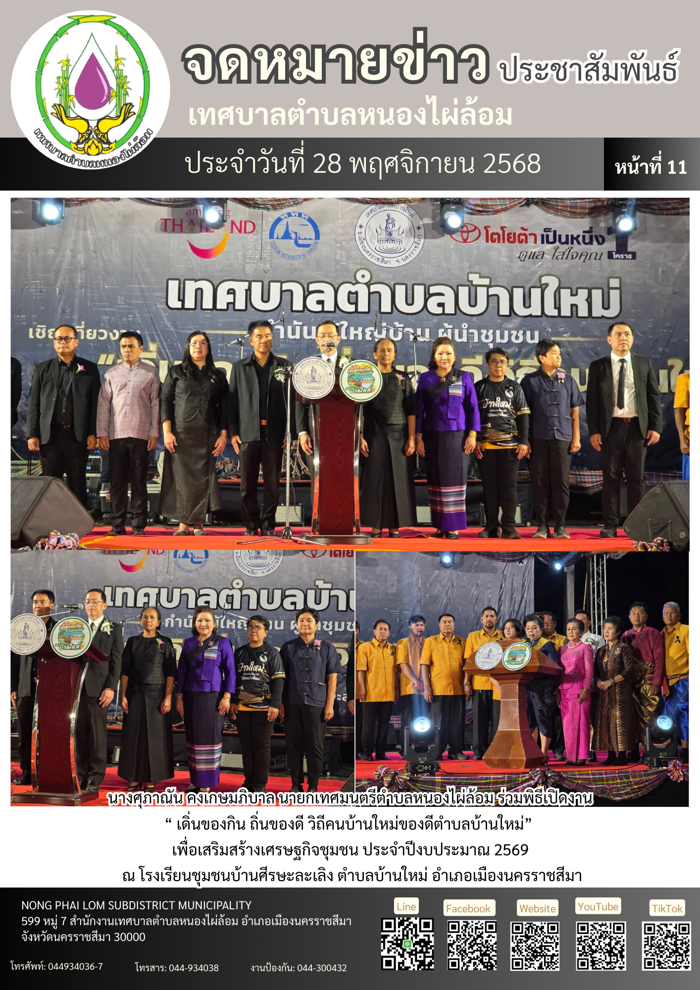จดหมายข่าวเทศบาลตำบลหนองไผ่ล้อม ฉบับประจำวันที่ 28 พฤศจิกายน 2568