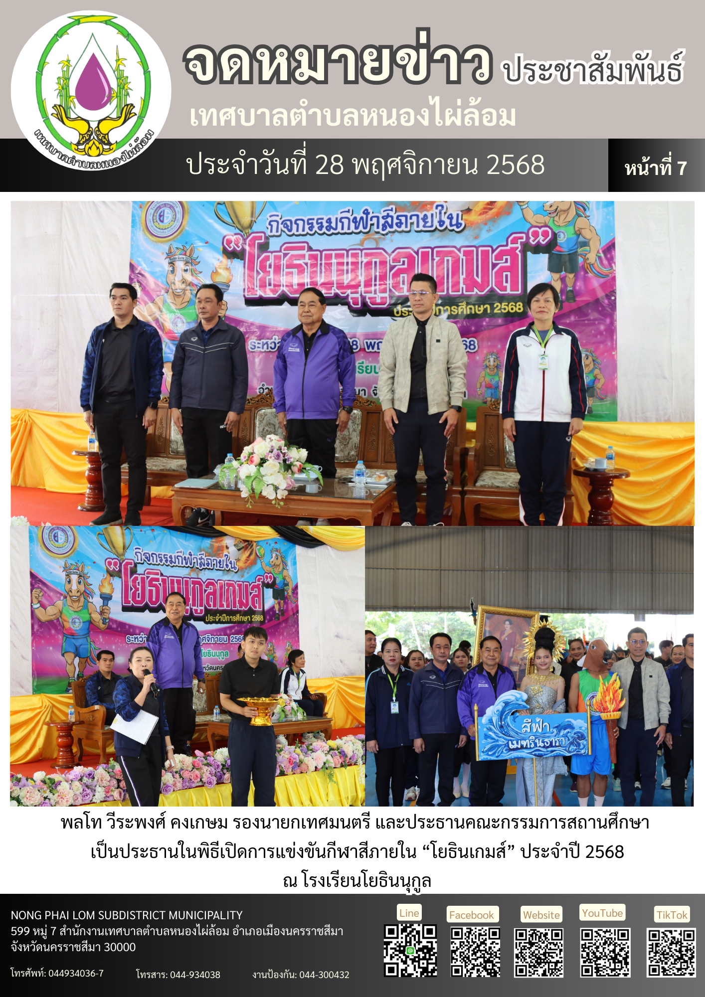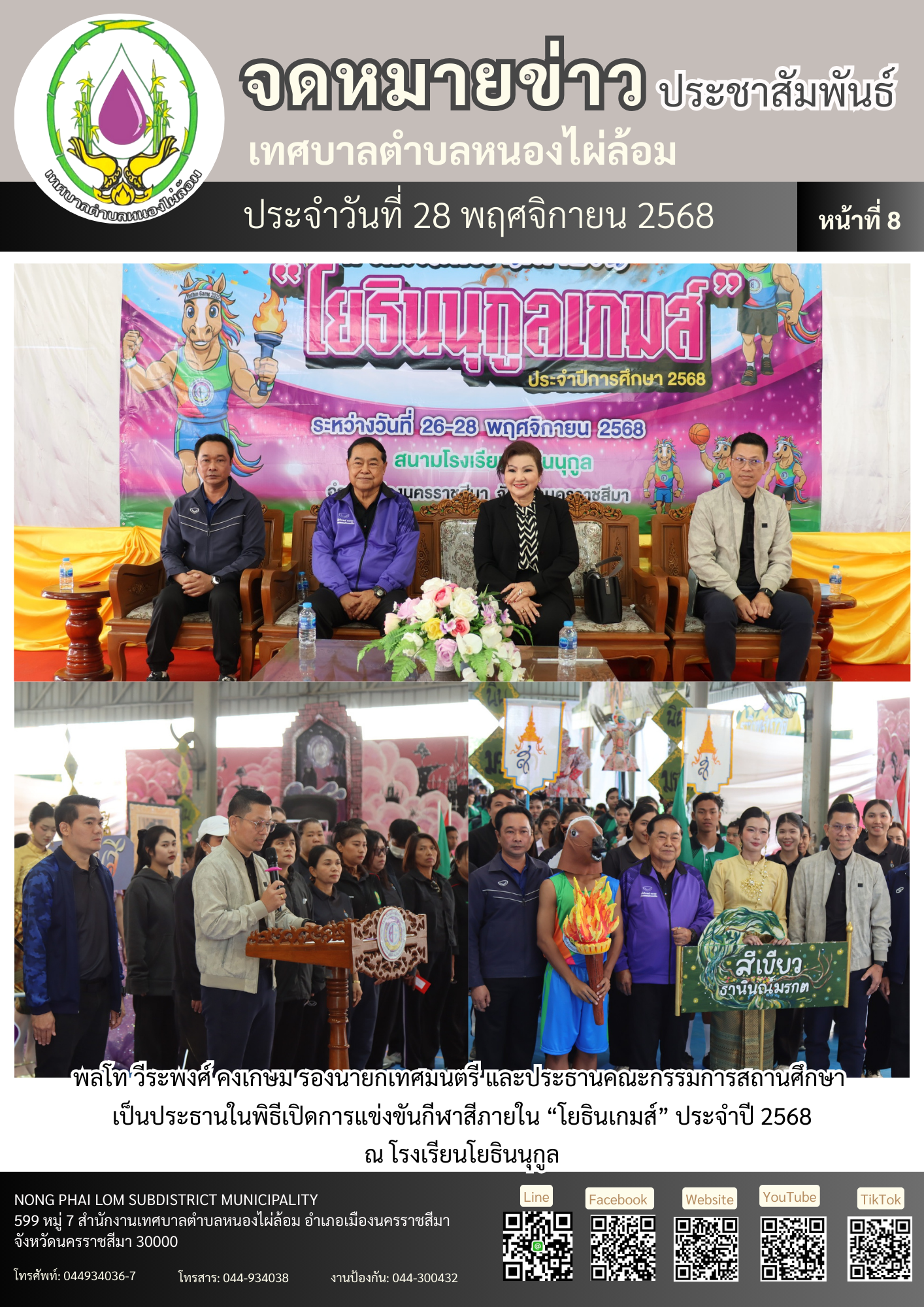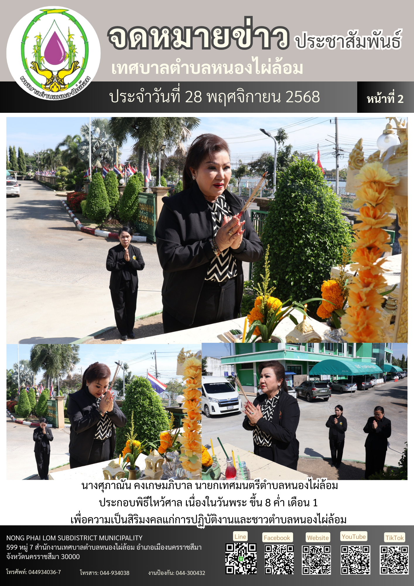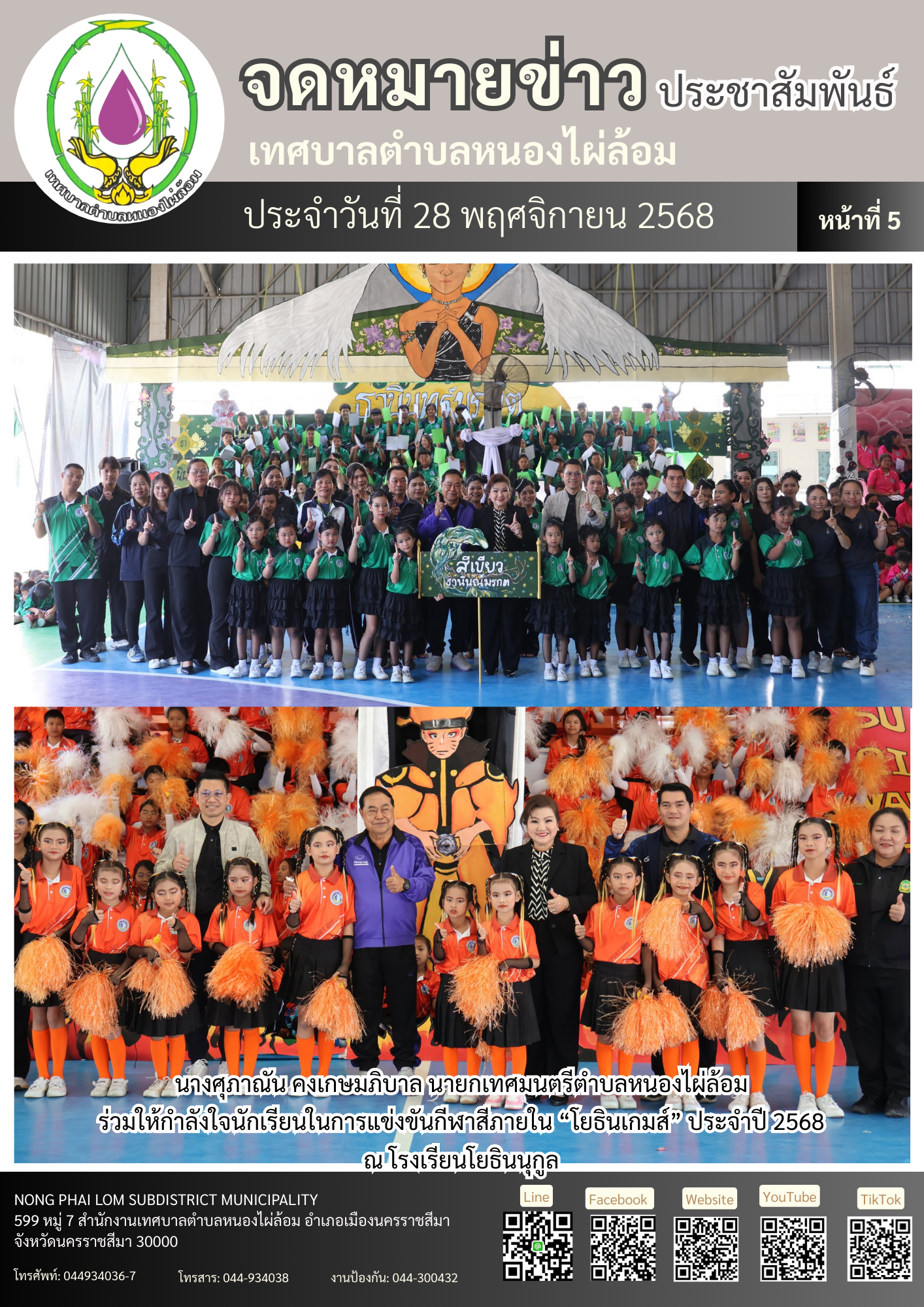 จดหมายข่าวเทศบาลตำบลหนองไผ่ล้อม ฉบับประจำวันที่ 28 พฤศจิกายน 2568