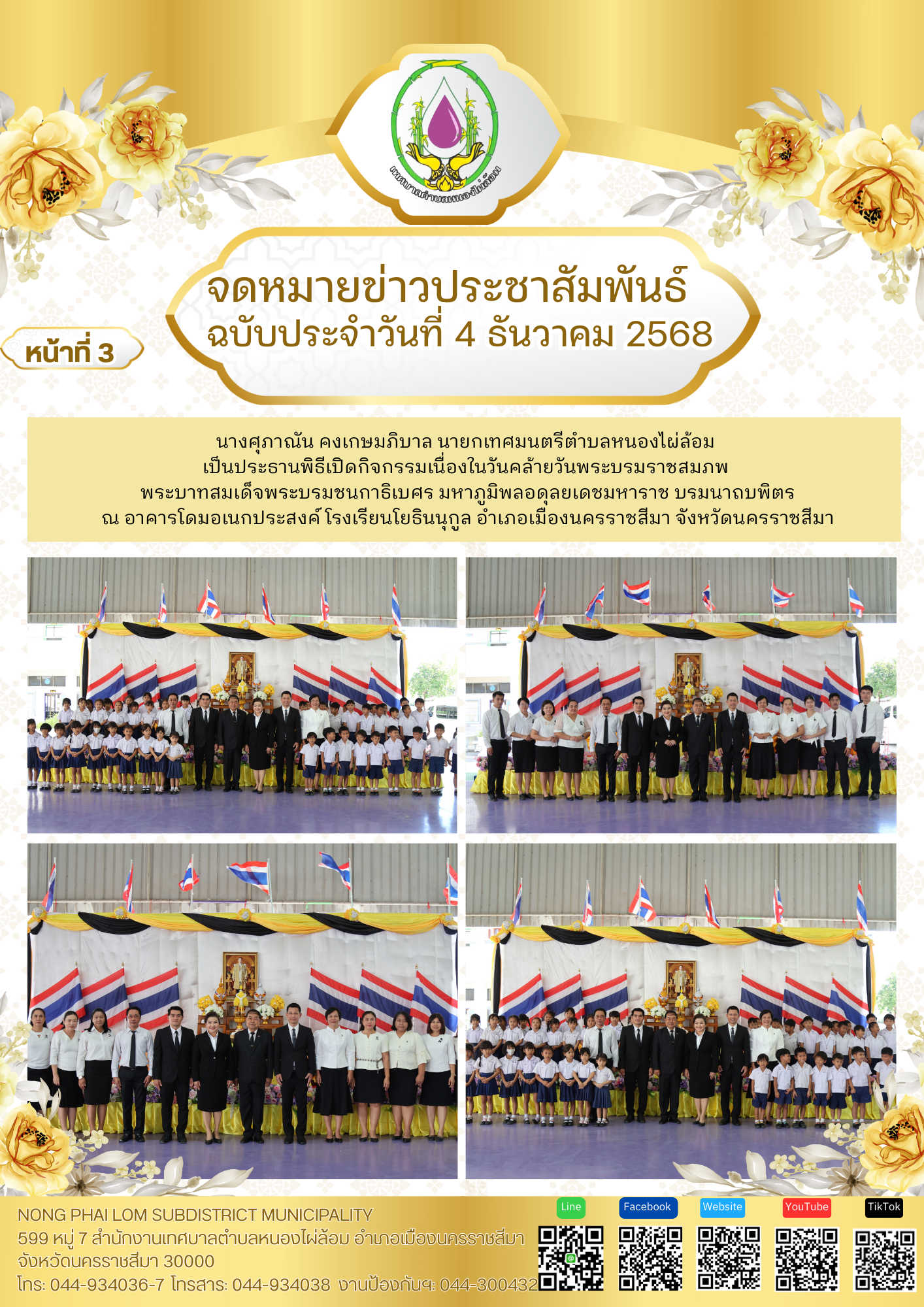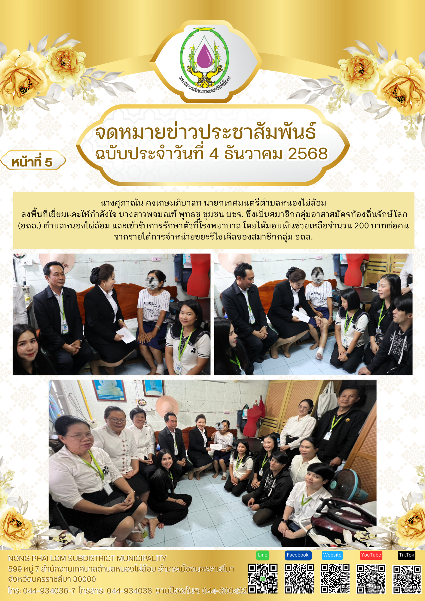 จดหมายข่าวเทศบาลตำบลหนองไผ่ล้อม ฉบับประจำวันที่ 4 ธันวาคม 2568