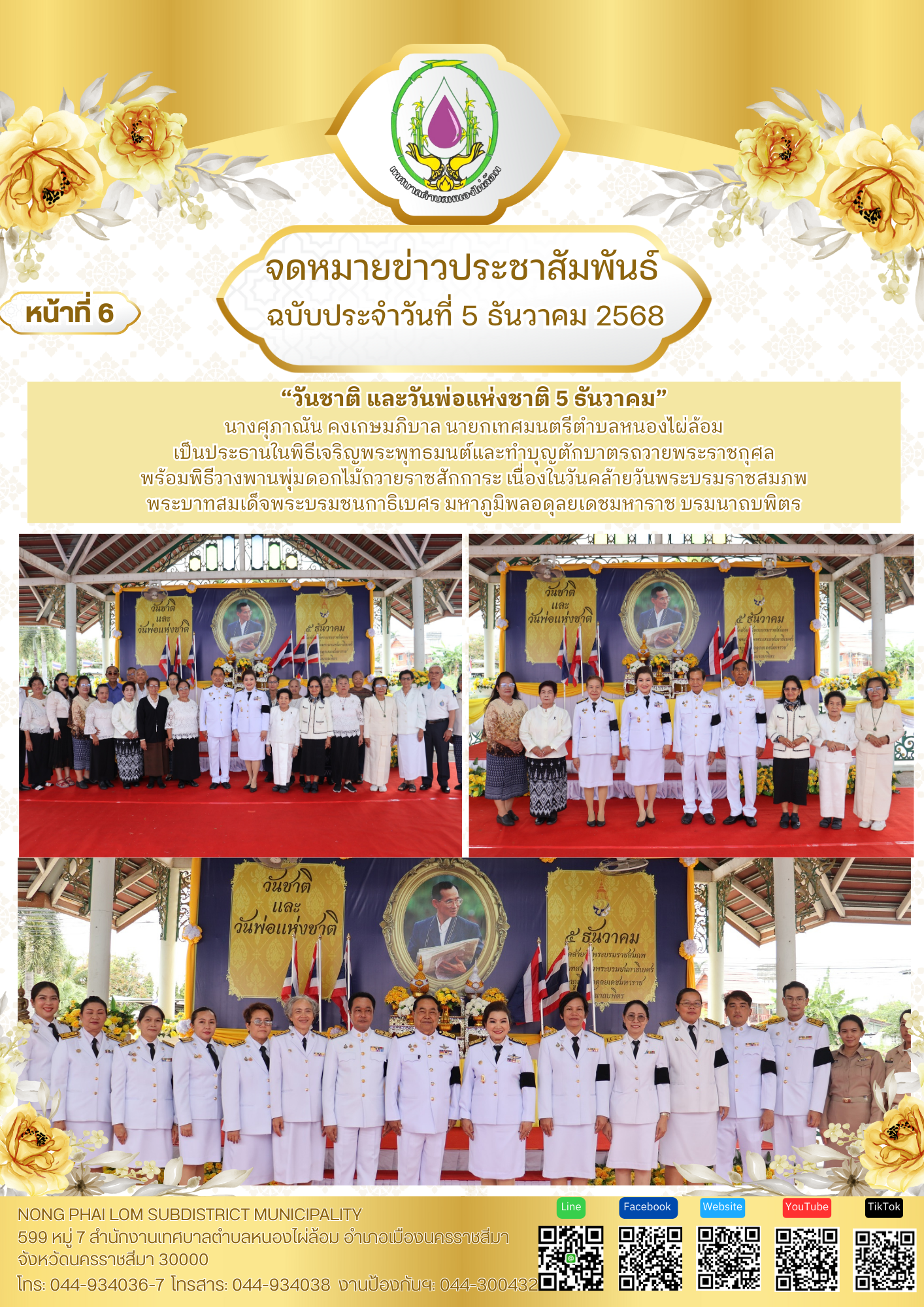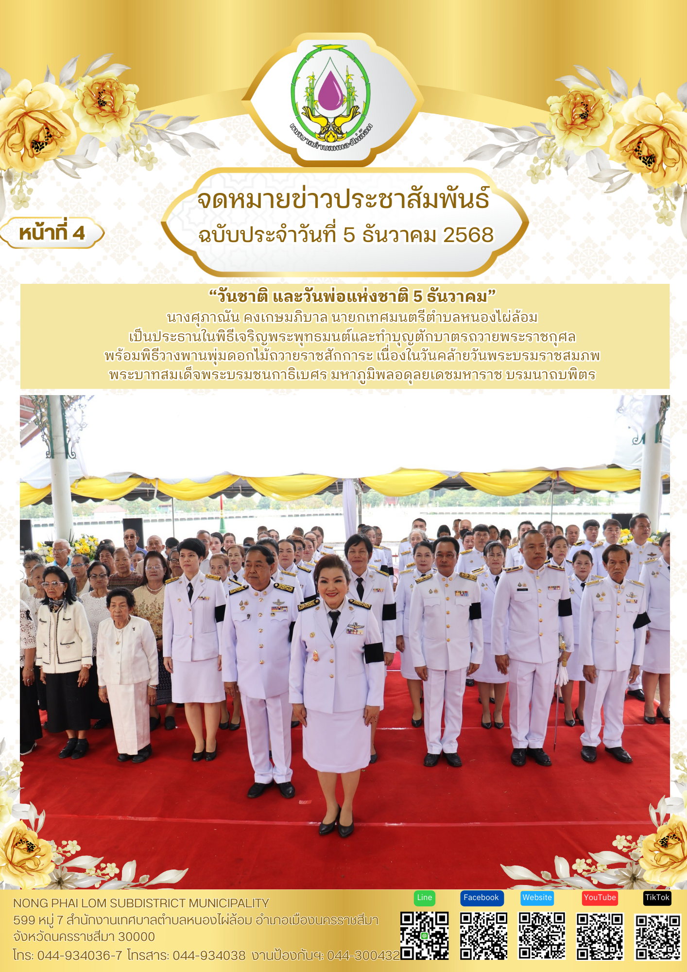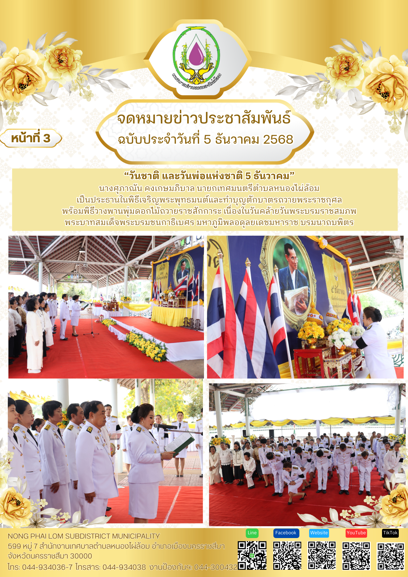 จดหมายข่าวเทศบาลตำบลหนองไผ่ล้อม ฉบับประจำวันที่ 5 ธันวาคม 2568