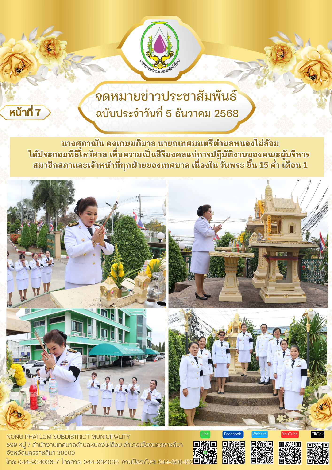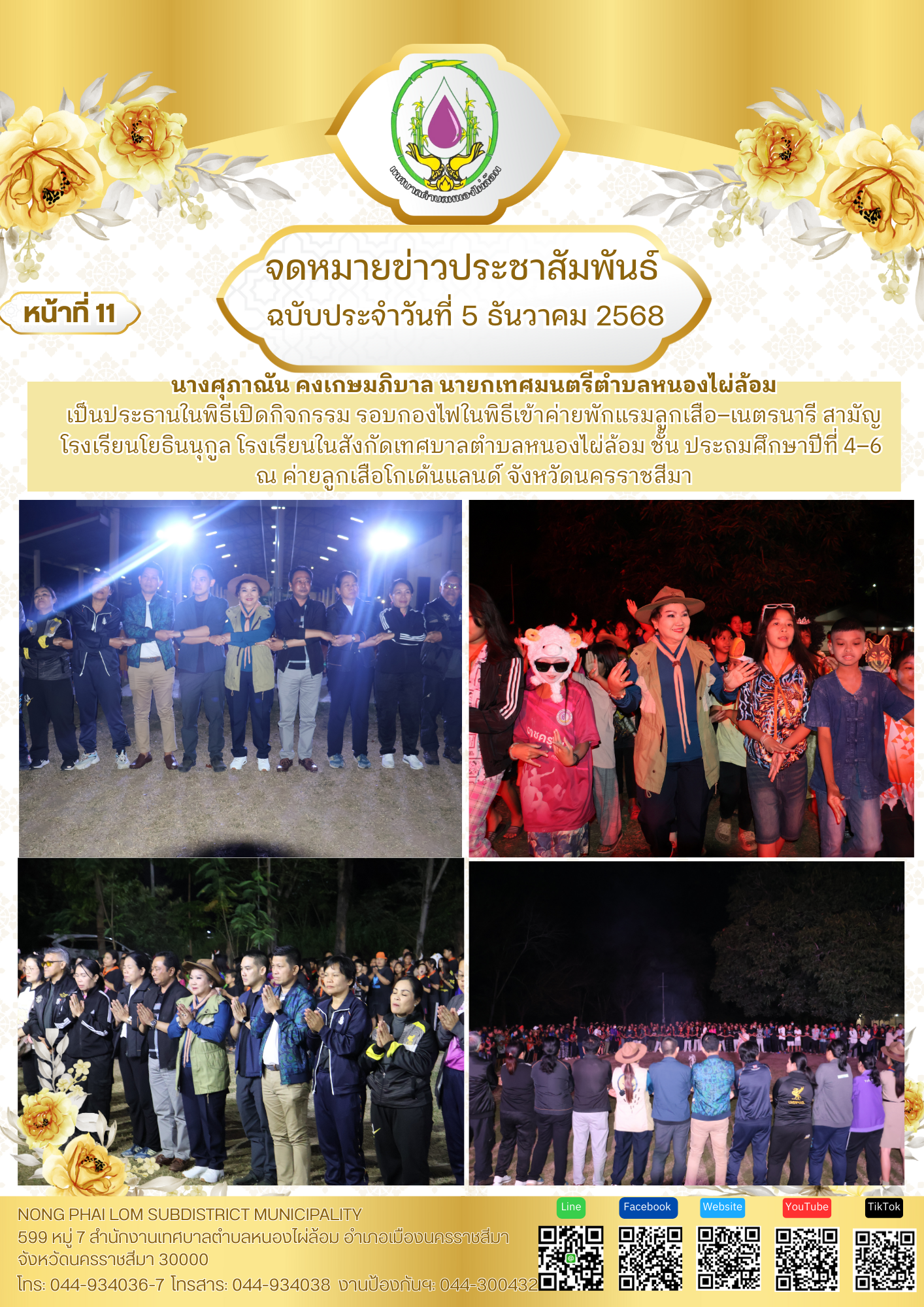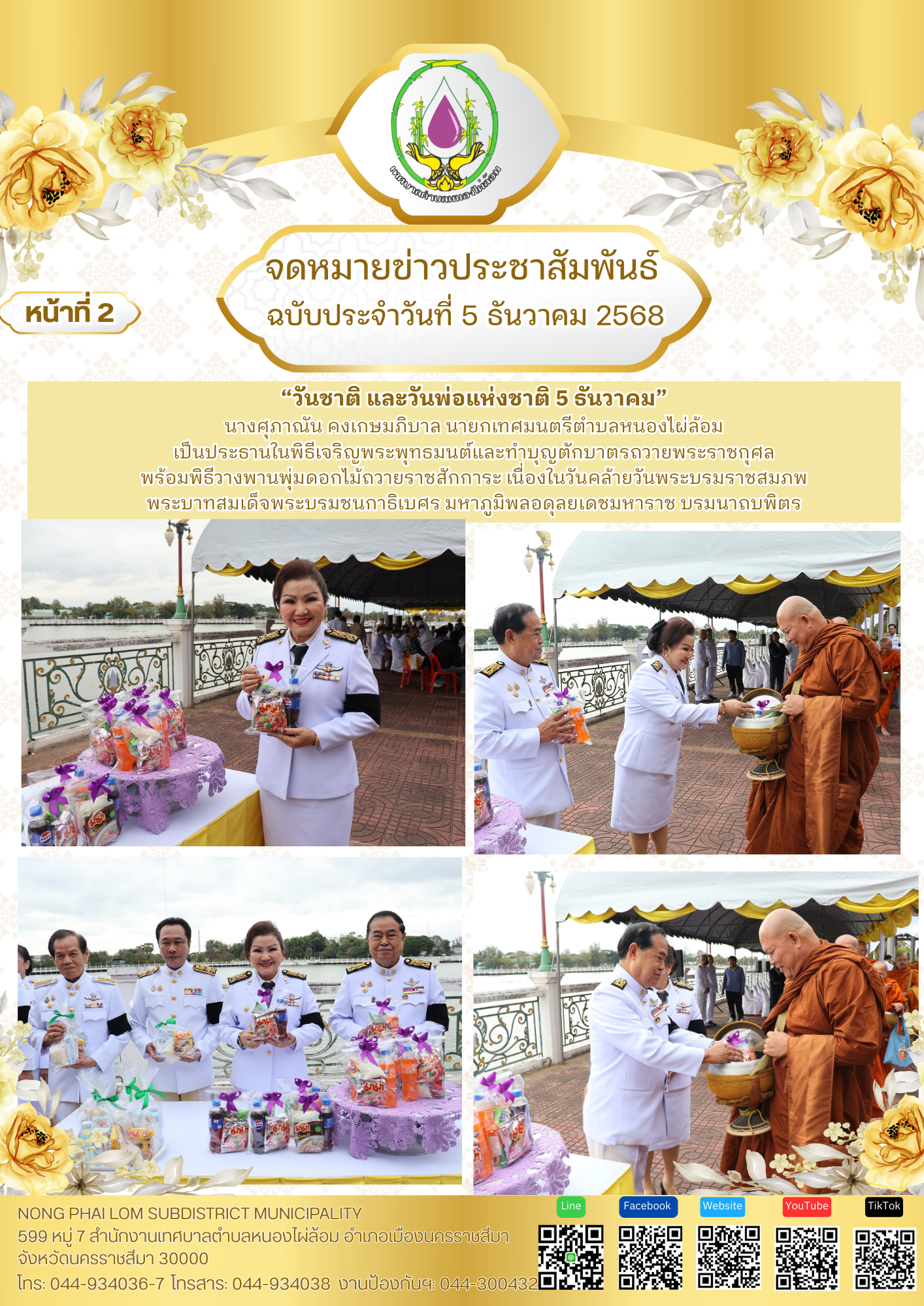 จดหมายข่าวเทศบาลตำบลหนองไผ่ล้อม ฉบับประจำวันที่ 5 ธันวาคม 2568