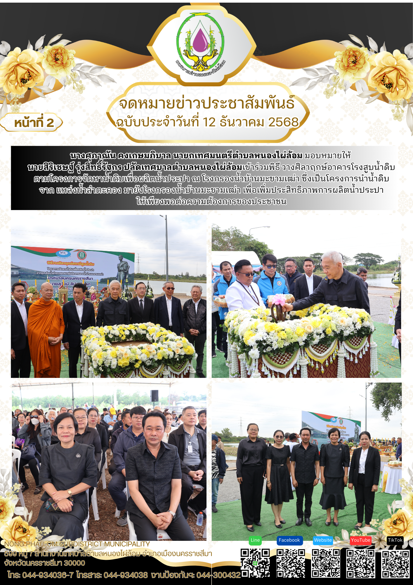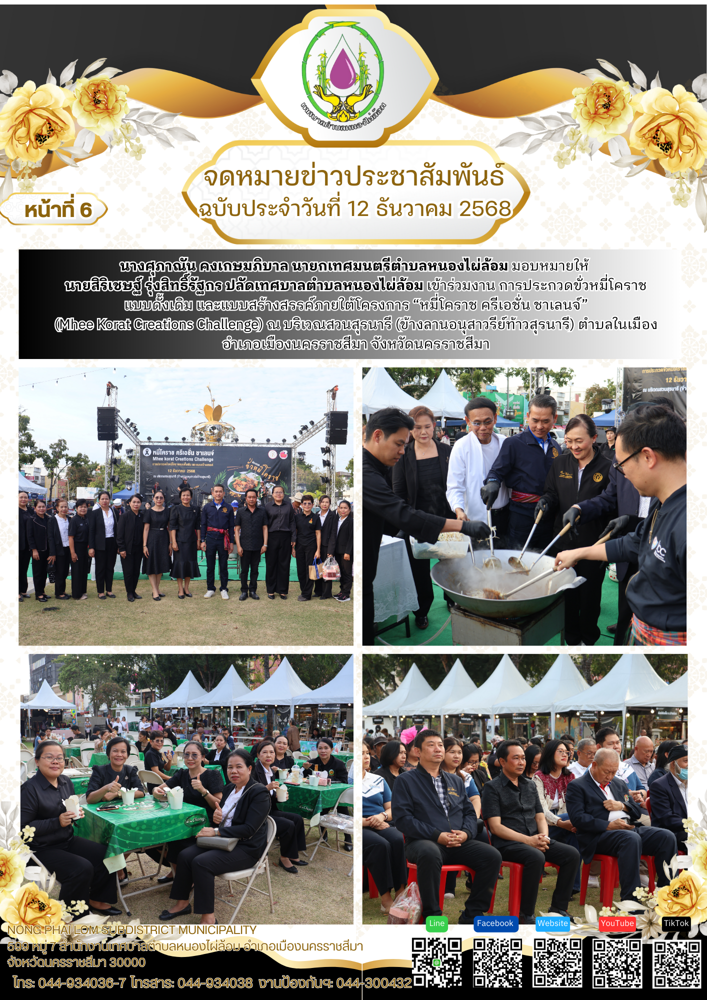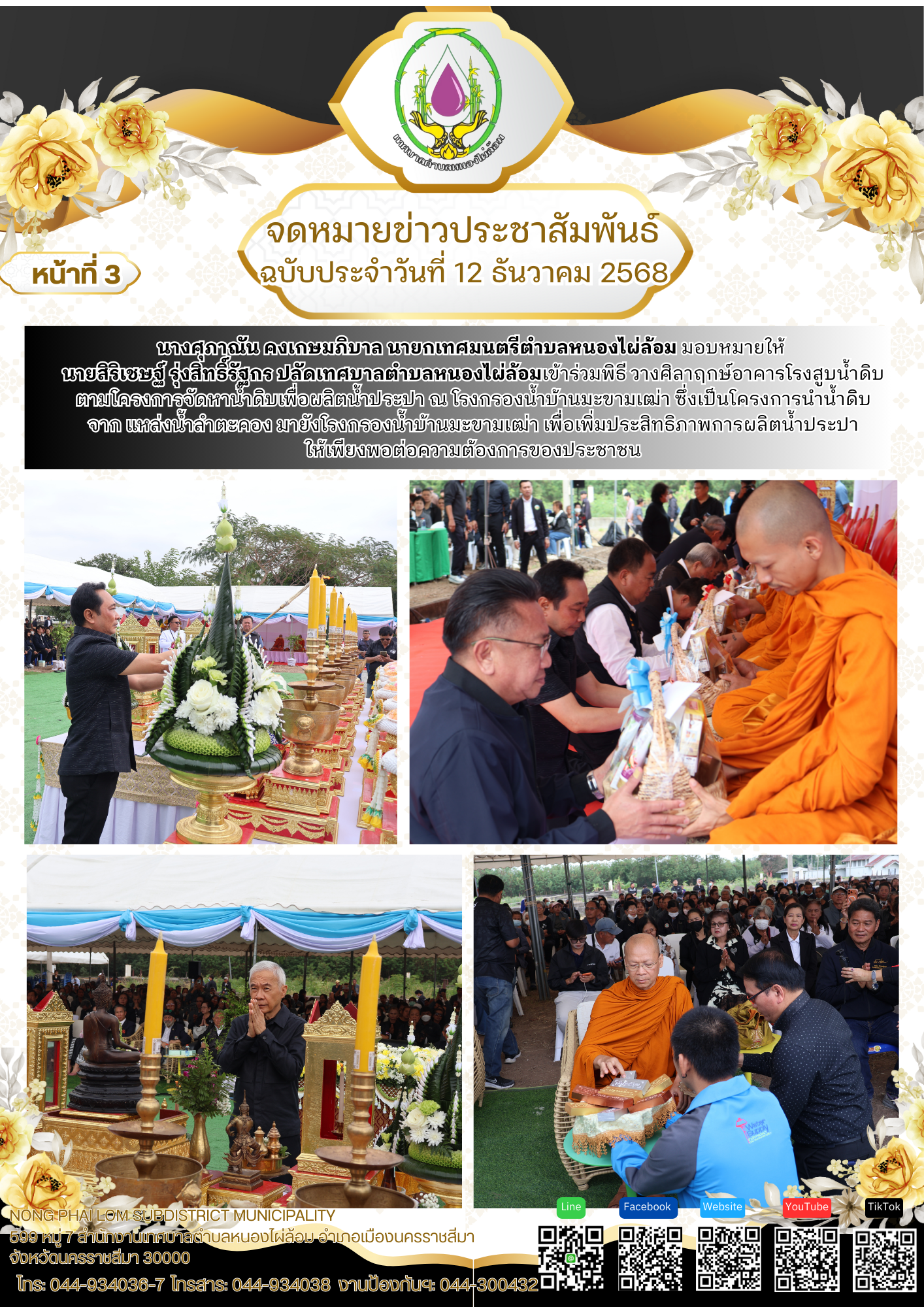 จดหมายข่าวเทศบาลตำบลหนองไผ่ล้อม ฉบับประจำวันที่ 12 ธันวาคม 2568