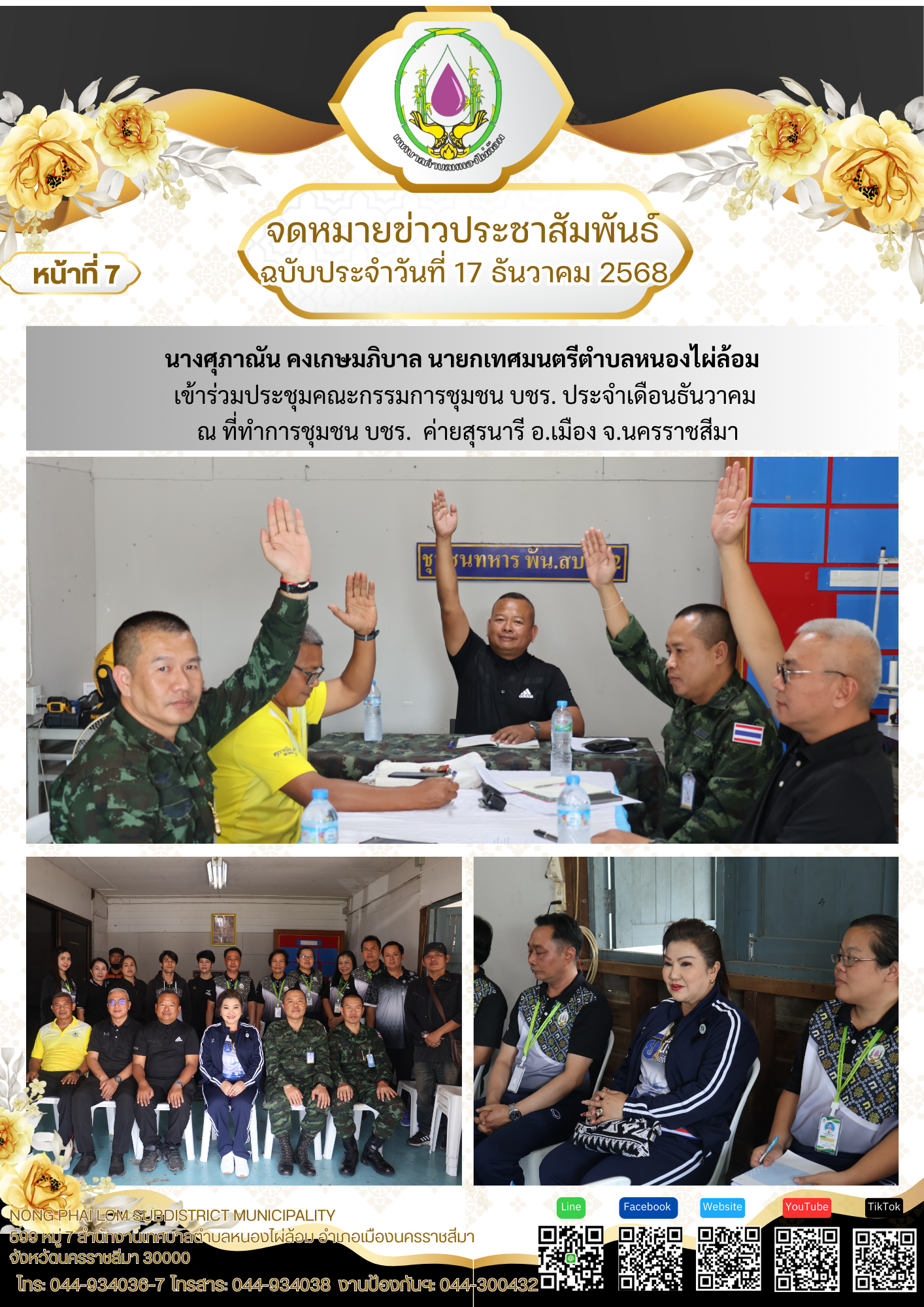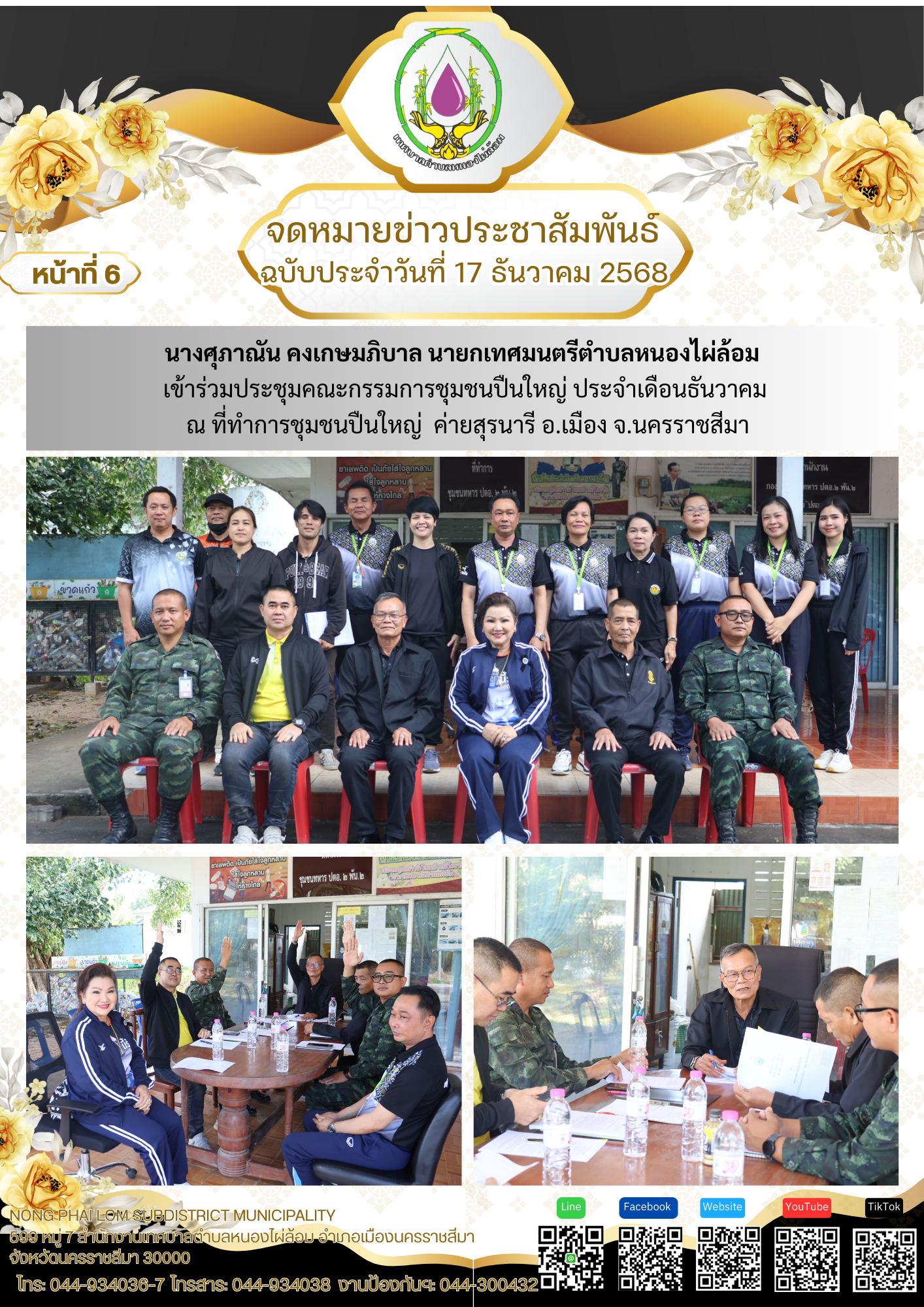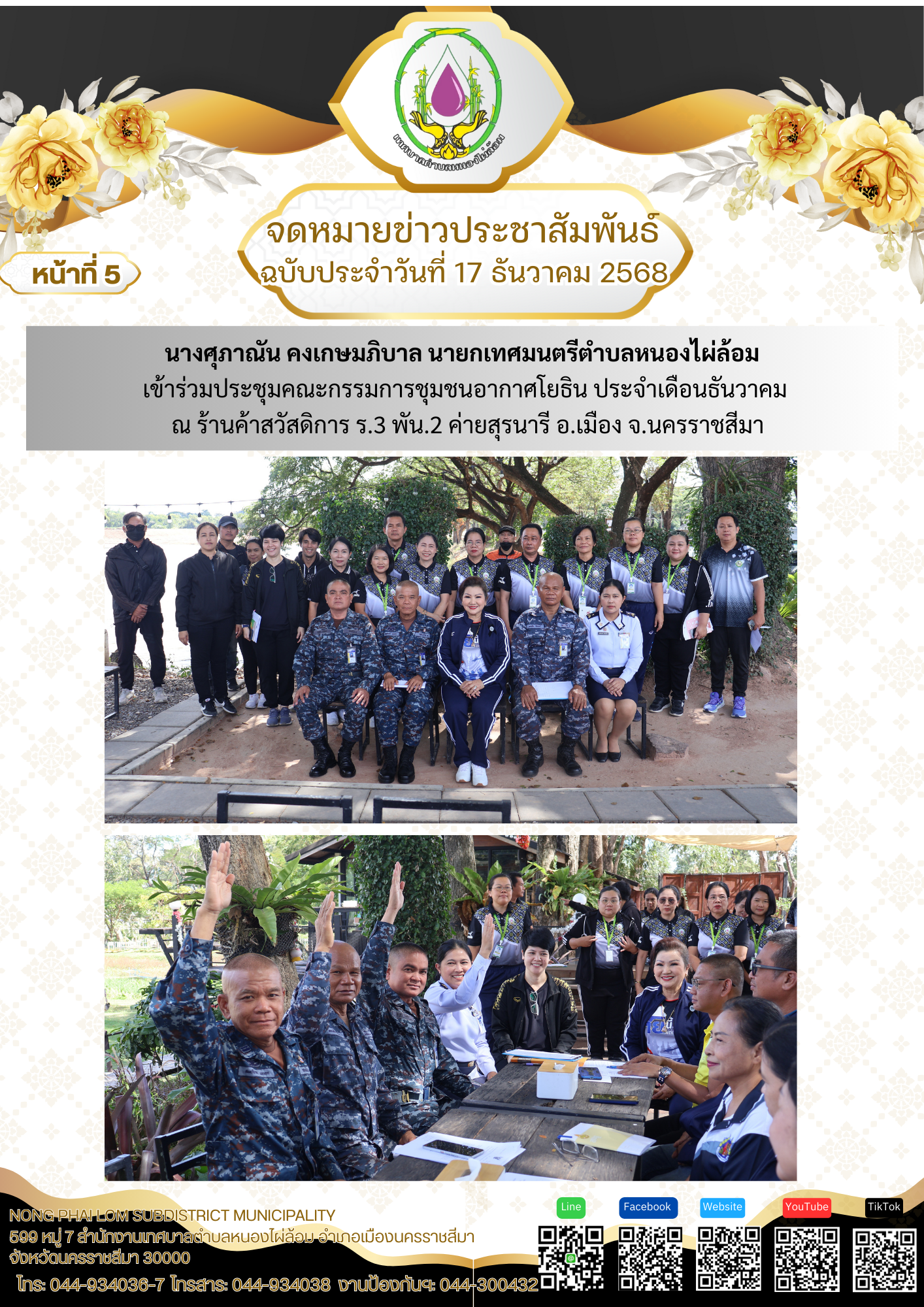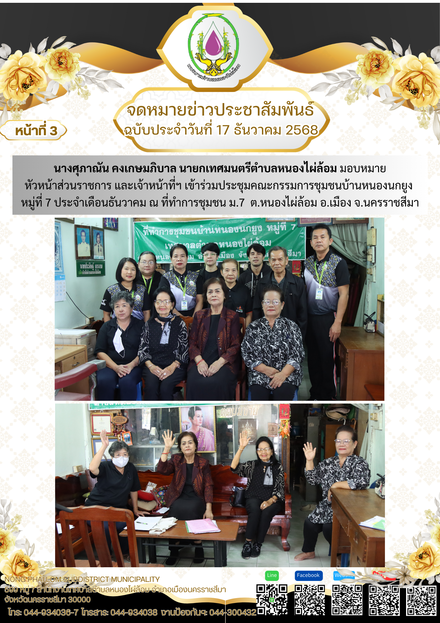 จดหมายข่าวเทศบาลตำบลหนองไผ่ล้อม ฉบับประจำวันที่ 17 ธันวาคม 2568