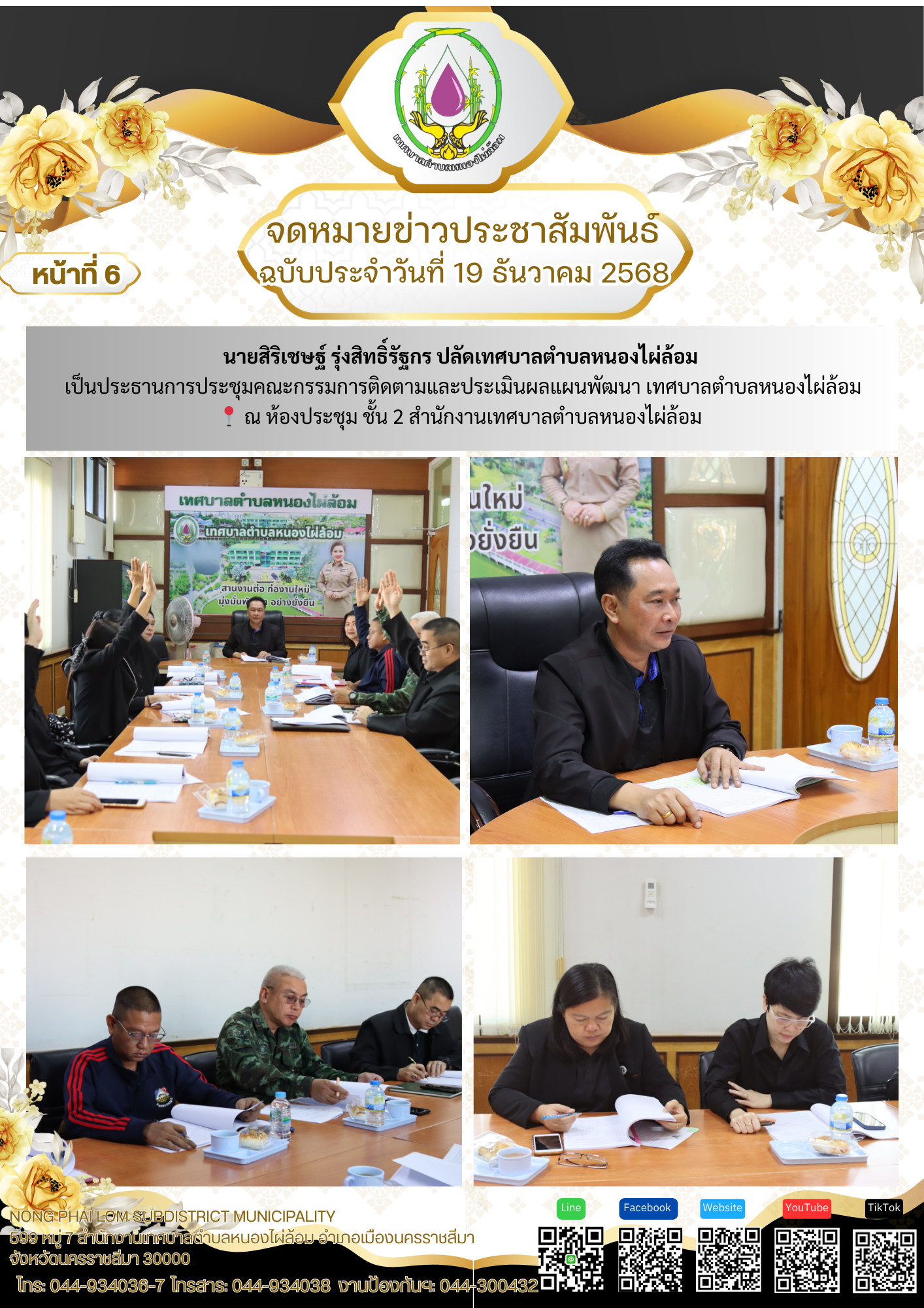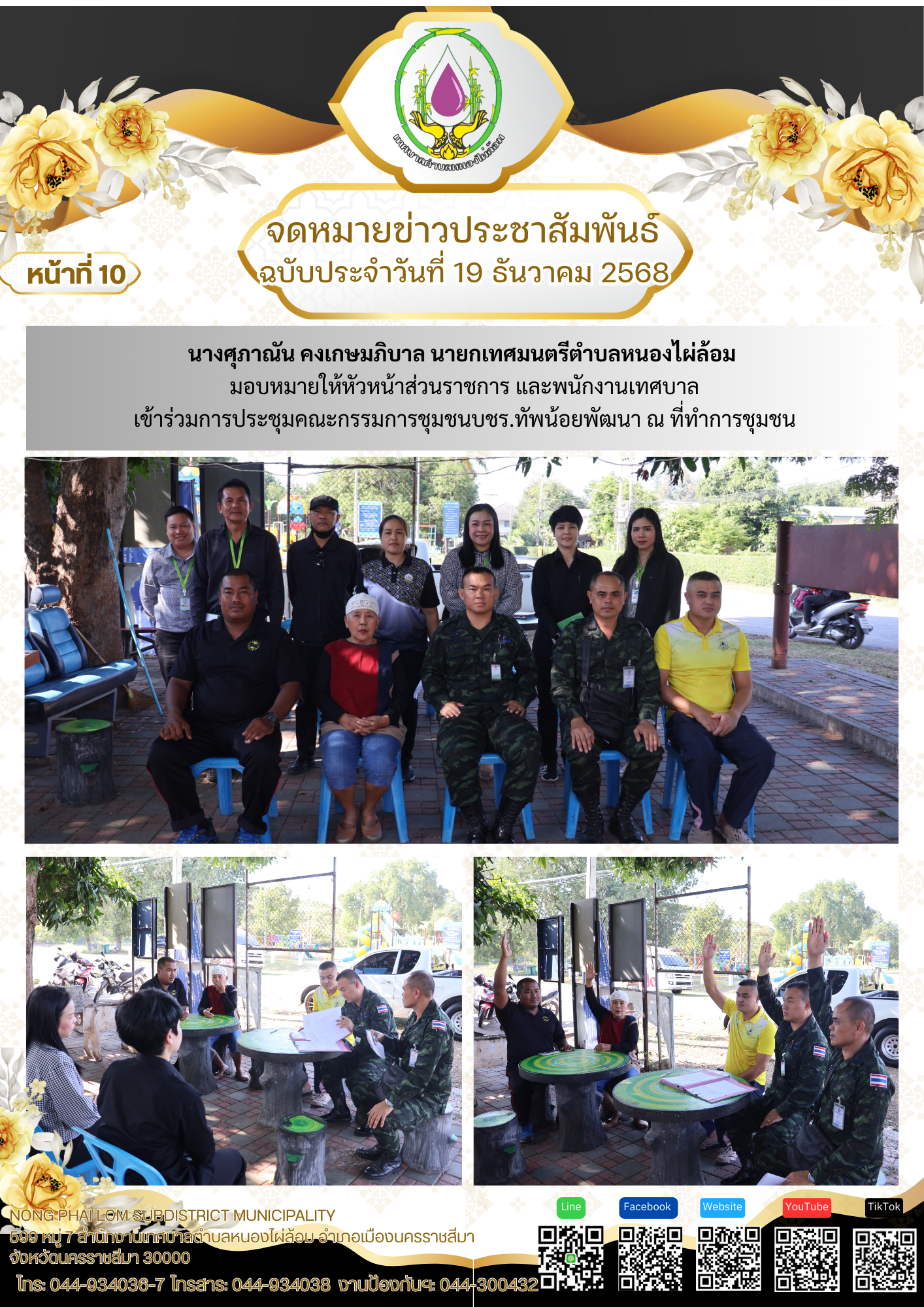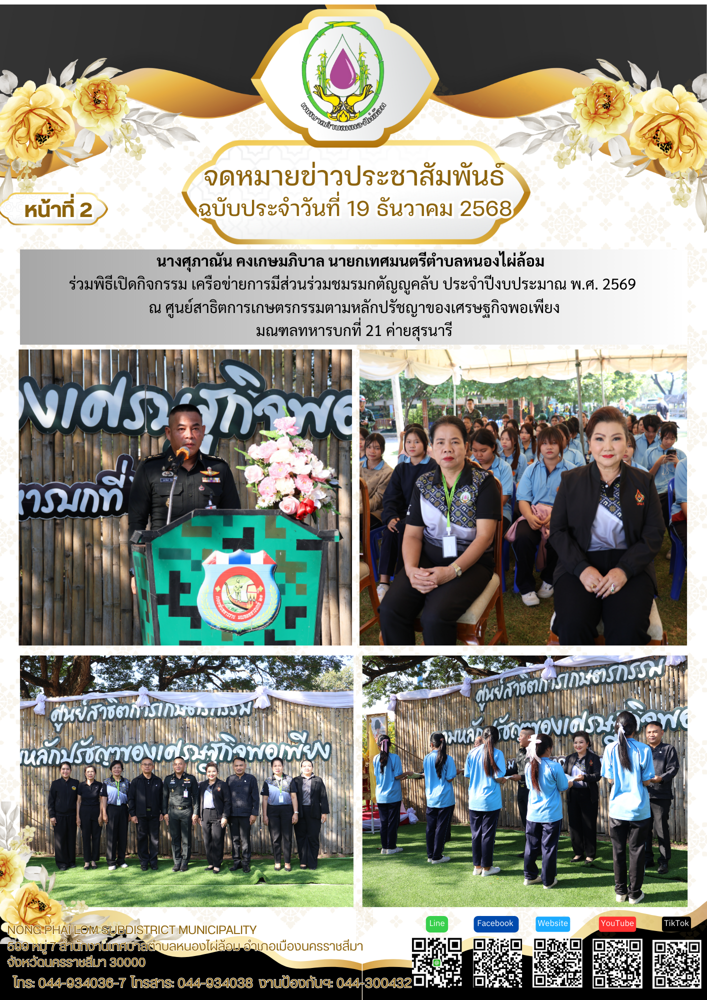 จดหมายข่าวเทศบาลตำบลหนองไผ่ล้อม ฉบับประจำวันที่ 19 ธันวาคม 2568