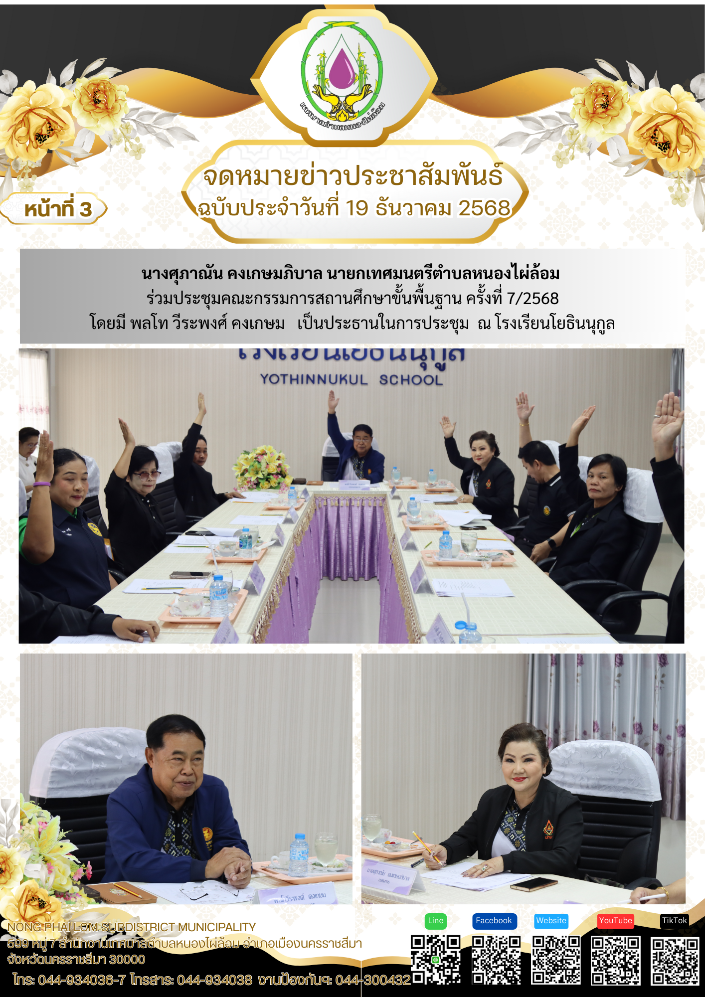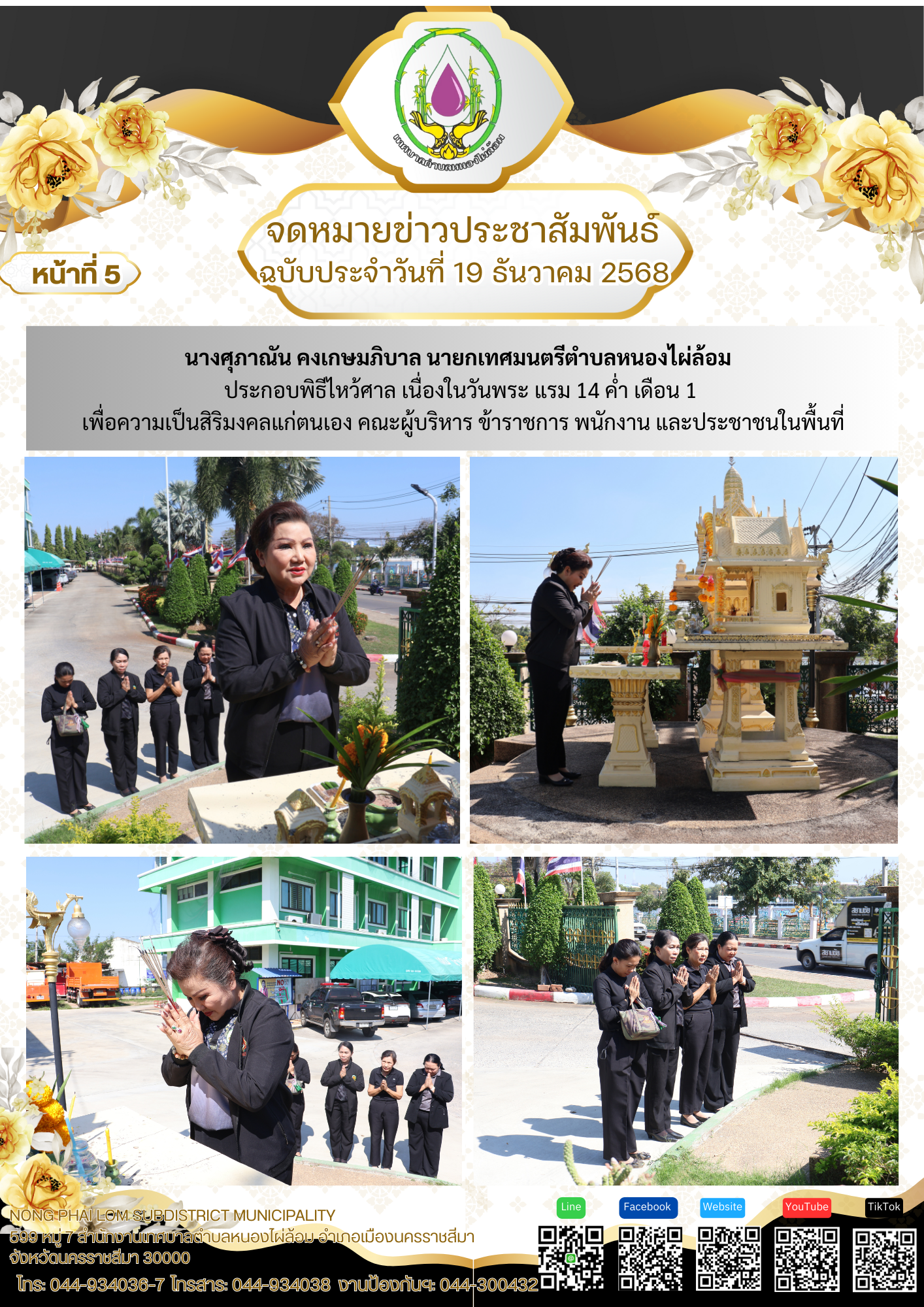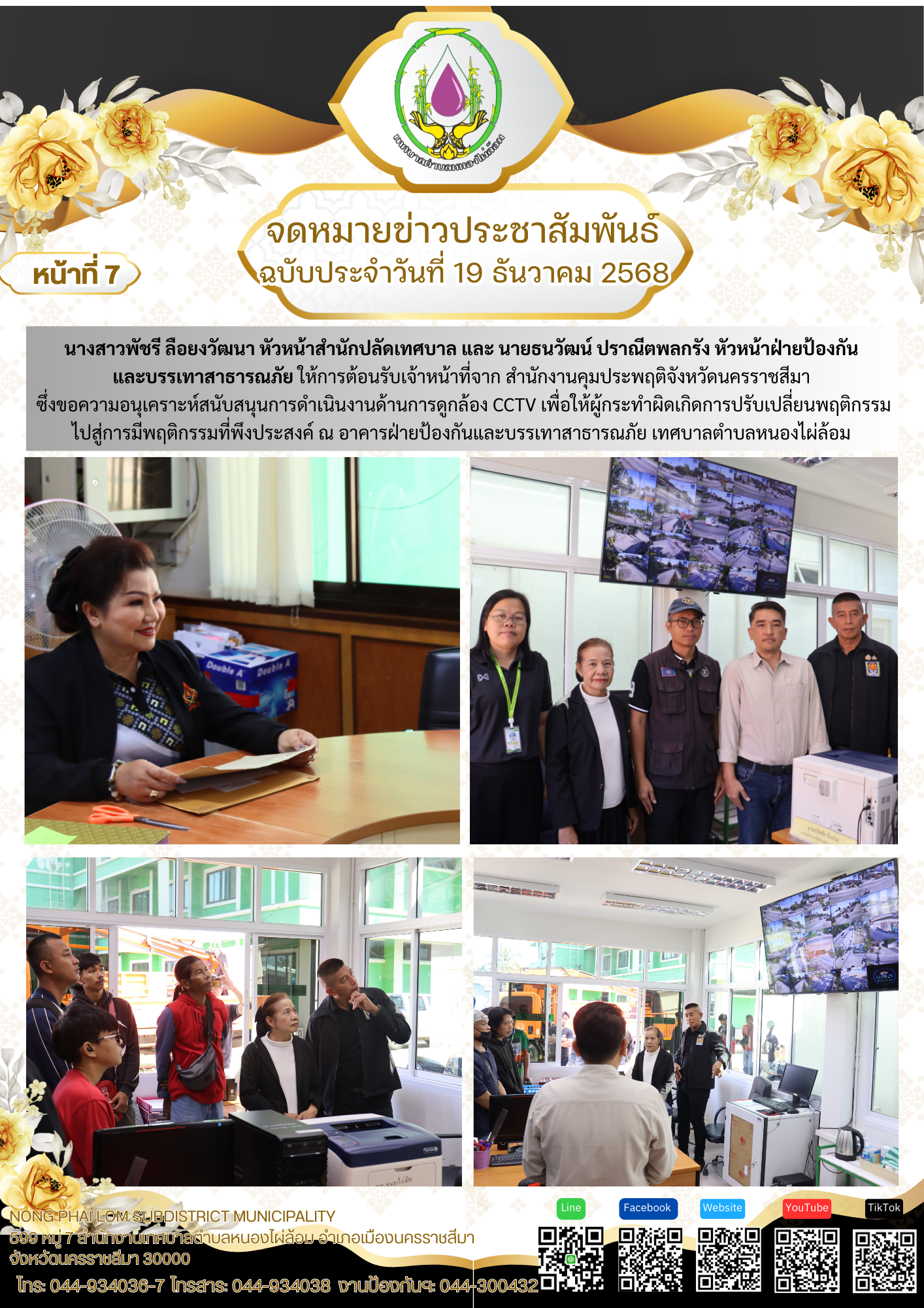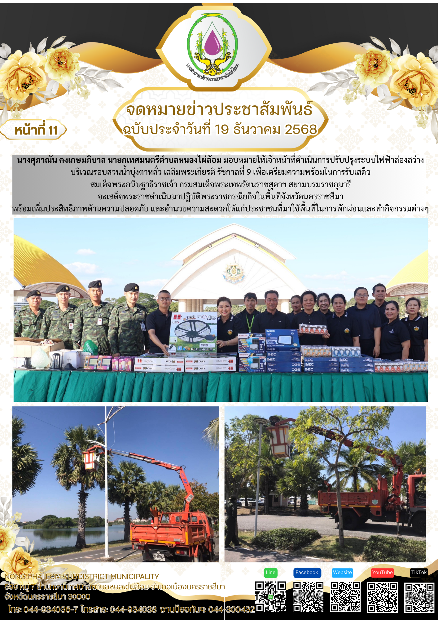 จดหมายข่าวเทศบาลตำบลหนองไผ่ล้อม ฉบับประจำวันที่ 19 ธันวาคม 2568
