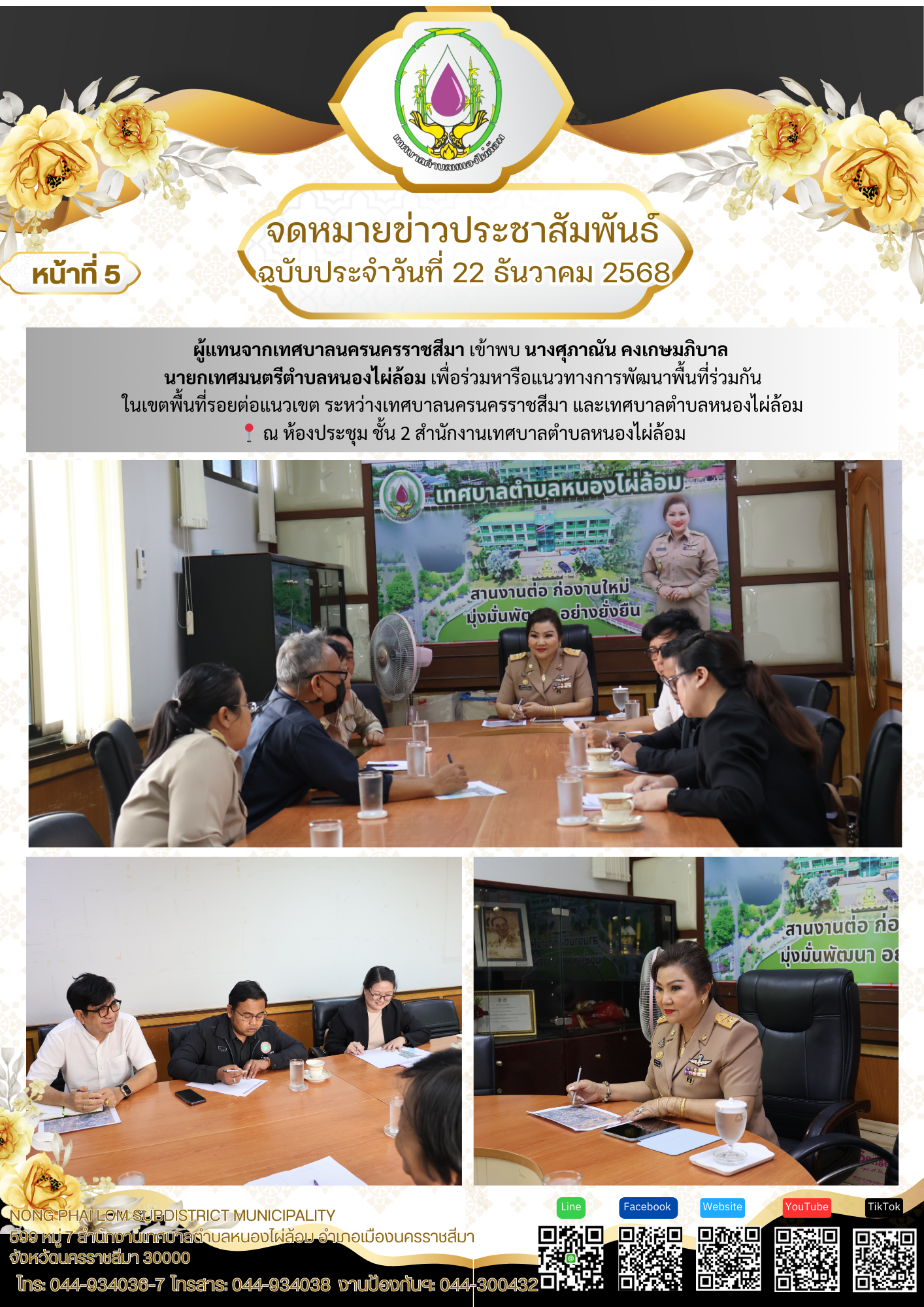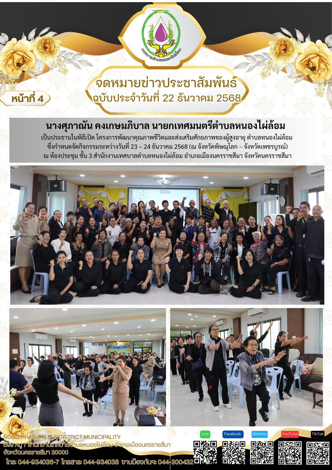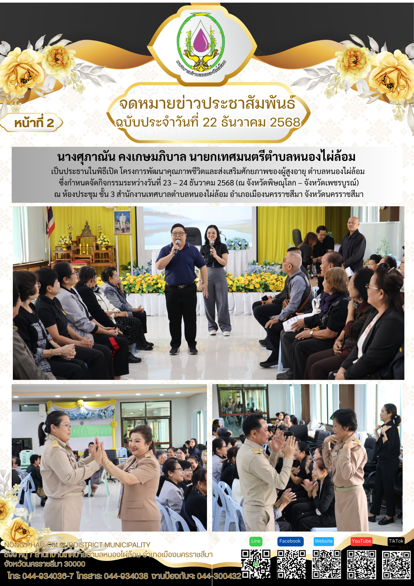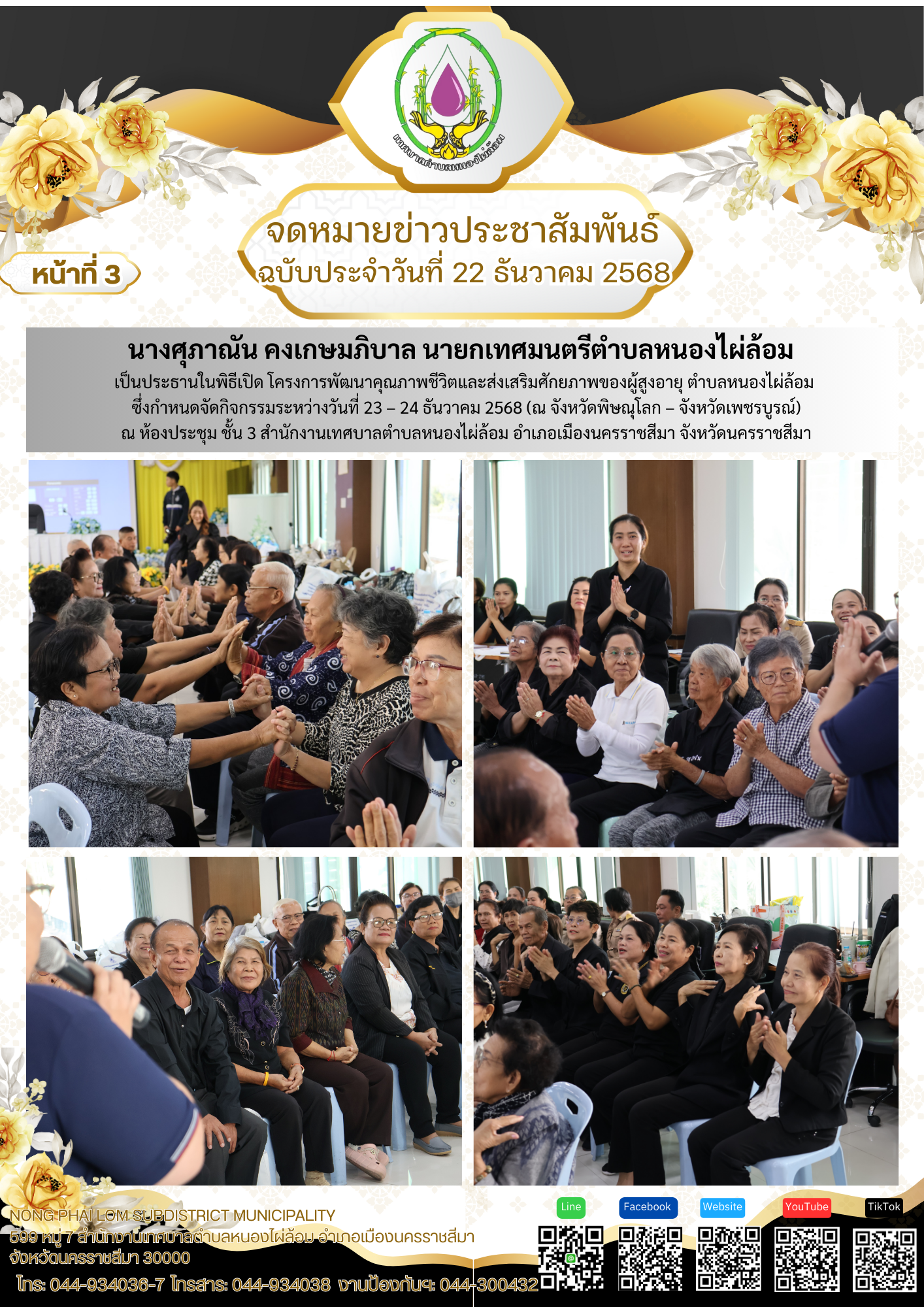 จดหมายข่าวเทศบาลตำบลหนองไผ่ล้อม ฉบับประจำวันที่ 22 ธันวาคม 2568