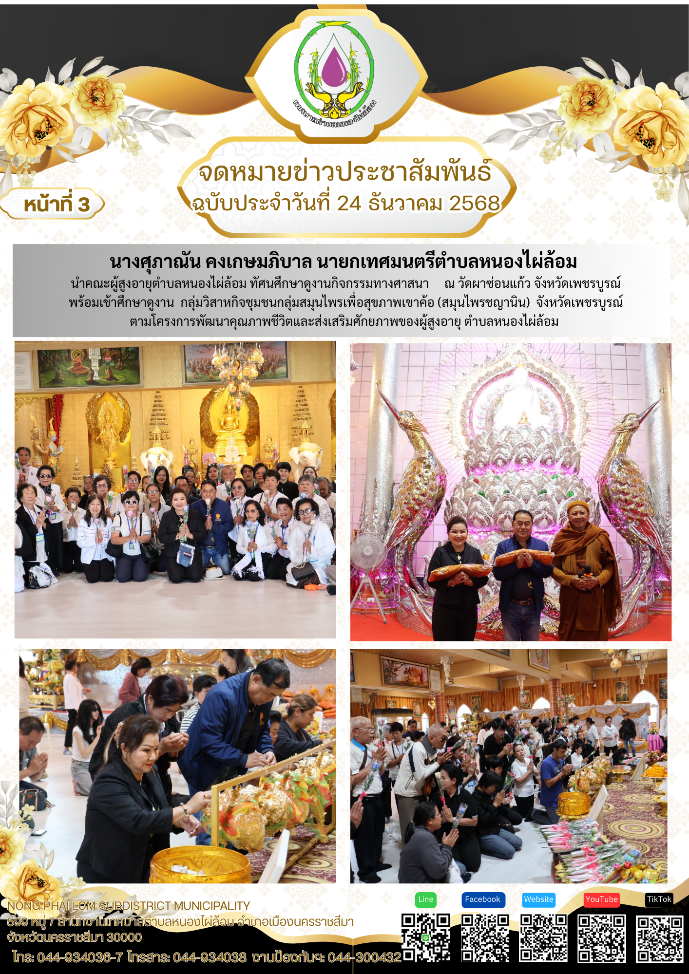 จดหมายข่าวเทศบาลตำบลหนองไผ่ล้อม ฉบับประจำวันที่ 24 ธันวาคม 2568