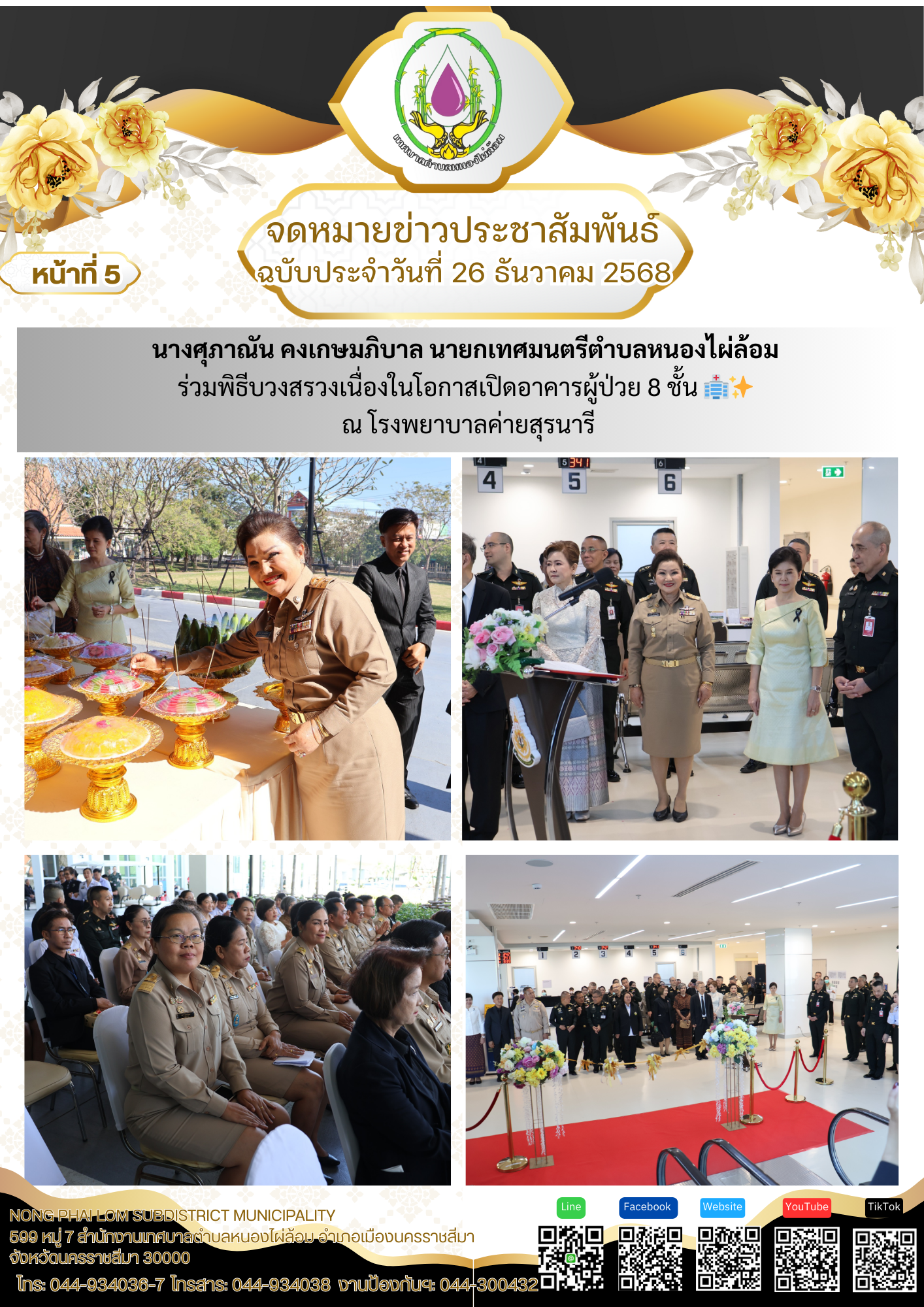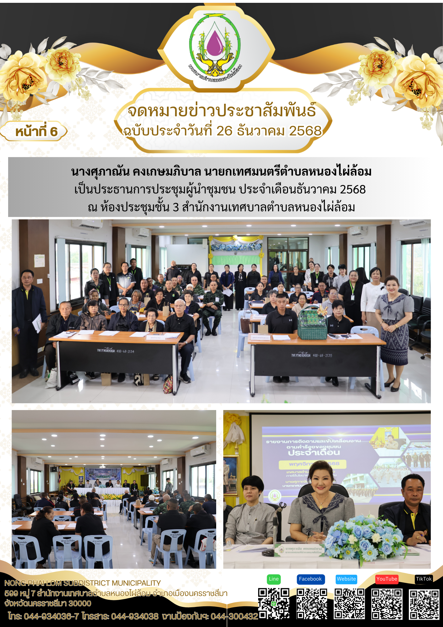 จดหมายข่าวเทศบาลตำบลหนองไผ่ล้อม ฉบับประจำวันที่ 26 ธันวาคม 2568