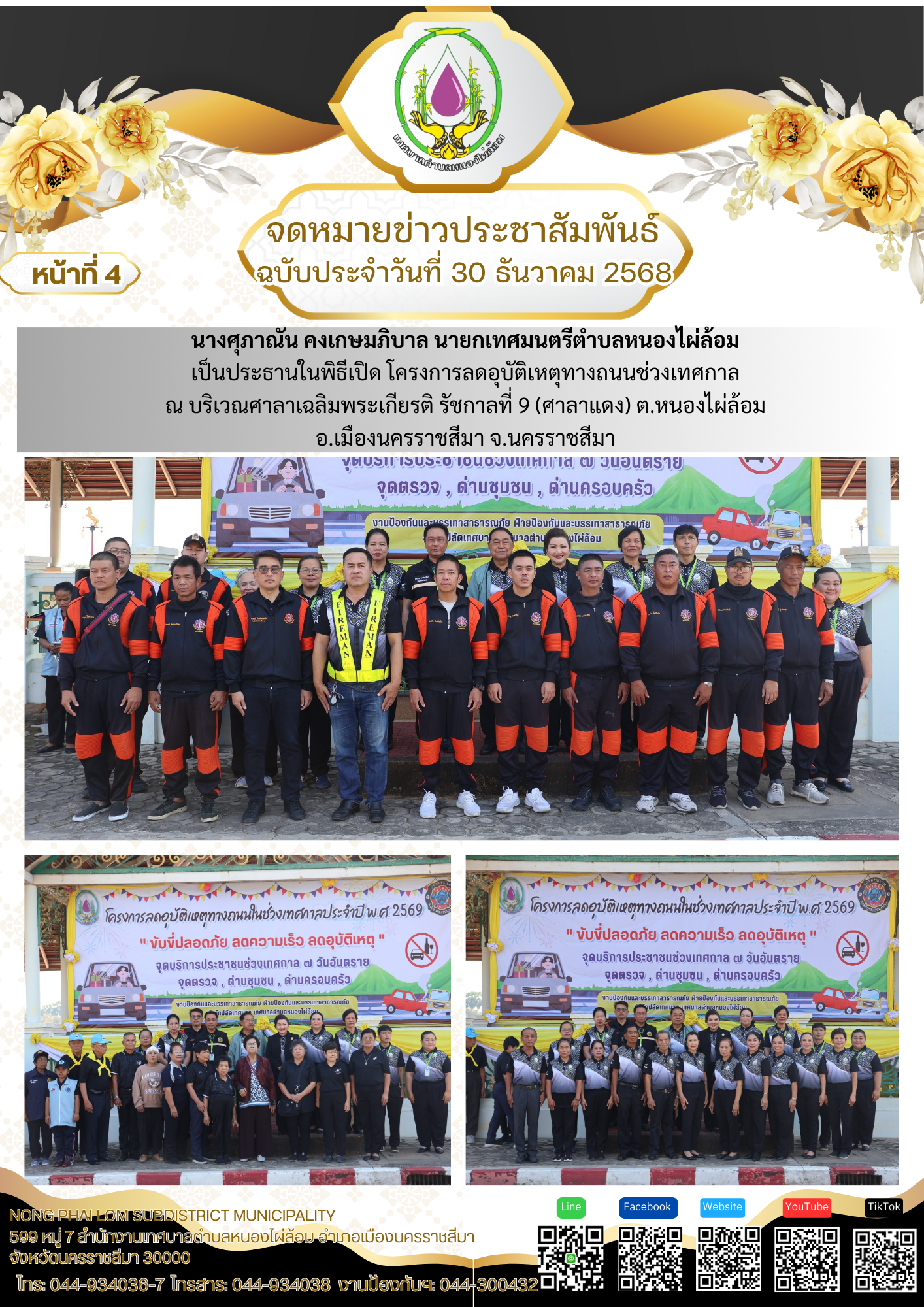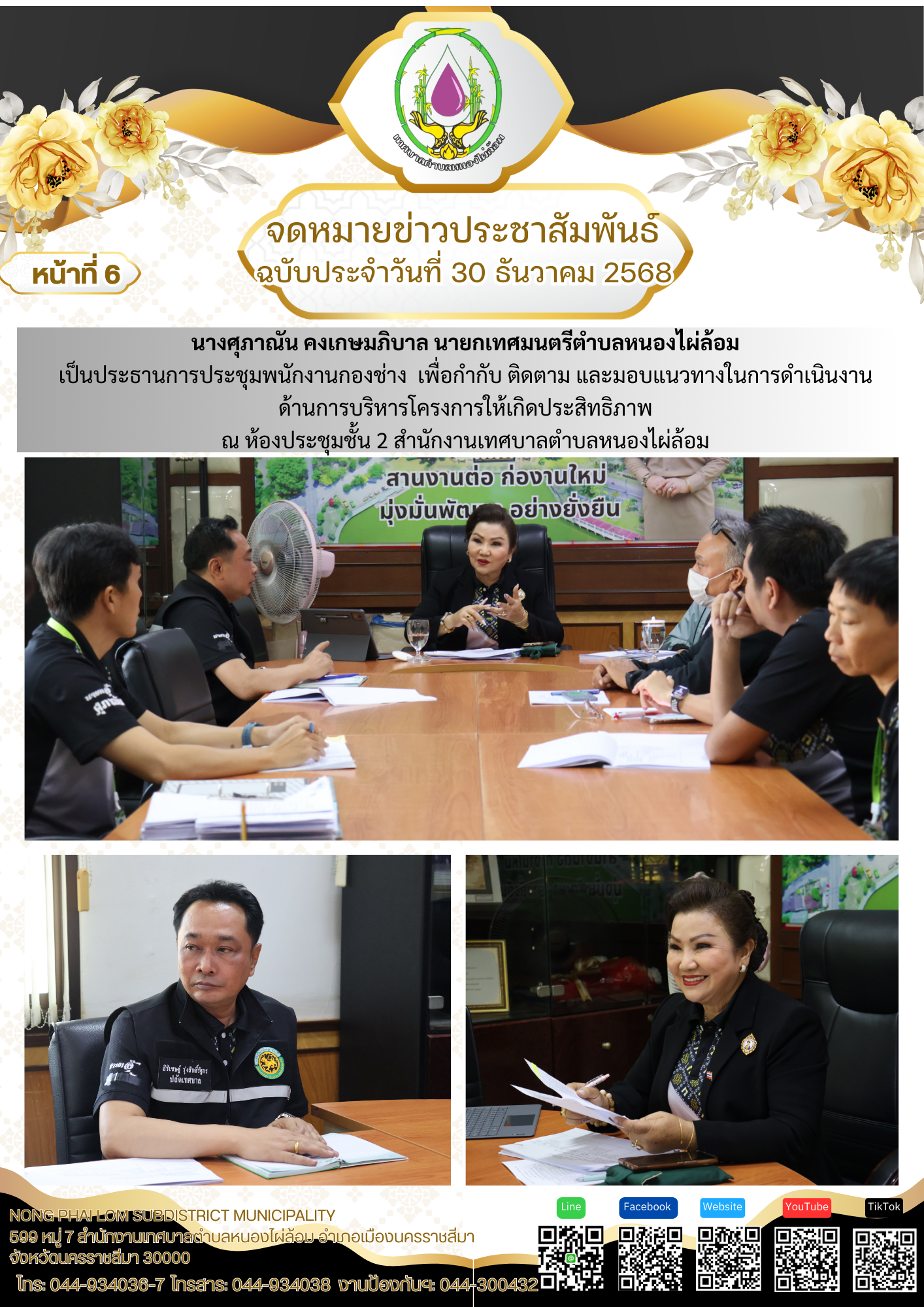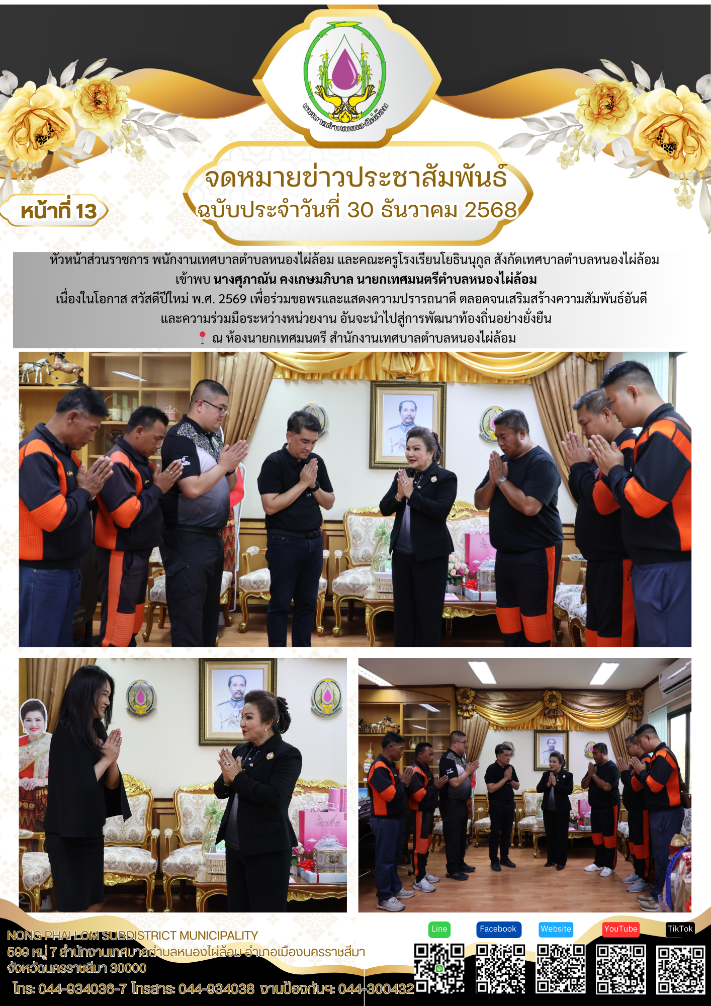 จดหมายข่าวเทศบาลตำบลหนองไผ่ล้อม ฉบับประจำวันที่ 30 ธันวาคม 2568