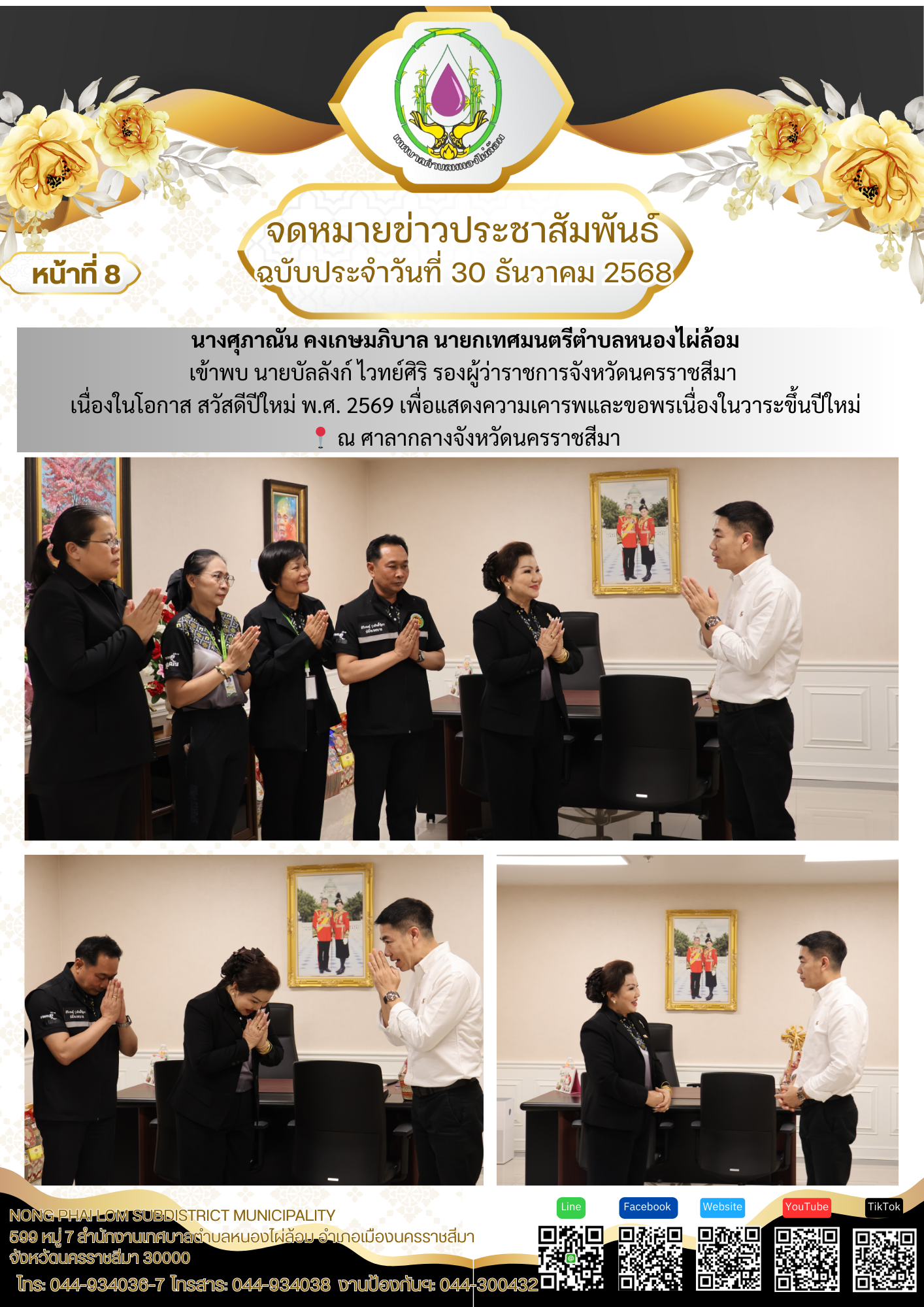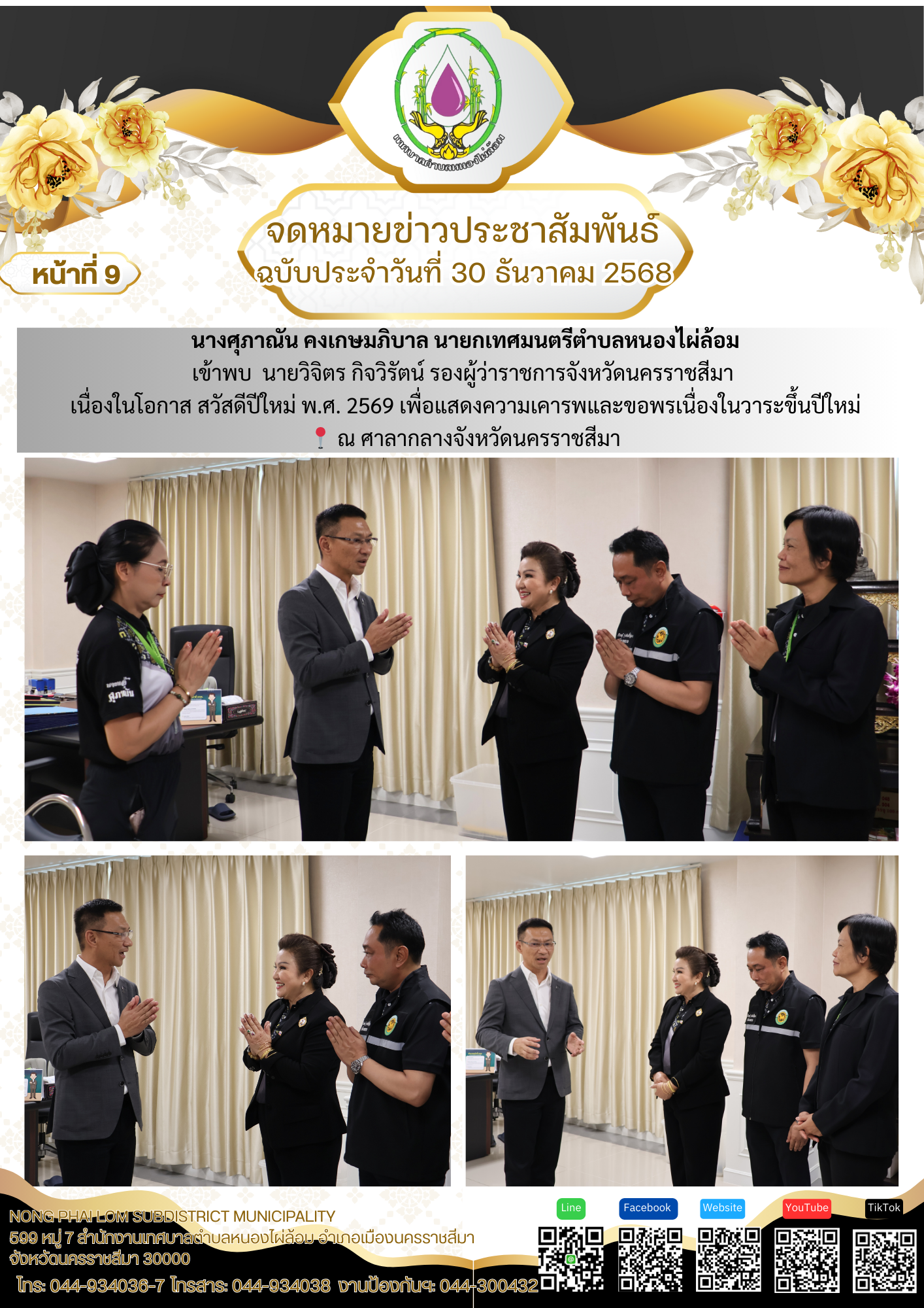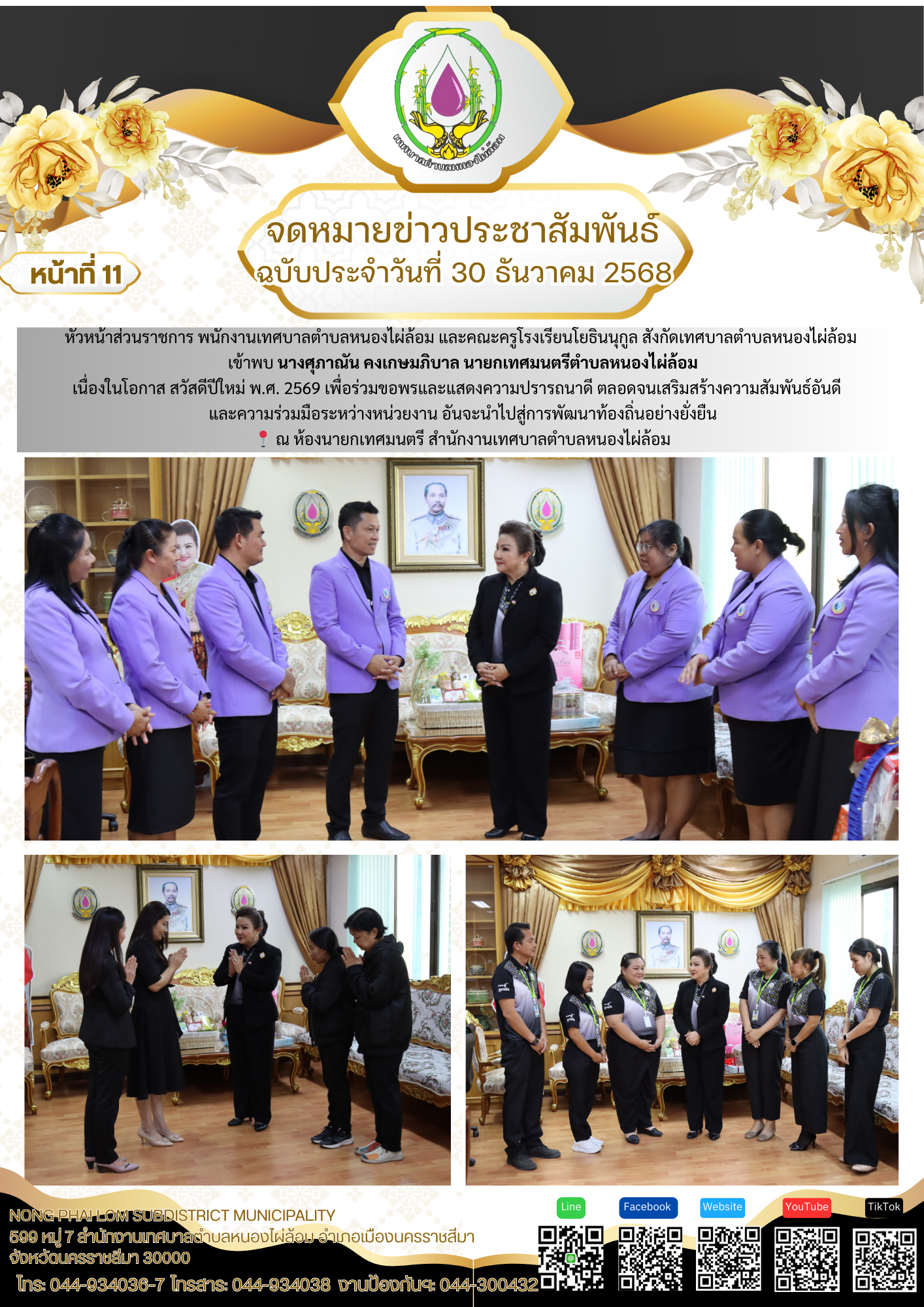 จดหมายข่าวเทศบาลตำบลหนองไผ่ล้อม ฉบับประจำวันที่ 30 ธันวาคม 2568