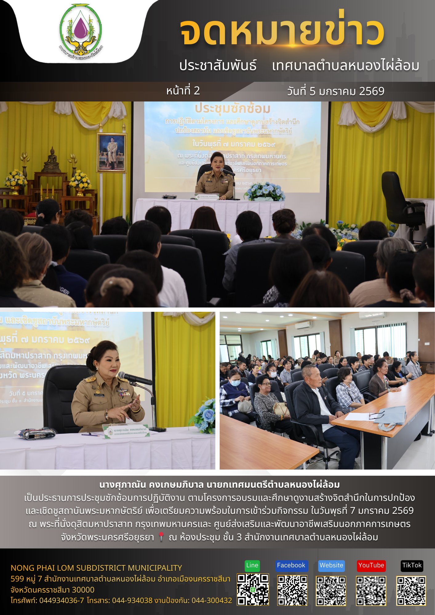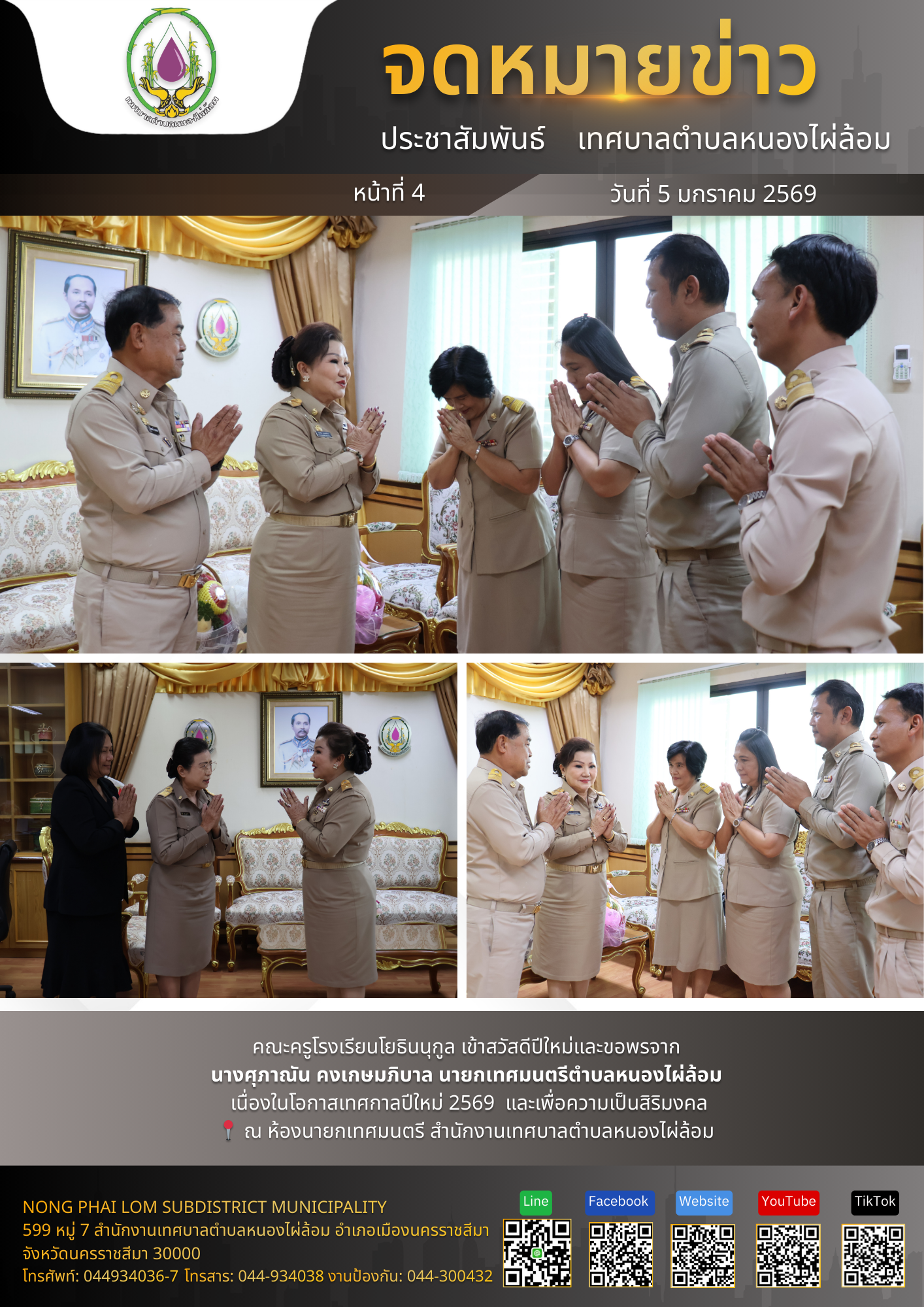 จดหมายข่าวเทศบาลตำบลหนองไผ่ล้อม ฉบับประจำวันที่ 5 มกราคม 2569