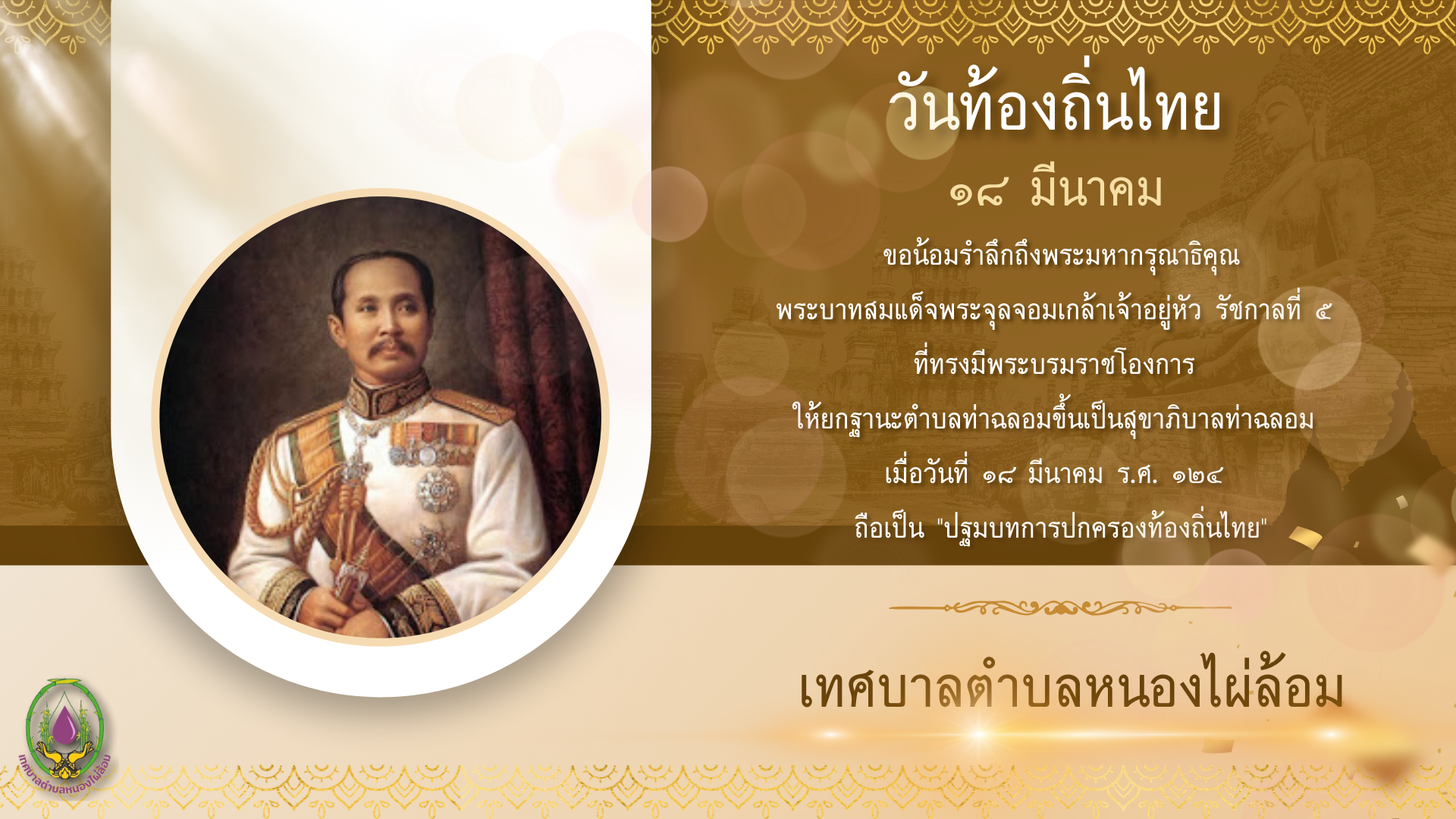 ที่ได้ทรงวางรากฐานการปกครองส่วนท้องถิ่นของประเทศไทยให้มีความเข้มแข็ง และใกล้ชิดประชาชน
