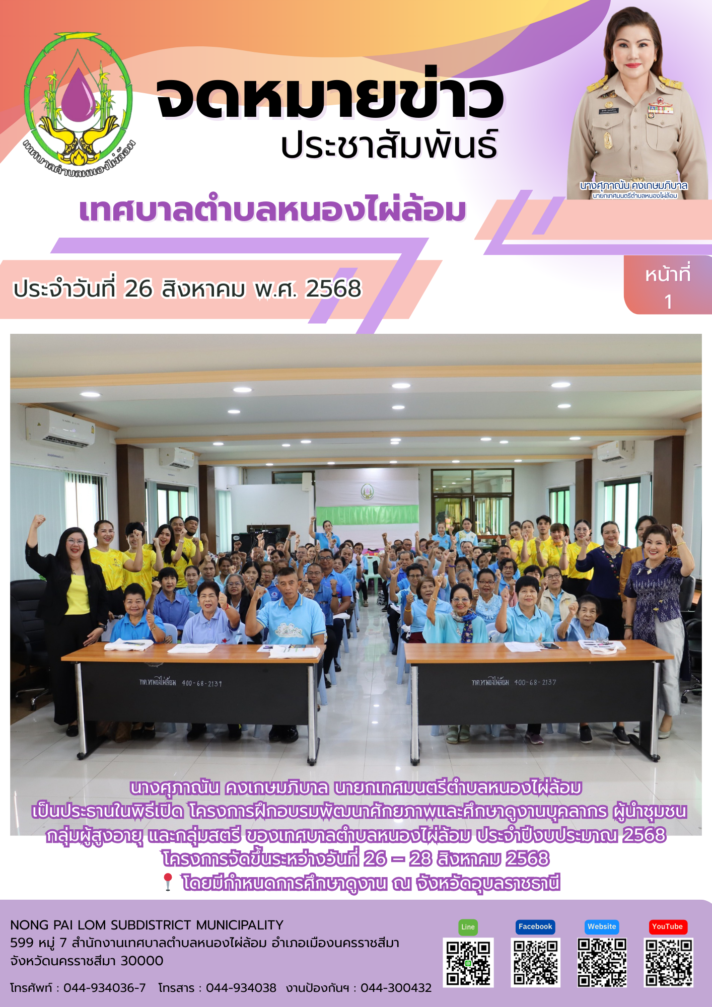จดหมายข่าวเทศบาลตำบลหนองไผ่ล้อม ฉบับประจำวันที่ 1 ตุลาคม 2568 |