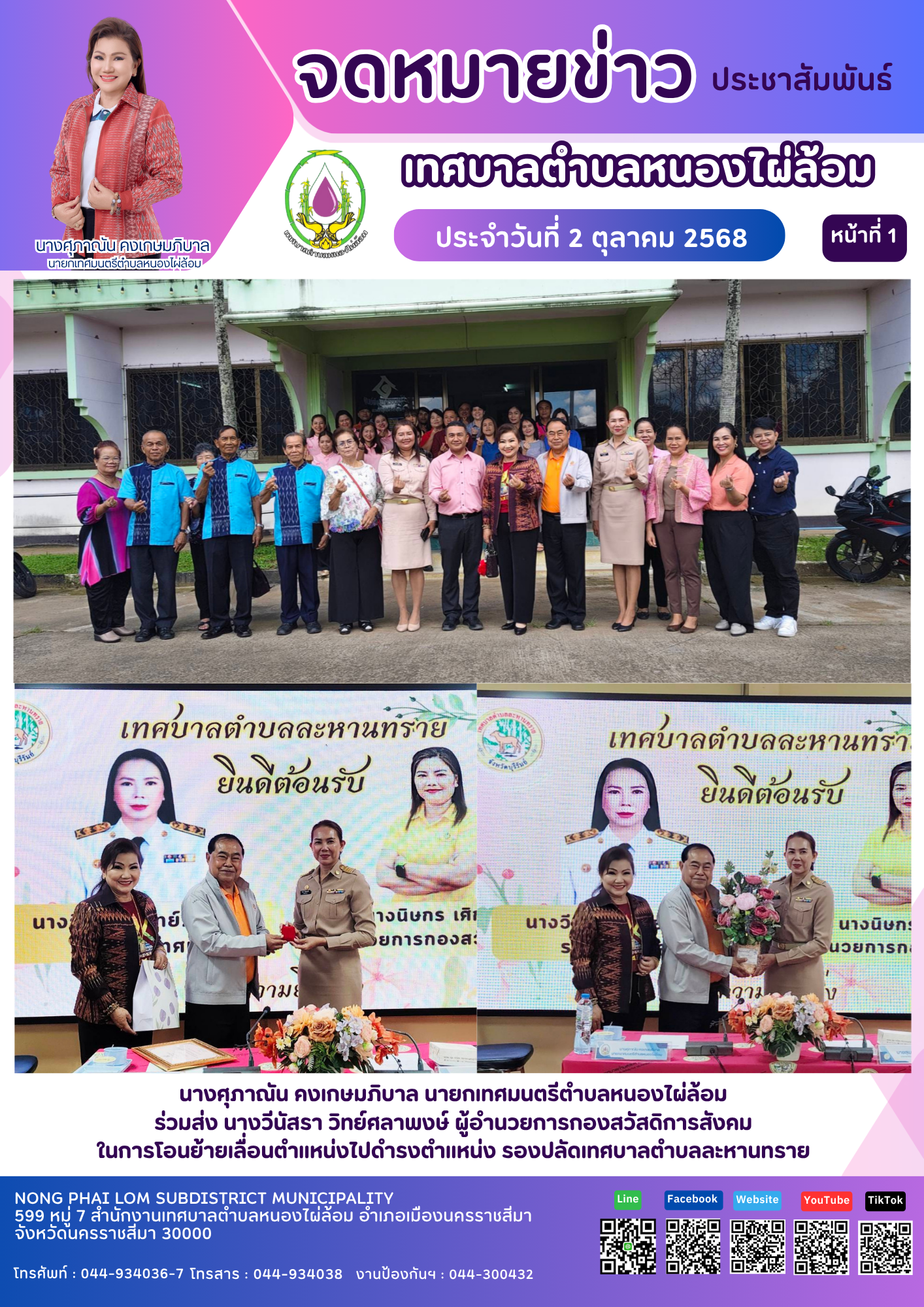 จดหมายข่าวเทศบาลตำบลหนองไผ่ล้อม ฉบับประจำวันที่ 2 ตุลาคม 2568 |