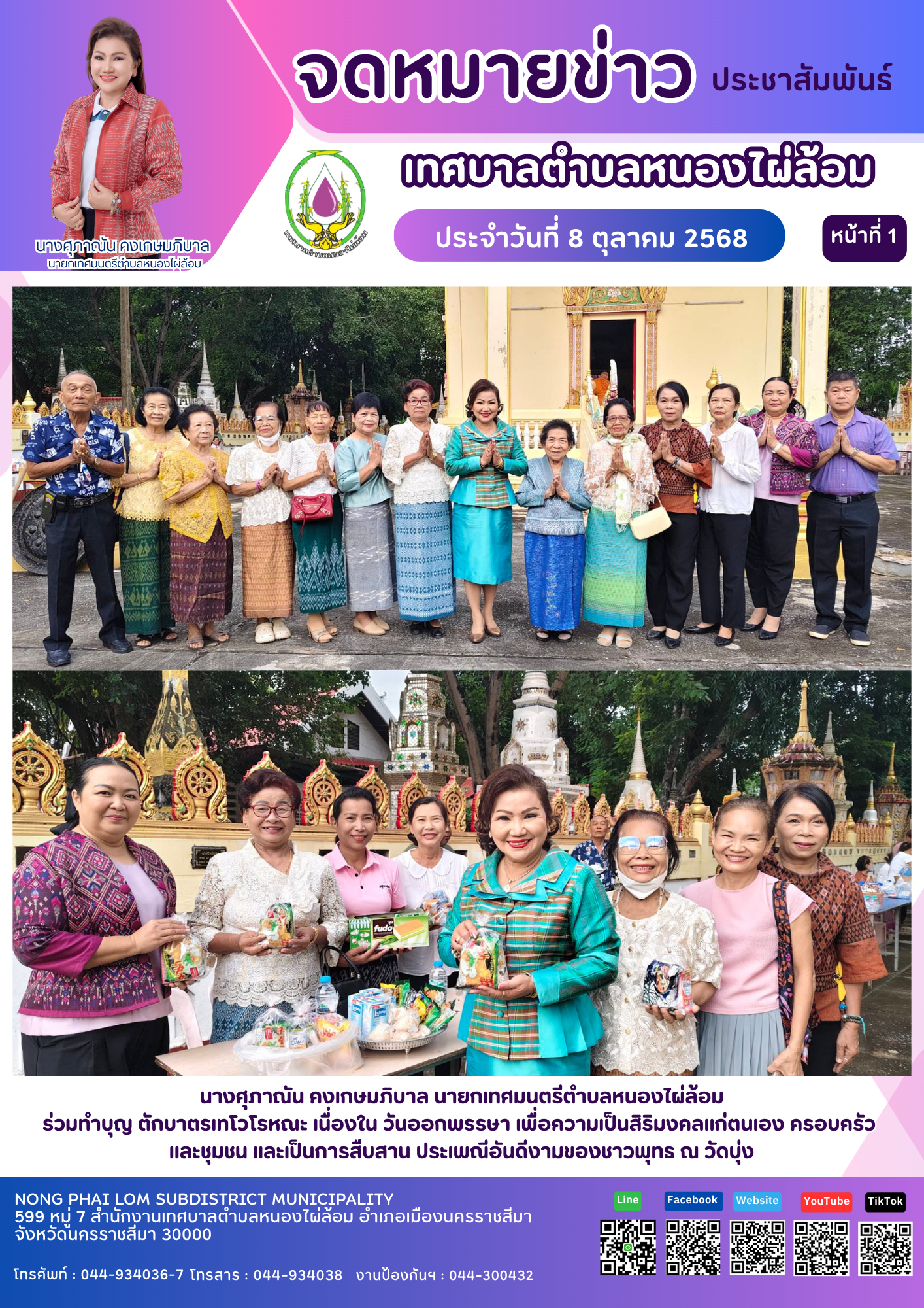 จดหมายข่าวเทศบาลตำบลหนองไผ่ล้อม ฉบับประจำวันที่ 8 ตุลาคม 2568 |