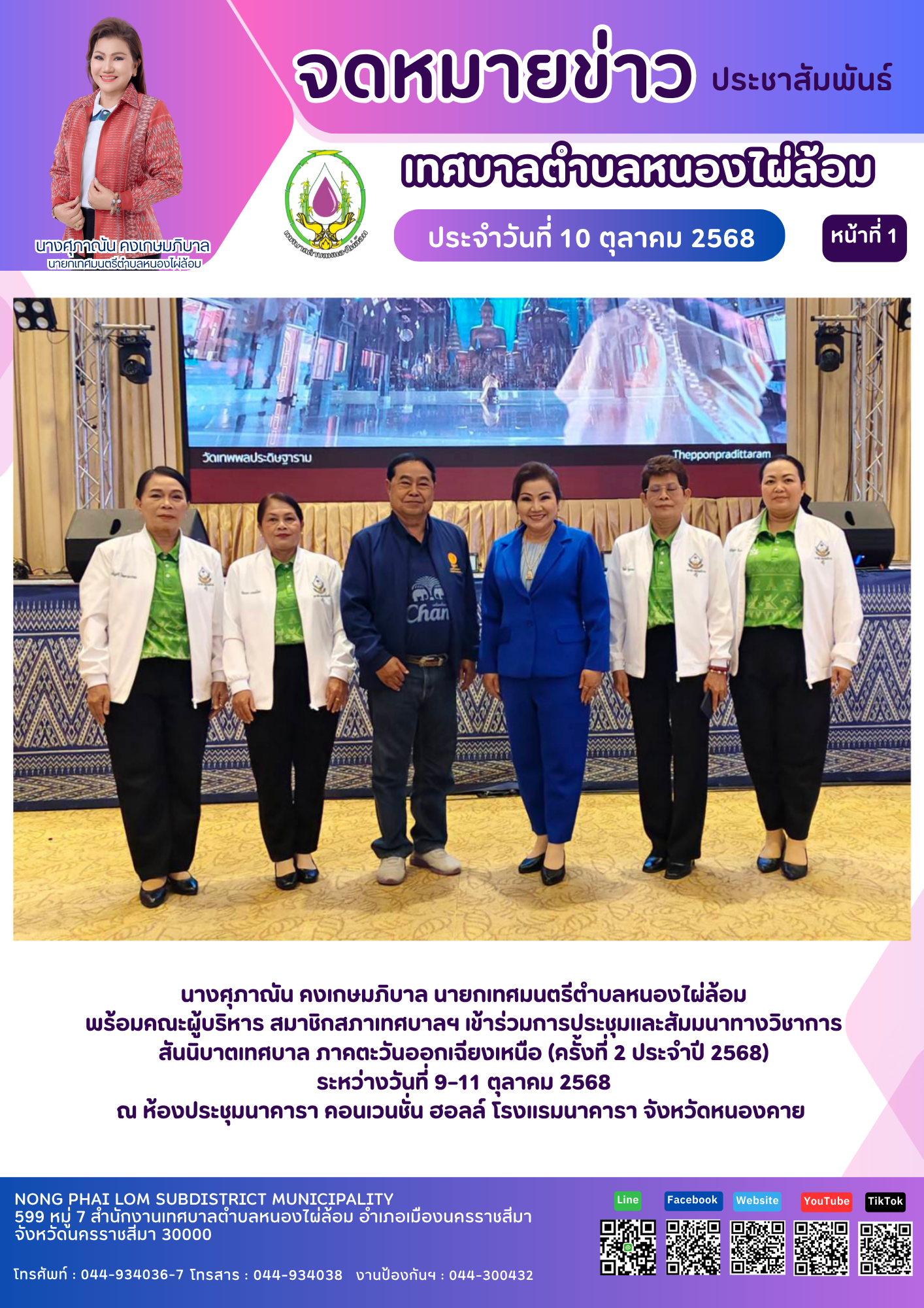 จดหมายข่าวเทศบาลตำบลหนองไผ่ล้อม ฉบับประจำวันที่ 10 ตุลาคม 2568 |