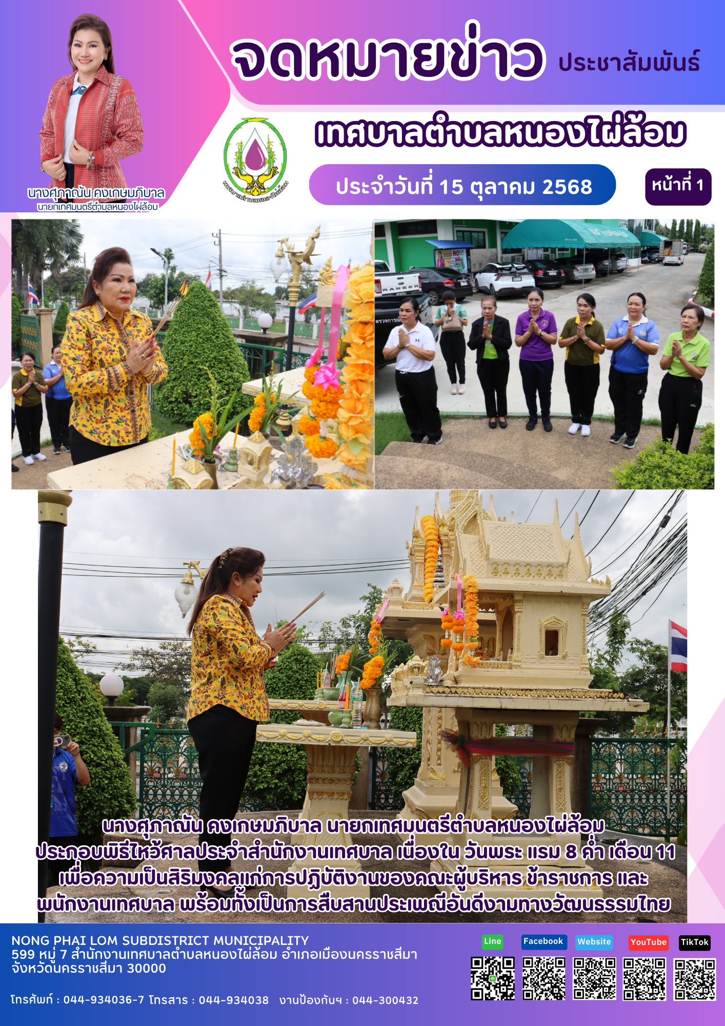 จดหมายข่าวเทศบาลตำบลหนองไผ่ล้อม ฉบับประจำวันที่ 15 ตุลาคม 2568 |
