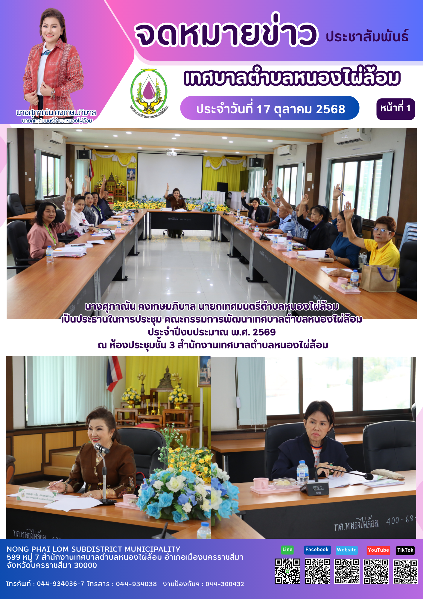 จดหมายข่าวเทศบาลตำบลหนองไผ่ล้อม ฉบับประจำวันที่ 17 ตุลาคม 2568 |