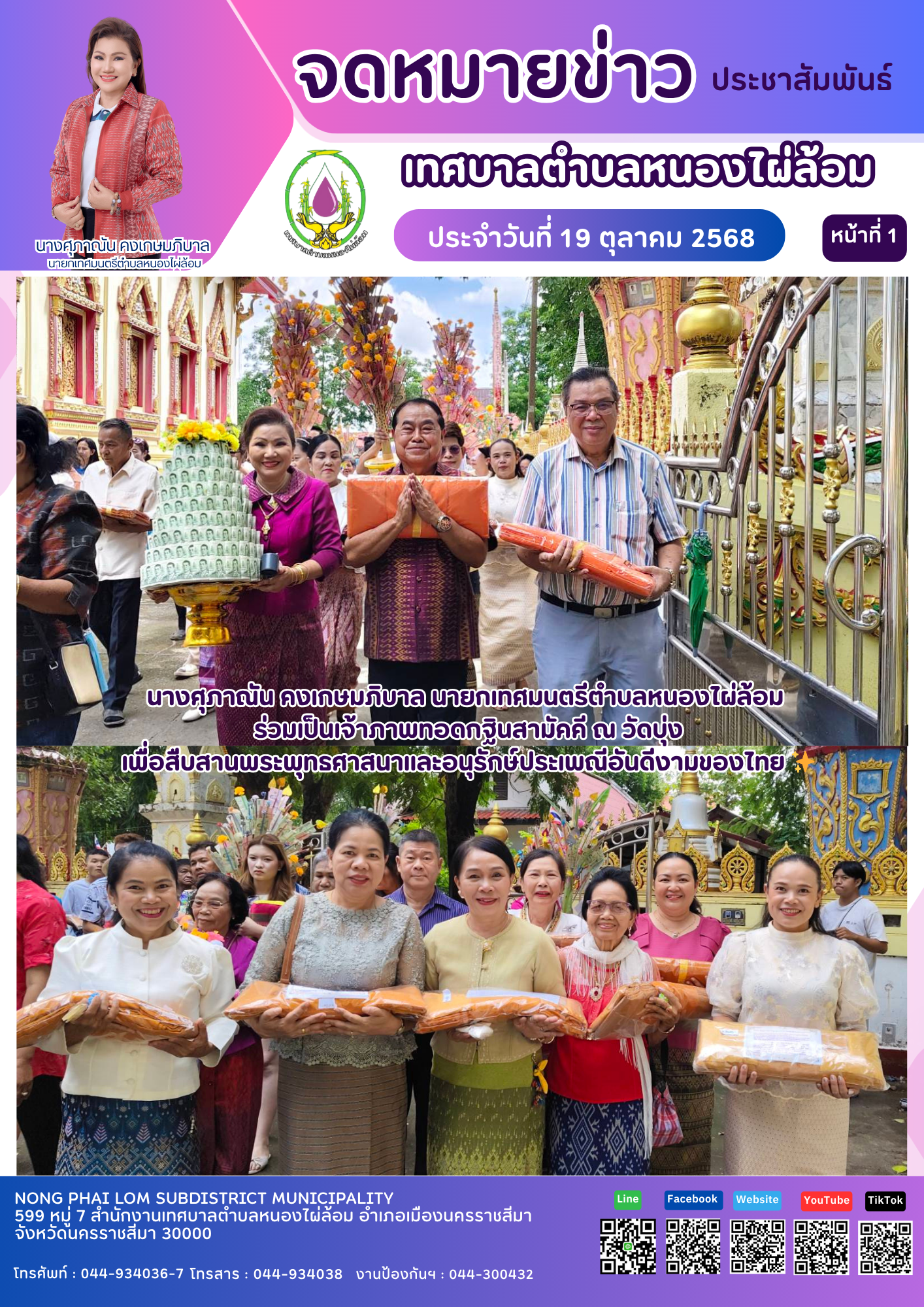 จดหมายข่าวเทศบาลตำบลหนองไผ่ล้อม ฉบับประจำวันที่ 19 ตุลาคม 2568 |