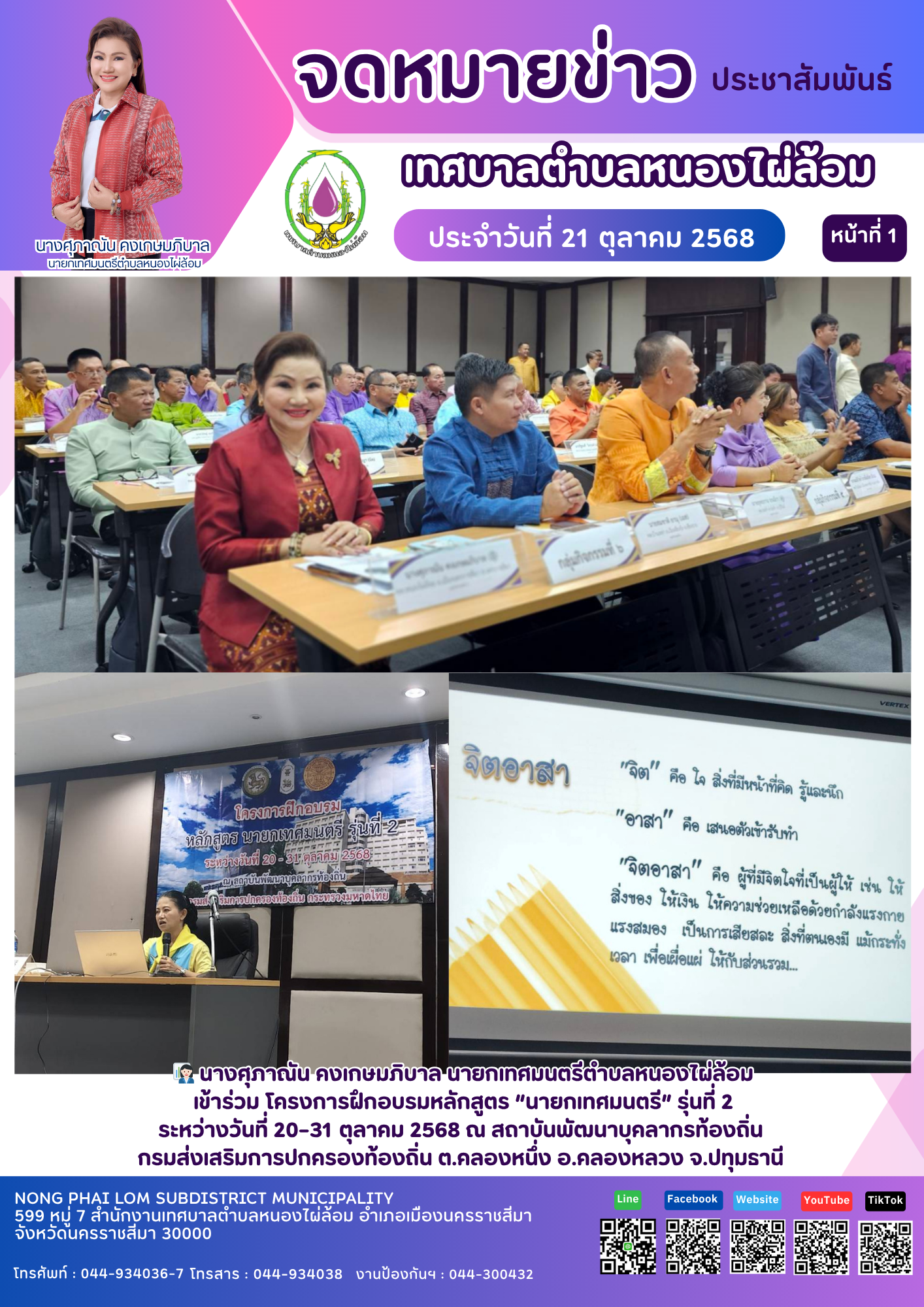 จดหมายข่าวเทศบาลตำบลหนองไผ่ล้อม ฉบับประจำวันที่ 21 ตุลาคม 2568 |