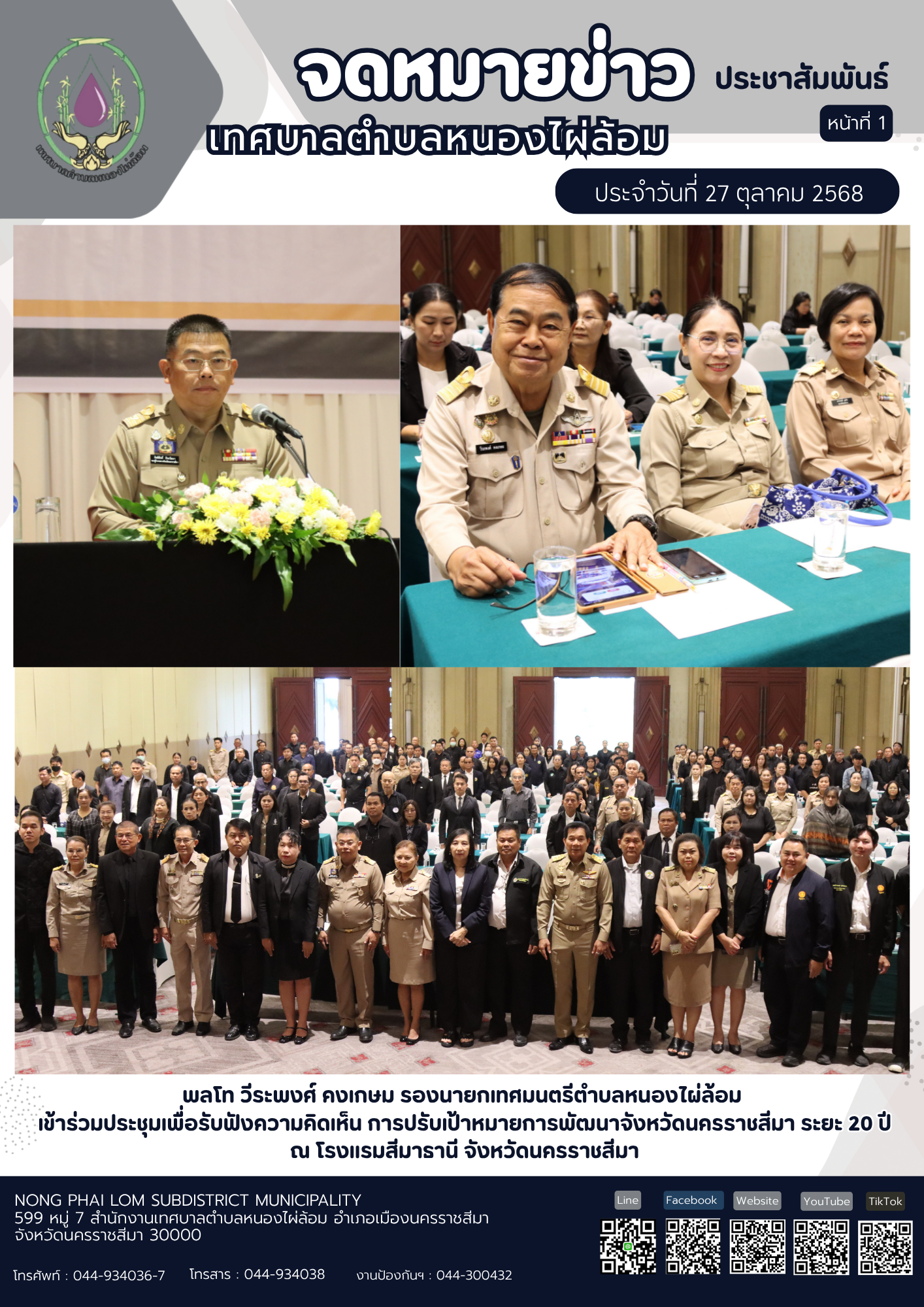 จดหมายข่าวเทศบาลตำบลหนองไผ่ล้อม ฉบับประจำวันที่ 27 ตุลาคม 2568 |