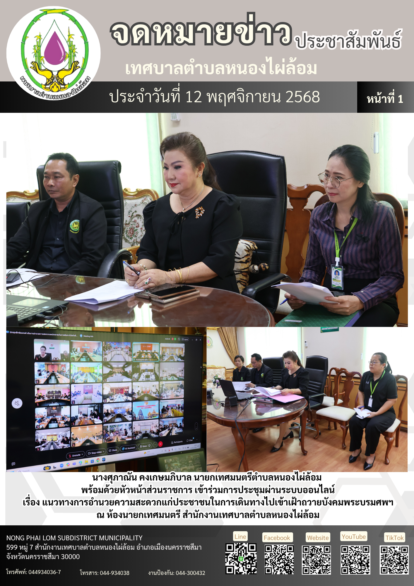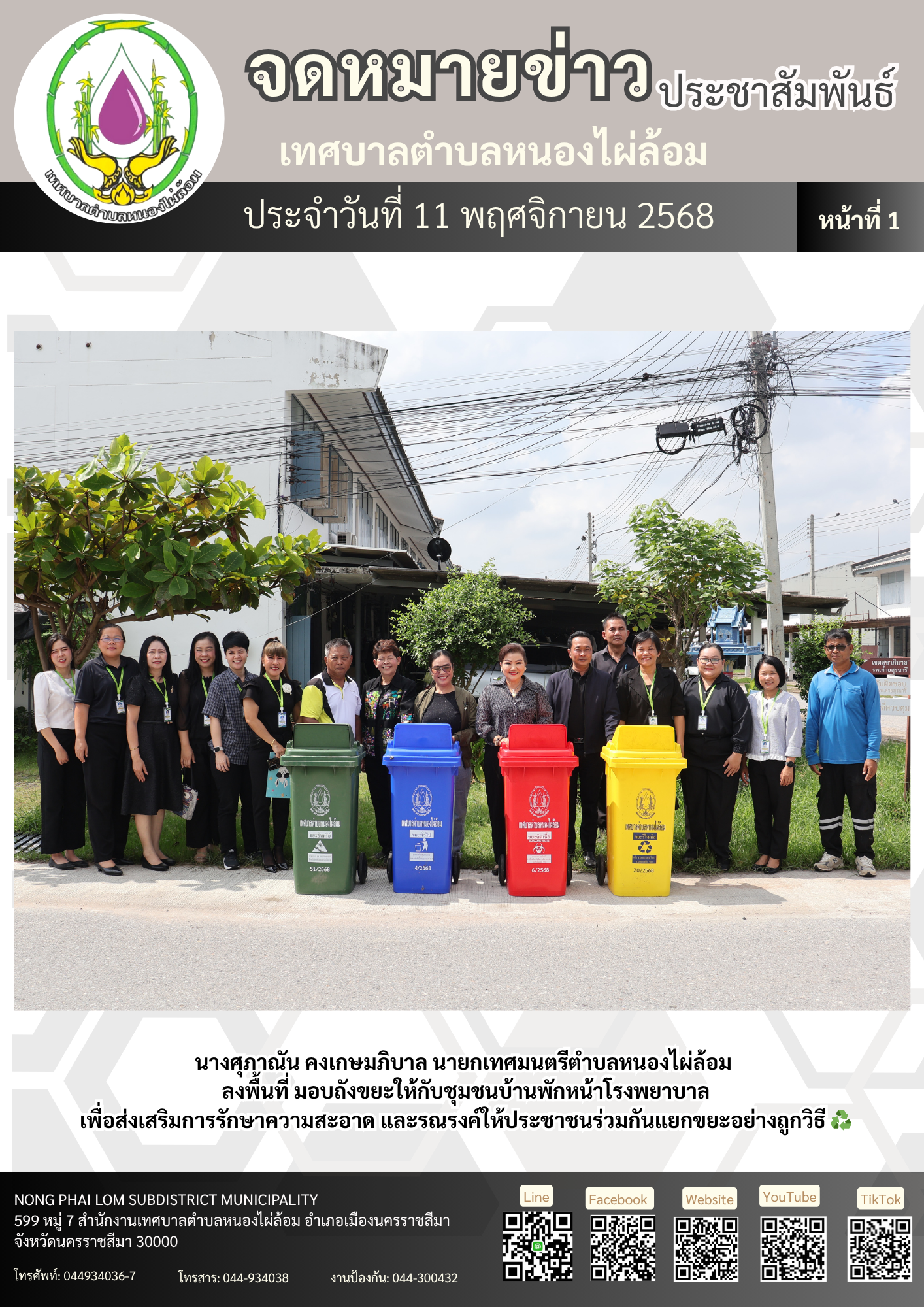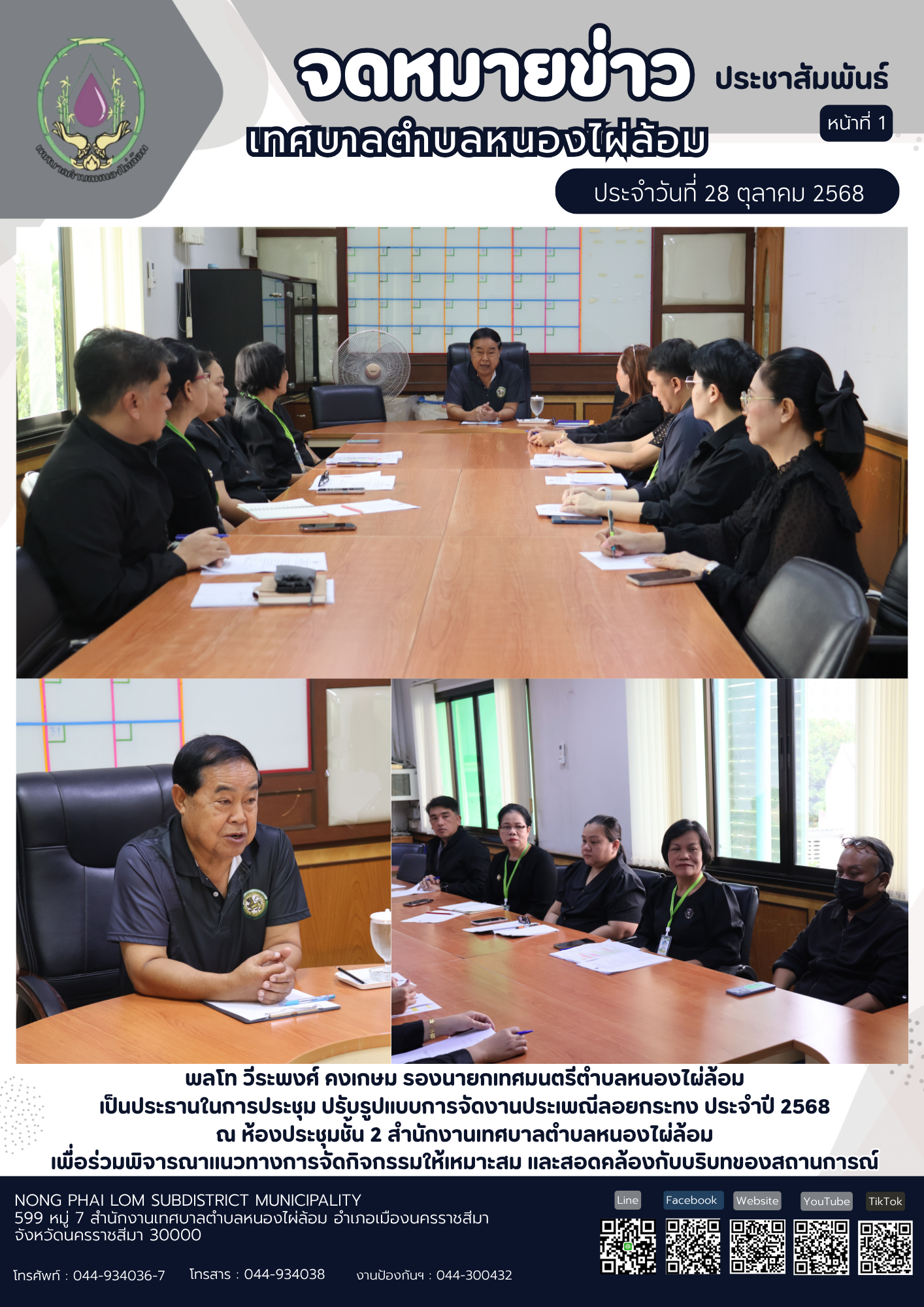 จดหมายข่าวเทศบาลตำบลหนองไผ่ล้อม ฉบับประจำวันที่ 1 พฤศจิกายน 2568 |