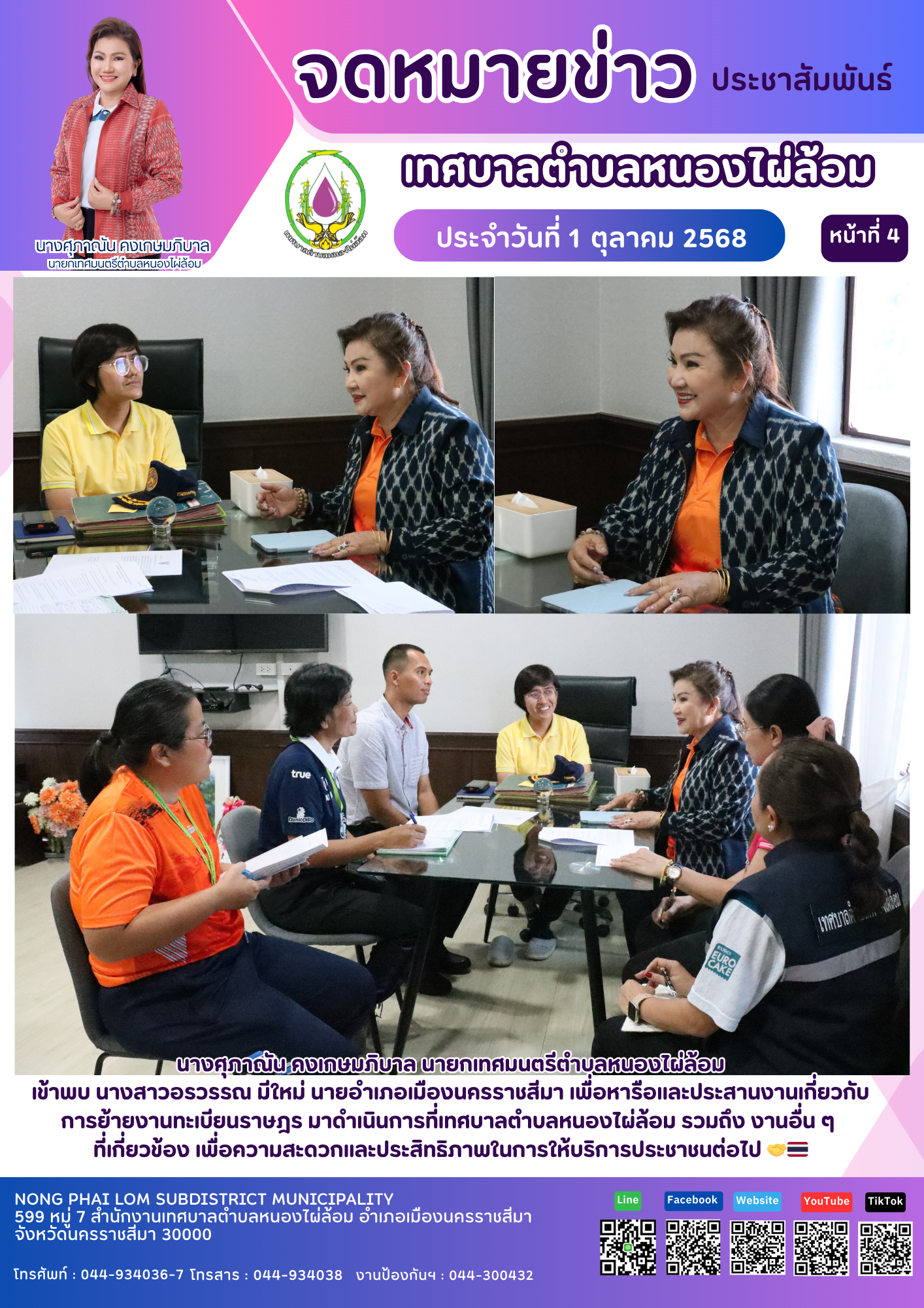 จดหมายข่าวเทศบาลตำบลหนองไผ่ล้อม ฉบับประจำวันที่ 1 ตุลาคม 2568