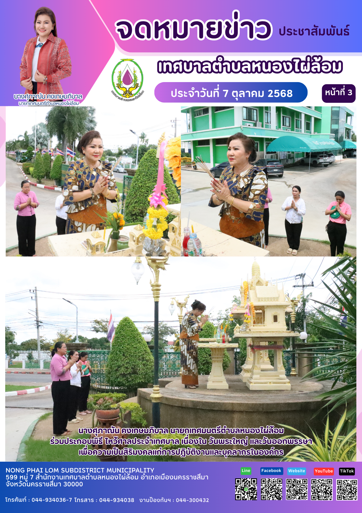 จดหมายข่าวเทศบาลตำบลหนองไผ่ล้อม ฉบับประจำวันที่ 7 ตุลาคม 2568