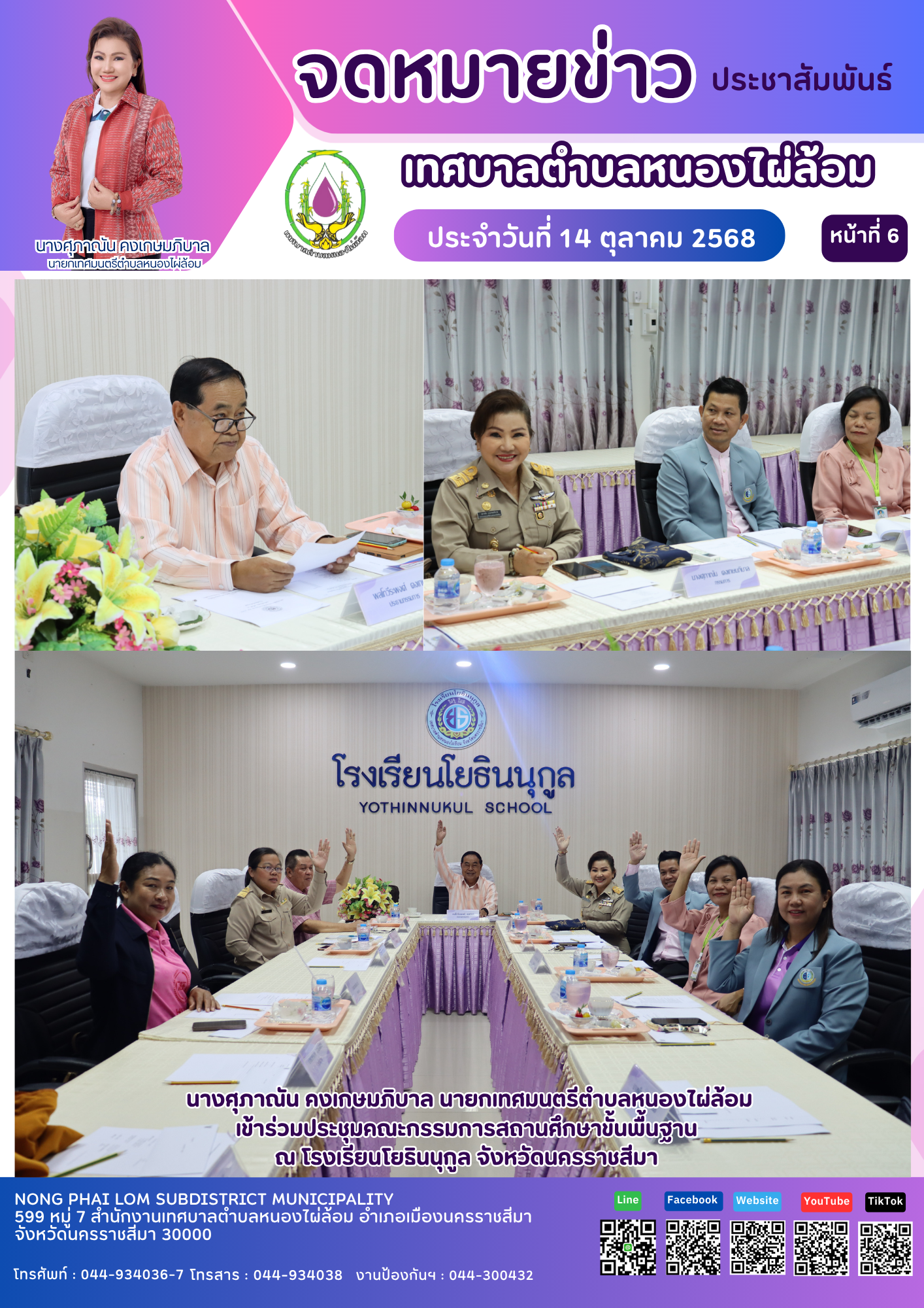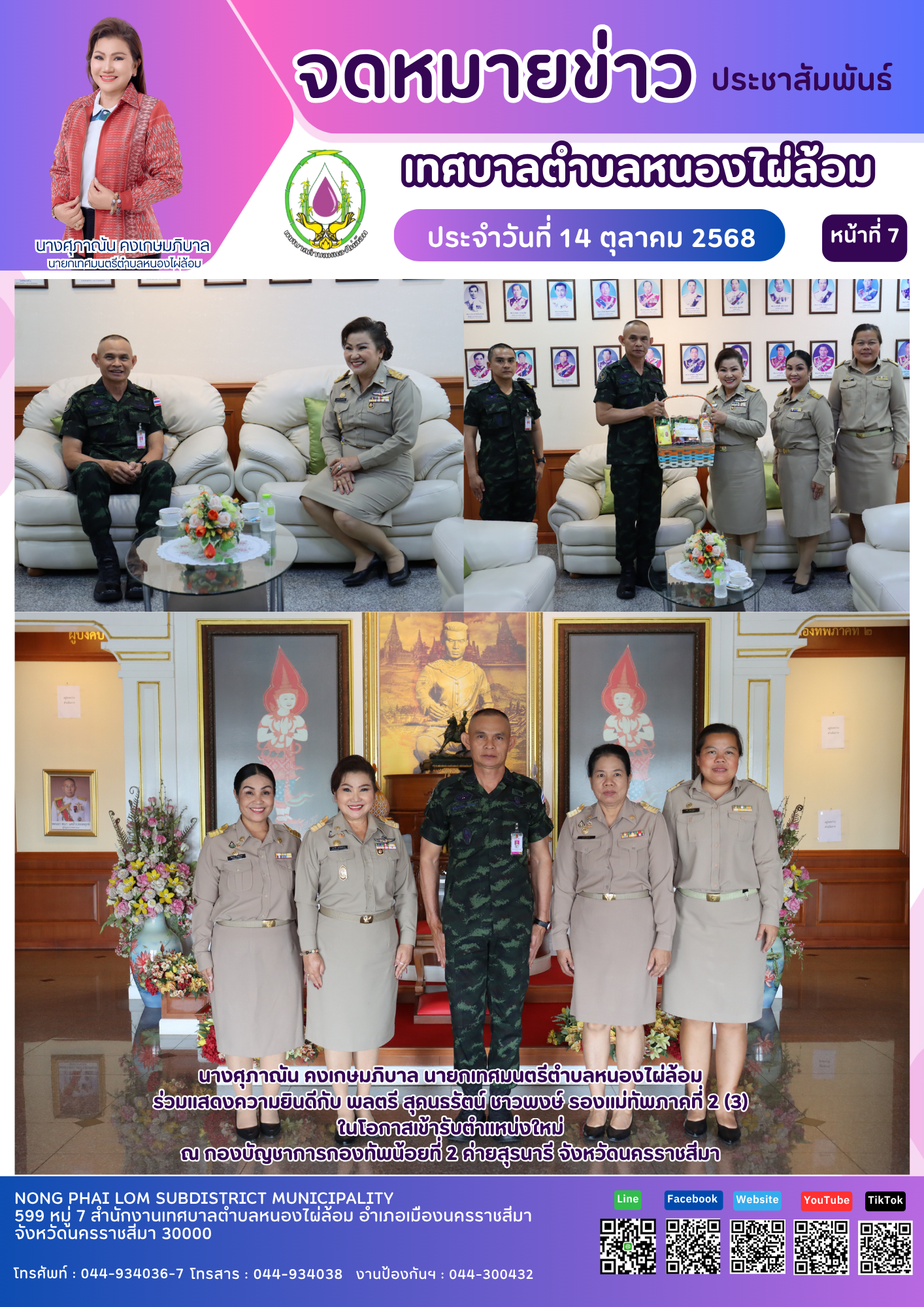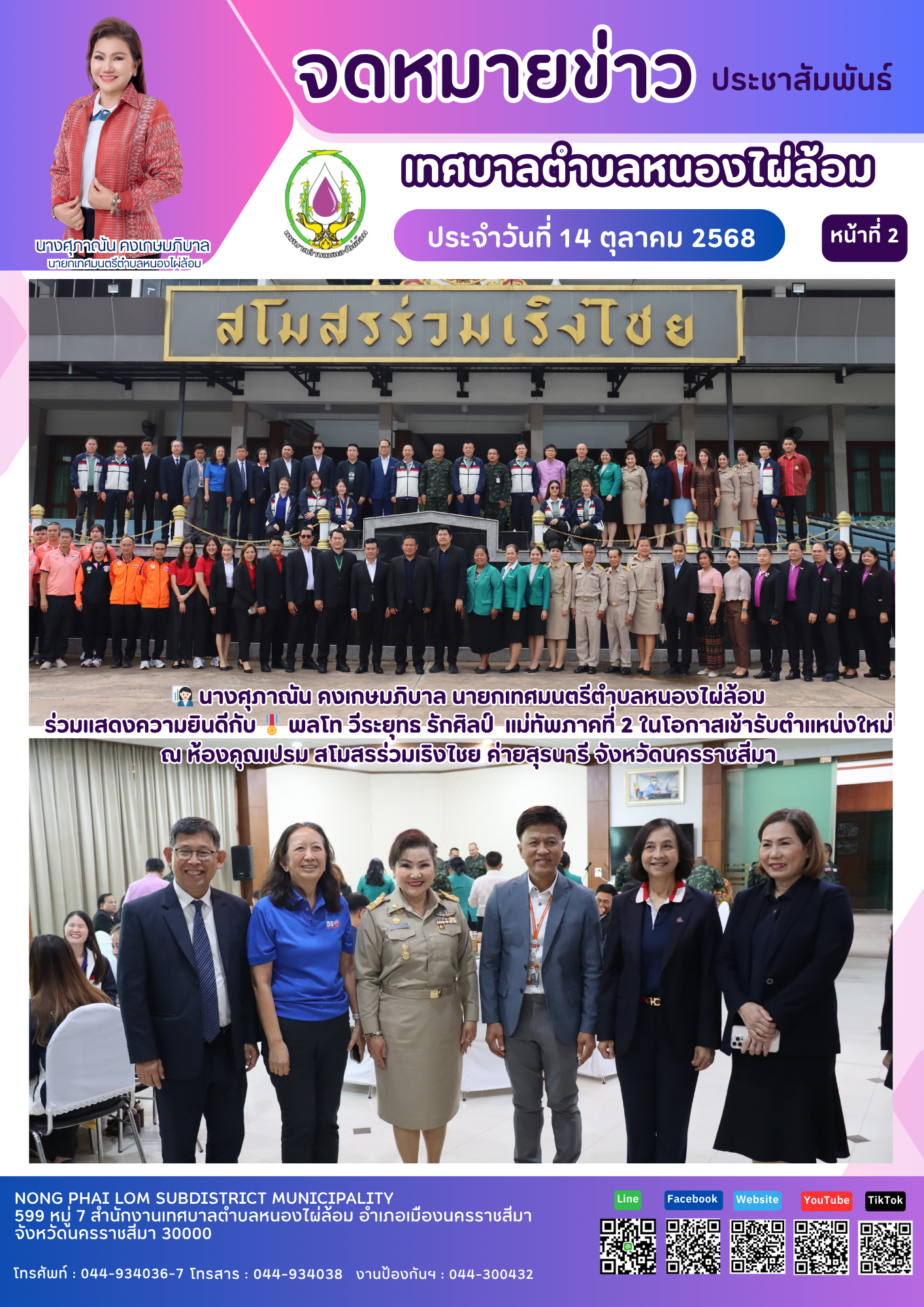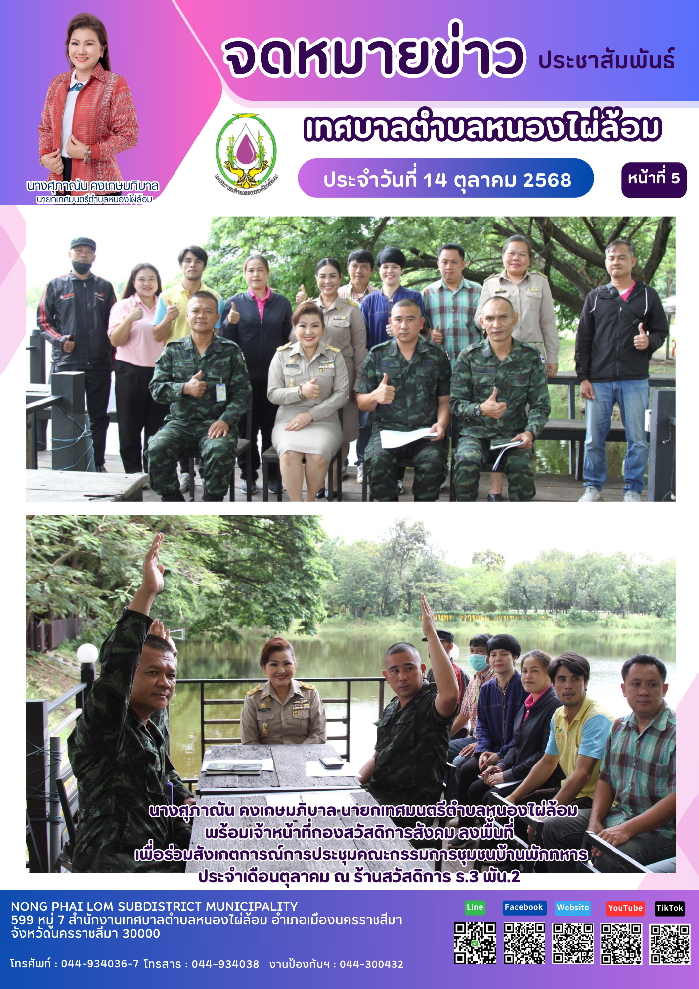 จดหมายข่าวเทศบาลตำบลหนองไผ่ล้อม ฉบับประจำวันที่ 14 ตุลาคม 2568