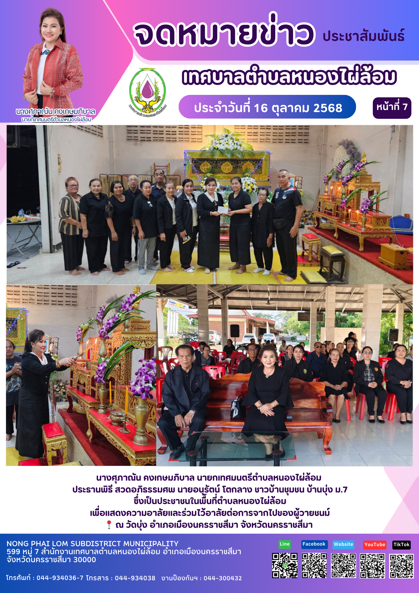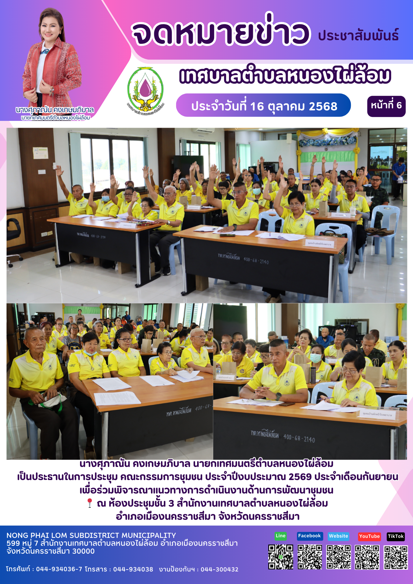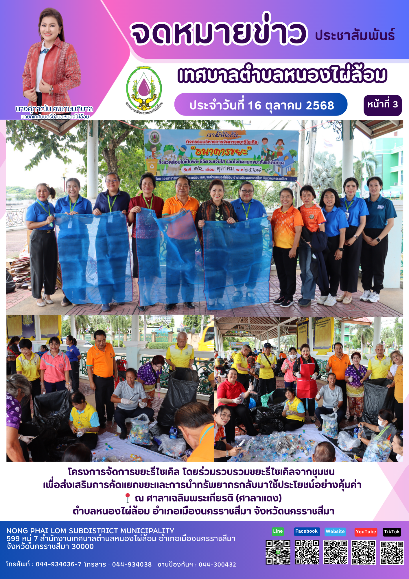 จดหมายข่าวเทศบาลตำบลหนองไผ่ล้อม ฉบับประจำวันที่ 16 ตุลาคม 2568