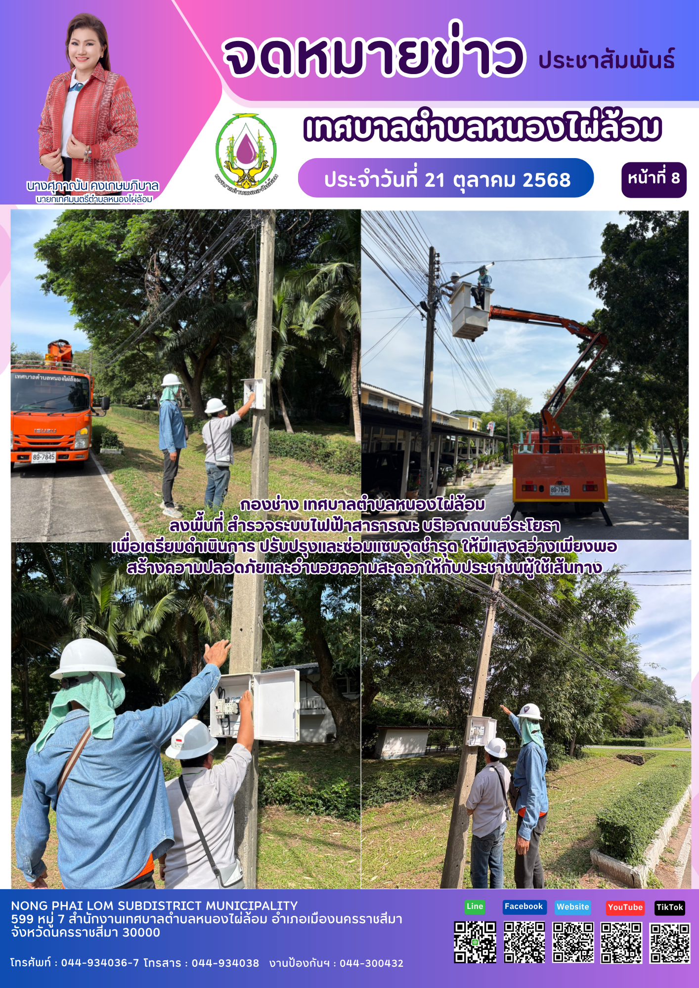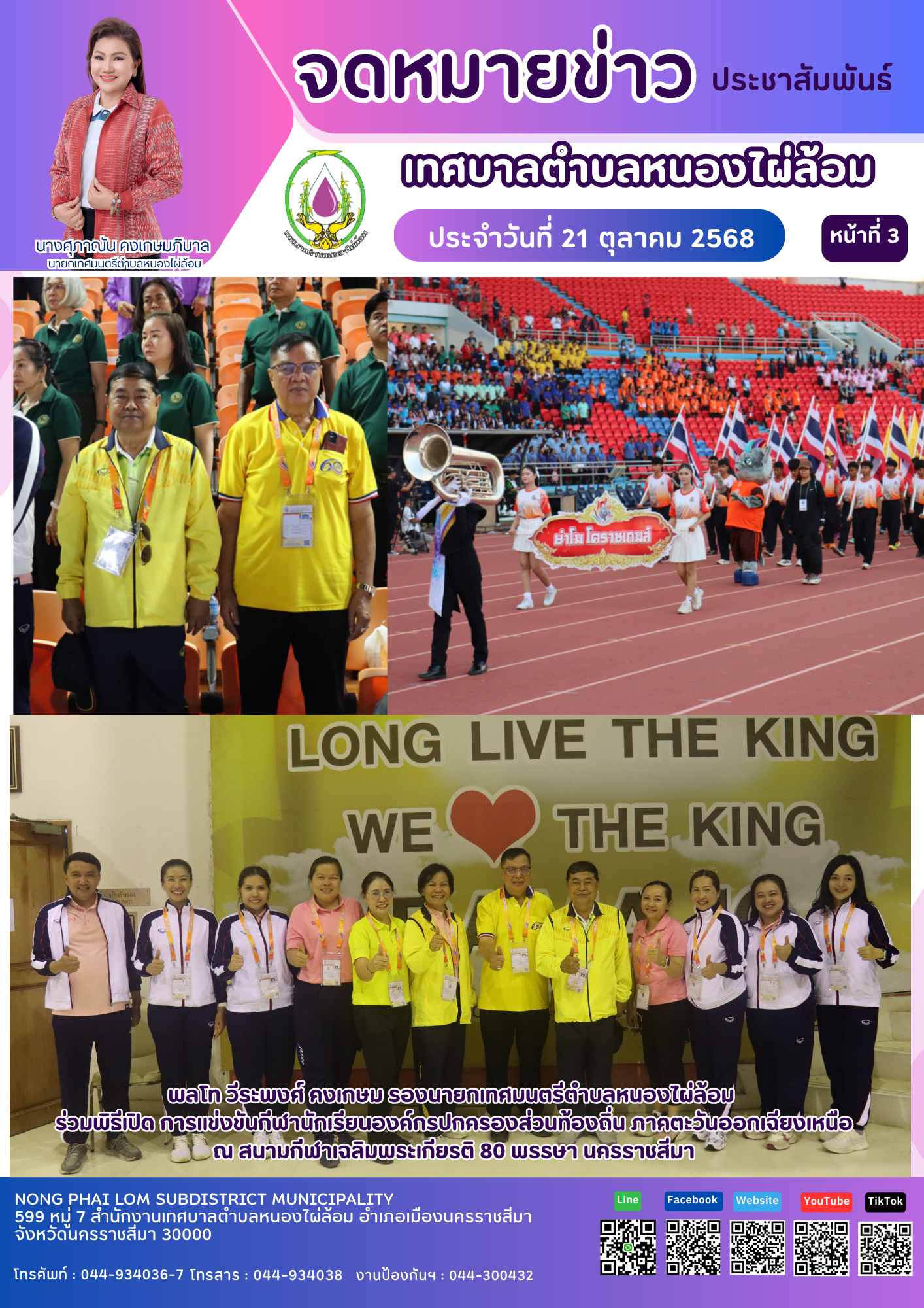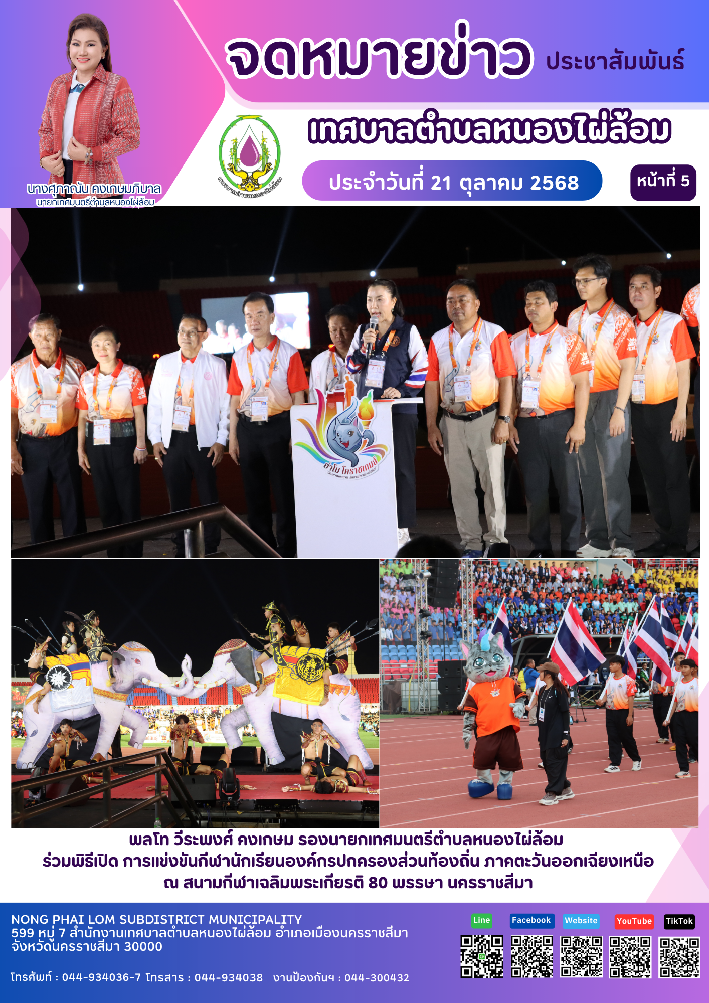 จดหมายข่าวเทศบาลตำบลหนองไผ่ล้อม ฉบับประจำวันที่ 21 ตุลาคม 2568