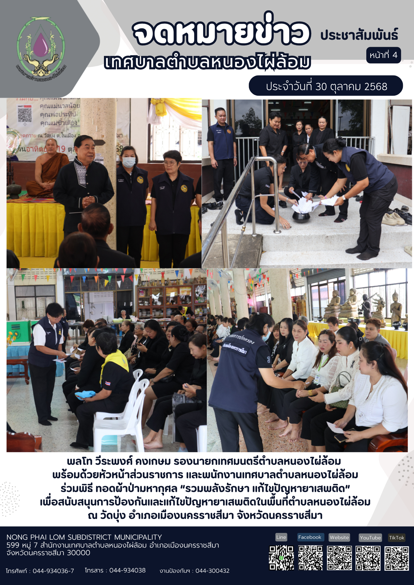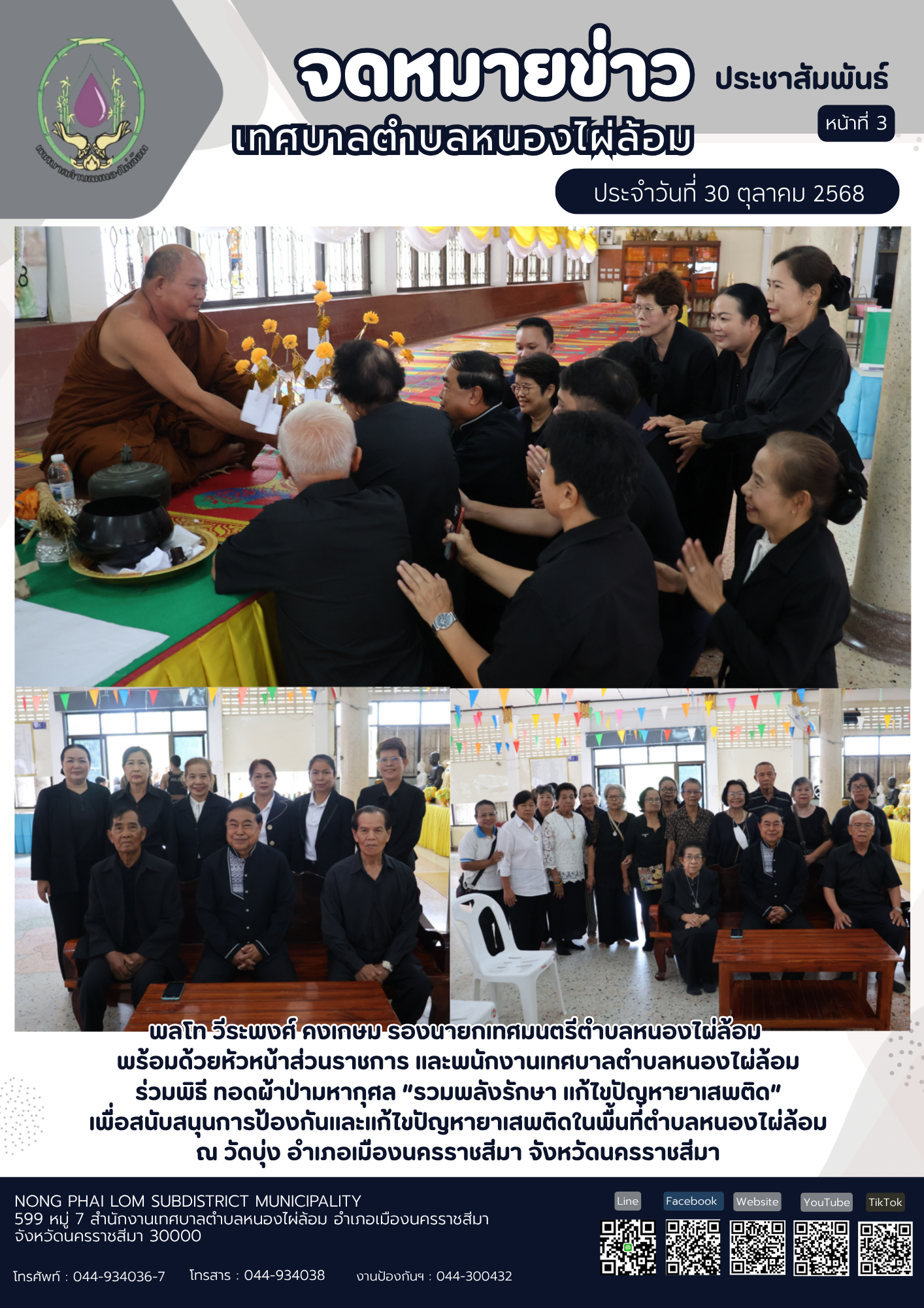 จดหมายข่าวเทศบาลตำบลหนองไผ่ล้อม ฉบับประจำวันที่ 30 ตุลาคม 2568