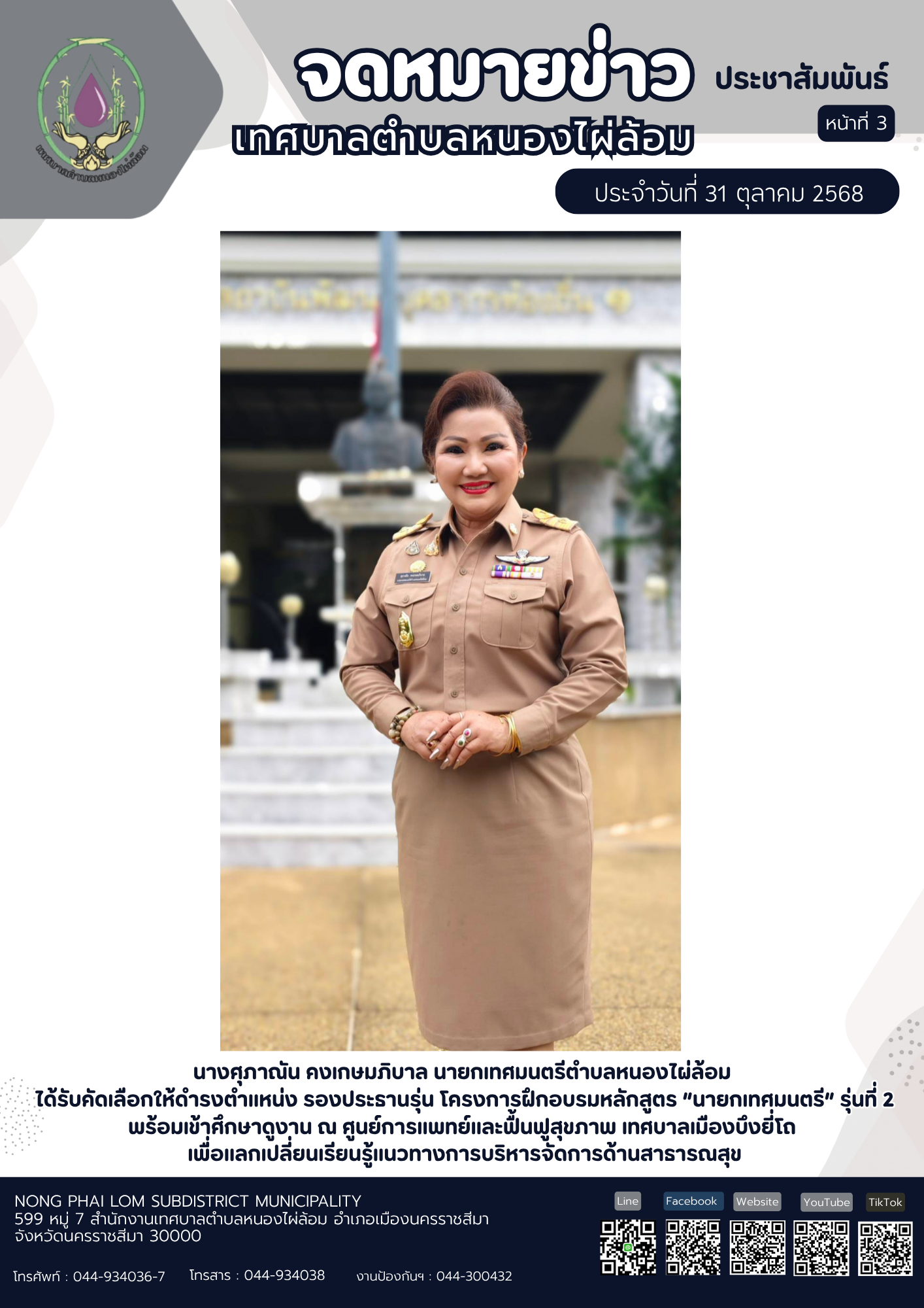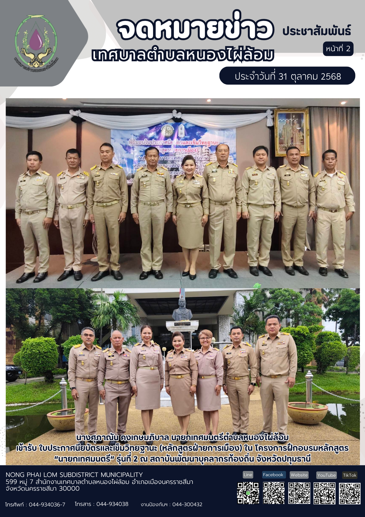 จดหมายข่าวเทศบาลตำบลหนองไผ่ล้อม ฉบับประจำวันที่ 31 ตุลาคม 2568