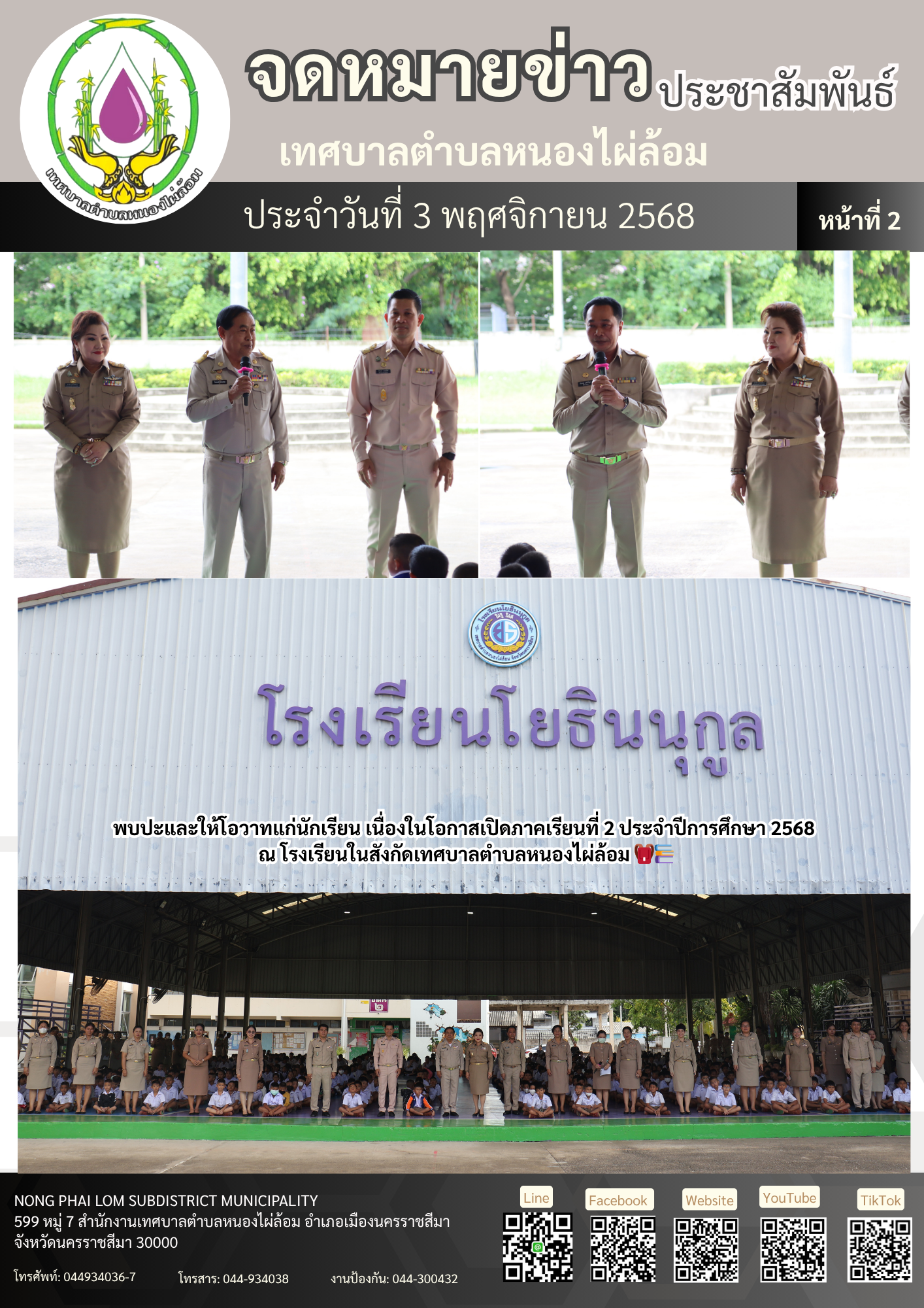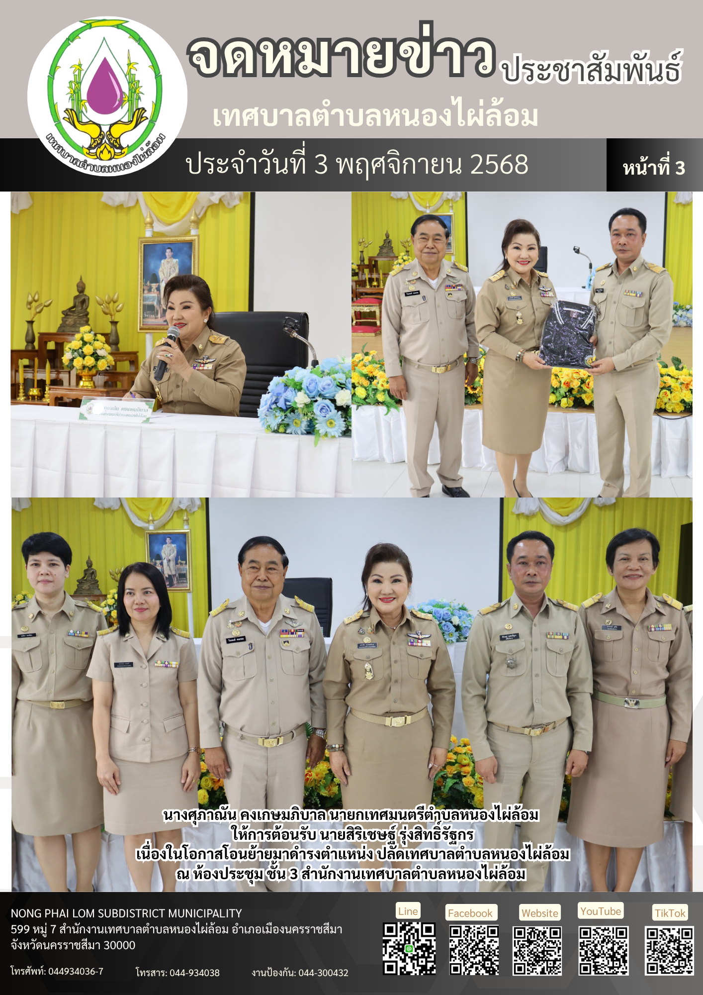 จดหมายข่าวเทศบาลตำบลหนองไผ่ล้อม ฉบับประจำวันที่ 3 พฤศจิกายน 2568