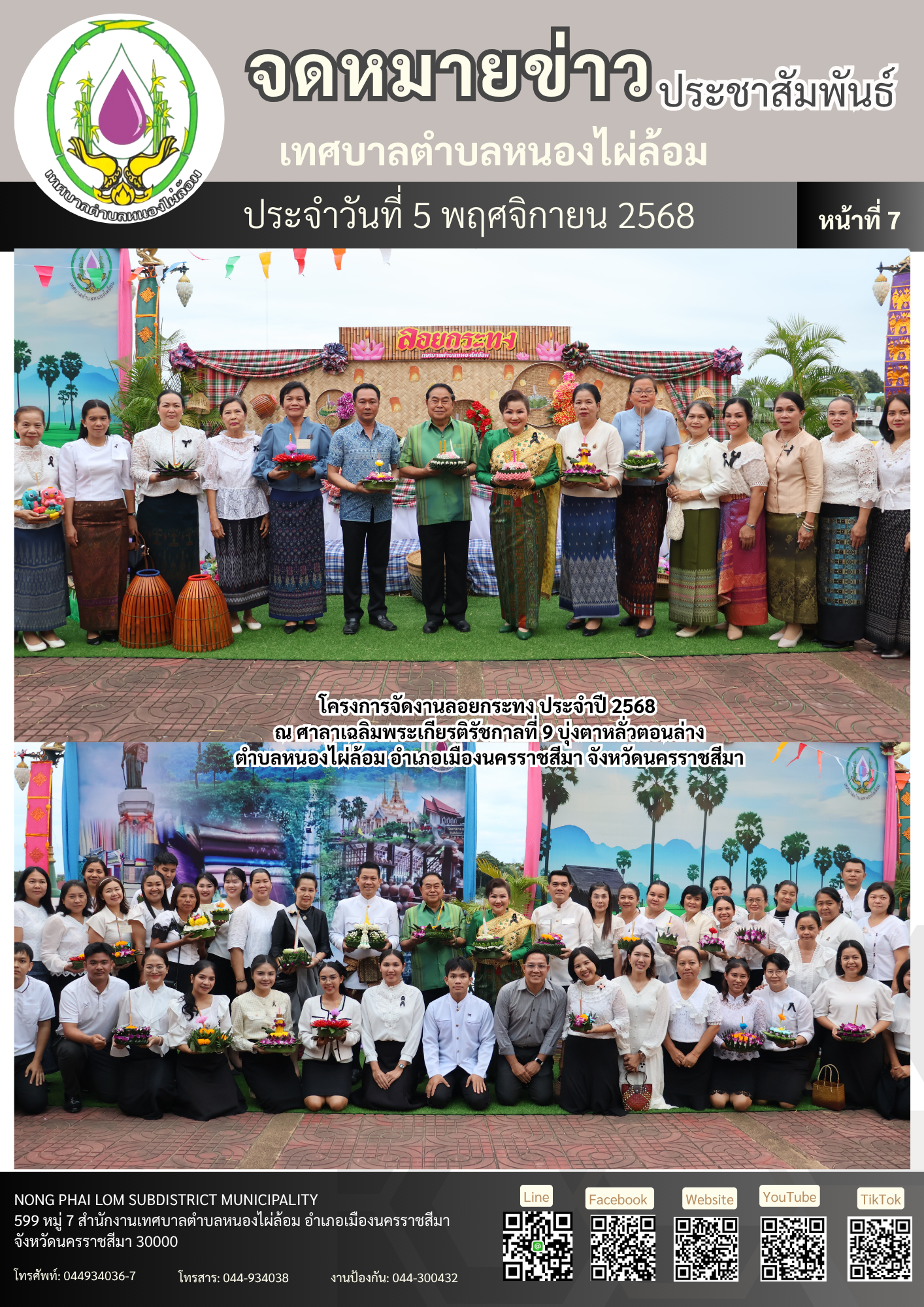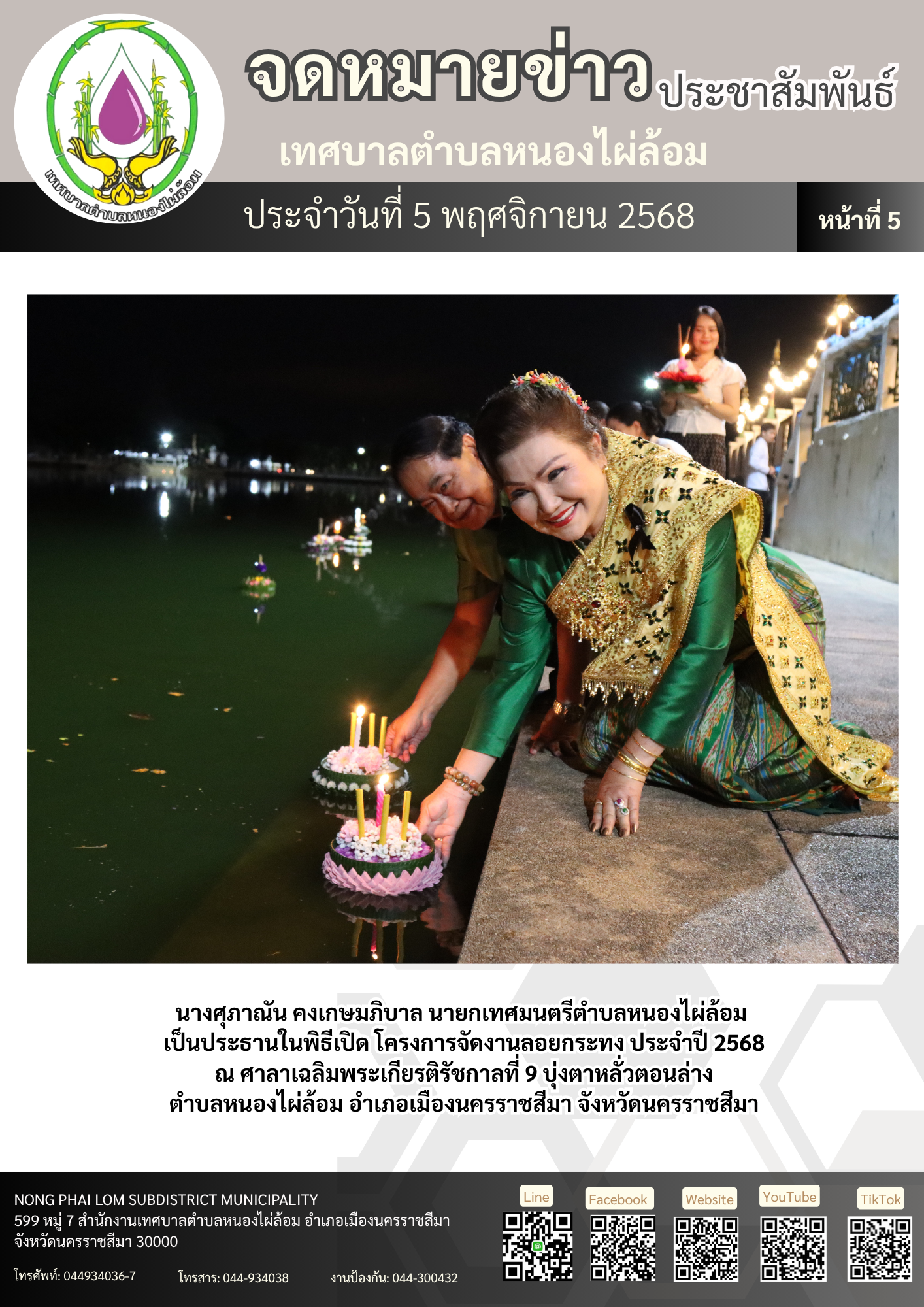 จดหมายข่าวเทศบาลตำบลหนองไผ่ล้อม ฉบับประจำวันที่ 5 พฤศจิกายน 2568