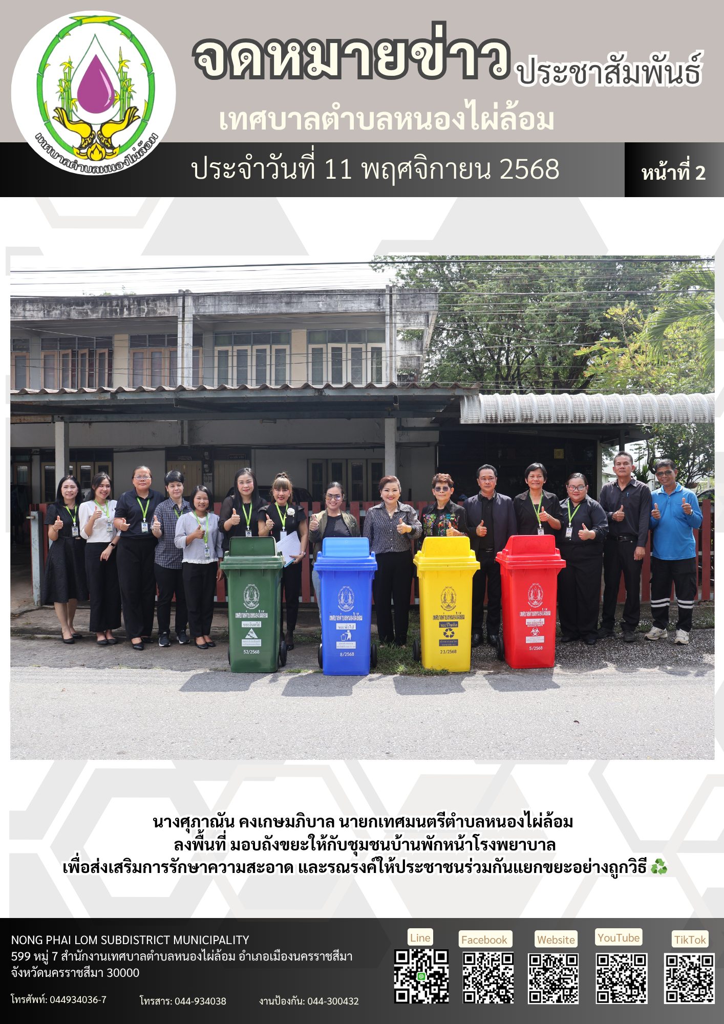 จดหมายข่าวเทศบาลตำบลหนองไผ่ล้อม ฉบับประจำวันที่ 11 พฤศจิกายน 2568