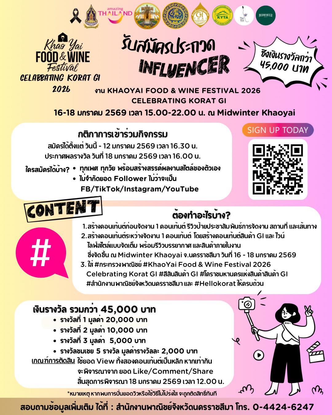 ???? เปิดรับสมัคร Influencer! ชวนร่วมงาน Khaoyai Food & Wine Festival 2026 |