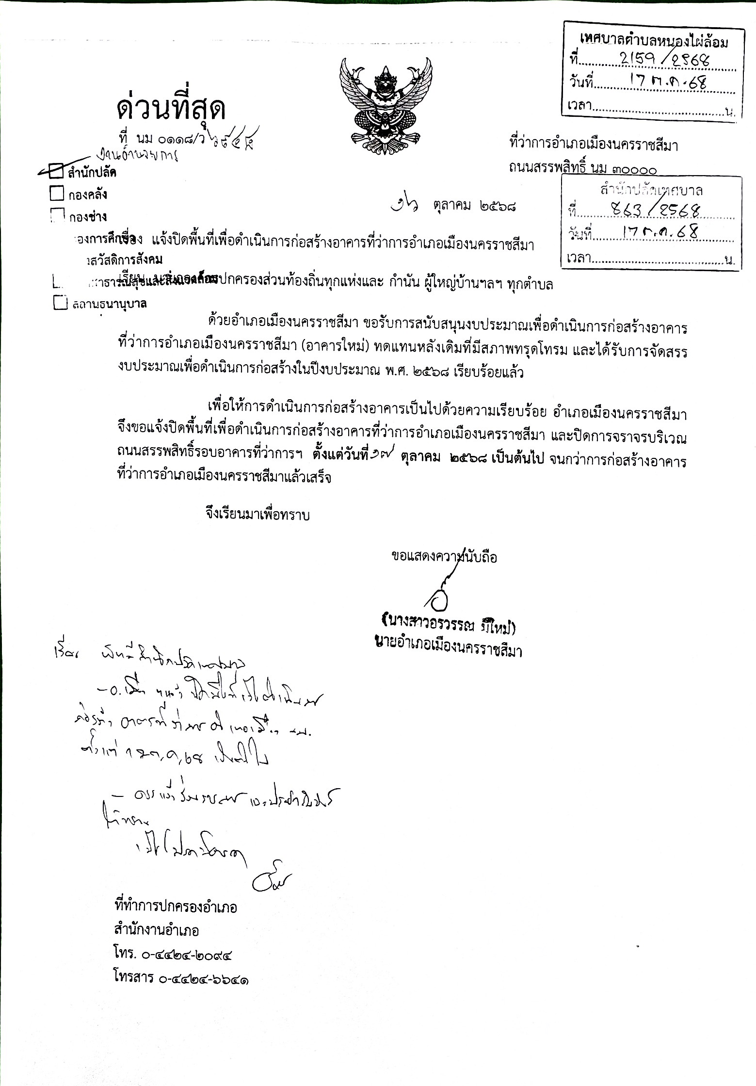 ???? #ประกาศปิดปรับปรุงพื้นที่ ????️ อาคารที่ว่าการอำเภอเมืองนครราชสีมา (หลังเดิม) |