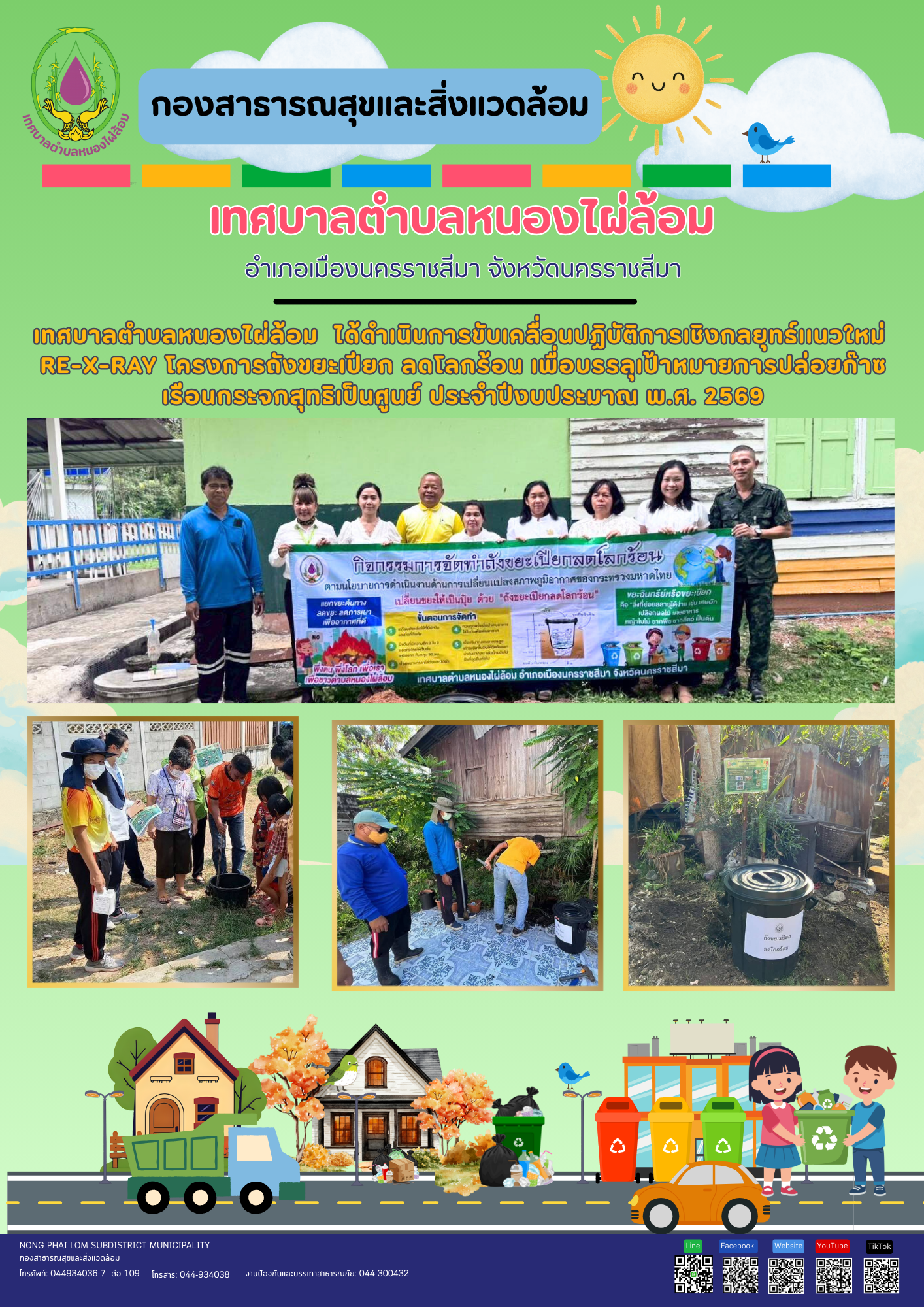 เทศบาลตำบลหนองไผ่ล้อม ได้ดำเนินการขับเคลื่อนปฏิบัติการเชิงกลยุทธ์เเนวใหม่ RE-X-RAY โครงการถังขยะเปียก ลดโลกร้อน เพื่อบรรลุเป้าหมายการปล่อยก๊าซเรือนกระจกสุทธิเป็นศูนย์ ประจำปีงบประมาณ พ.ศ. 2569 |