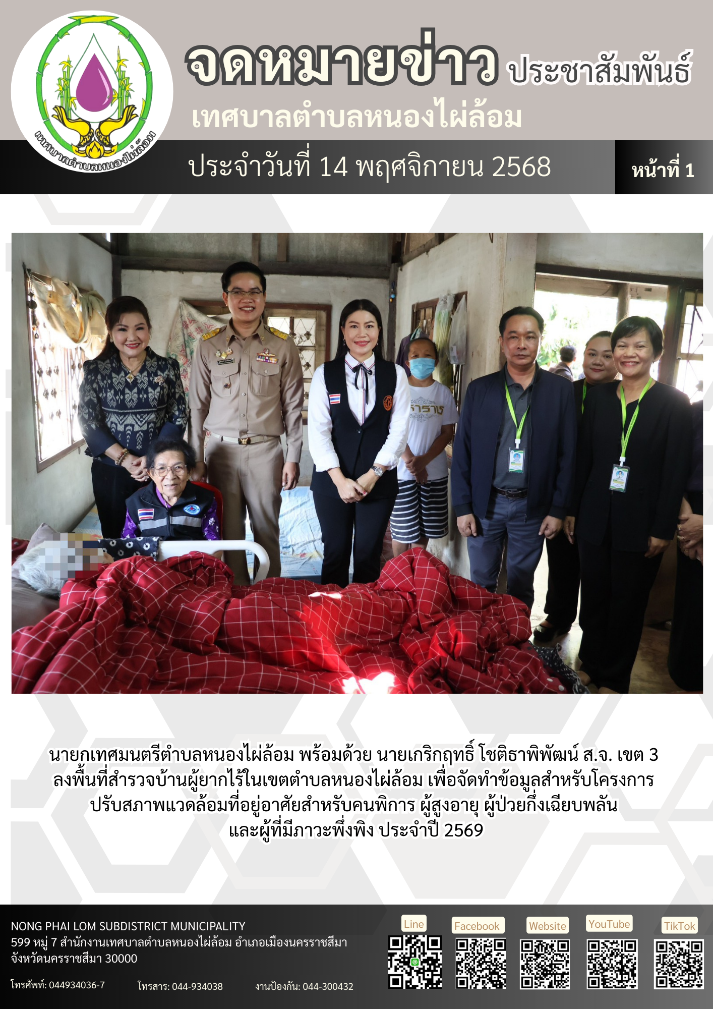 จดหมายข่าวเทศบาลตำบลหนองไผ่ล้อม ฉบับประจำวันที่ 14 พฤศจิกายน 2568 |