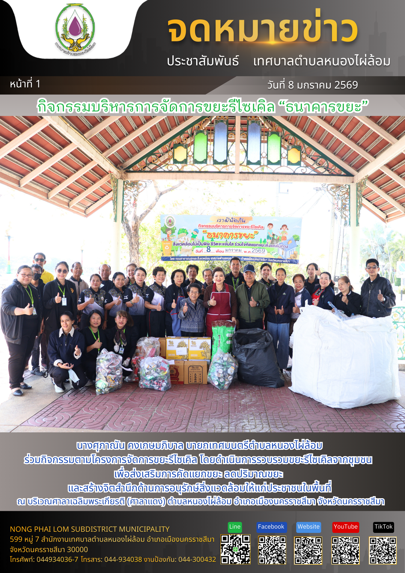 จดหมายข่าวเทศบาลตำบลหนองไผ่ล้อม ฉบับประจำวันที่ 8 มกราคม 2569 |