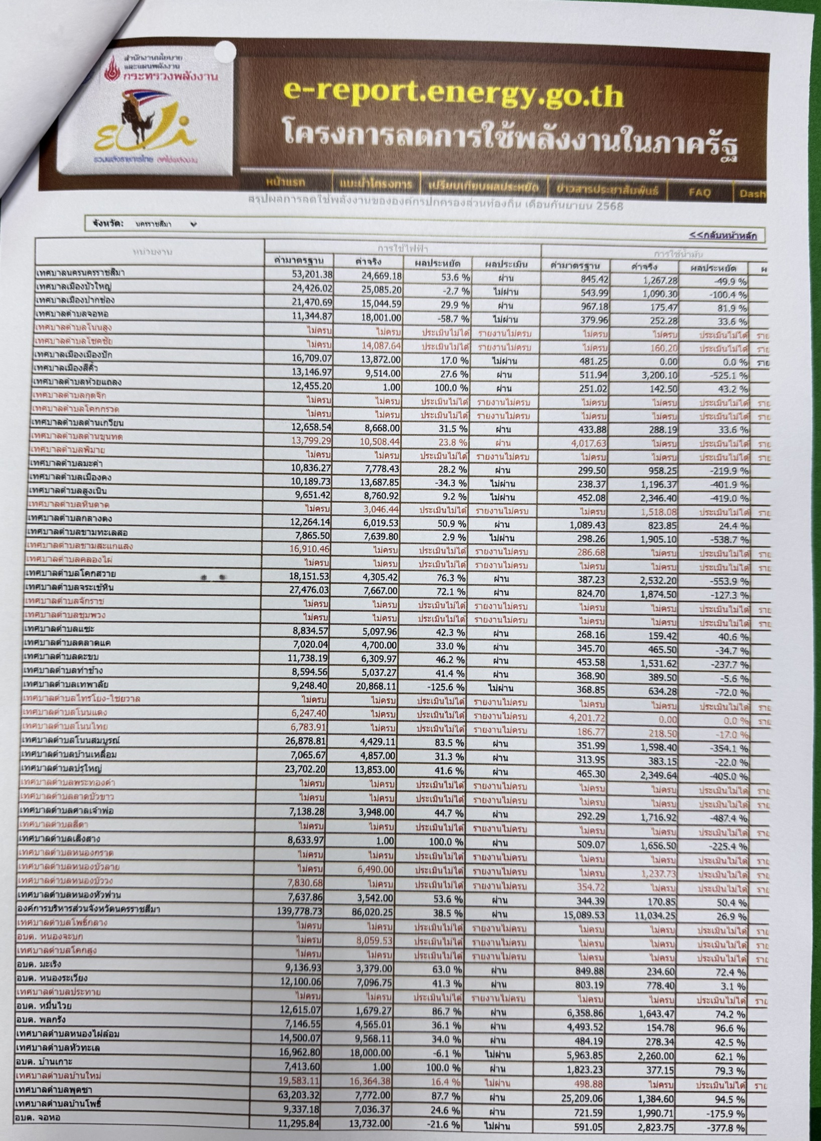 การลดการใช้พลังงานในภาครัฐ เทศบาลตำบลหนองไผ่ล้อม รอบ 6 เดือน (ตุลาคม 2567-มีนาคม 2568) |