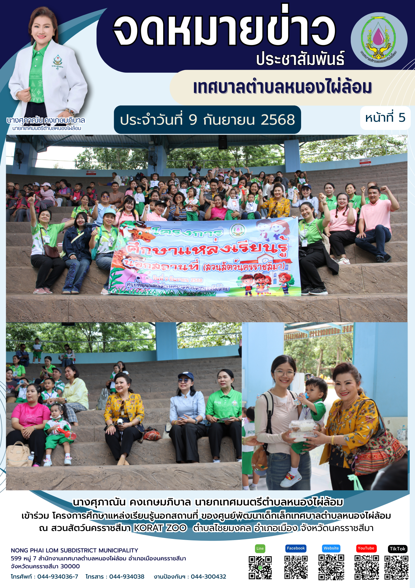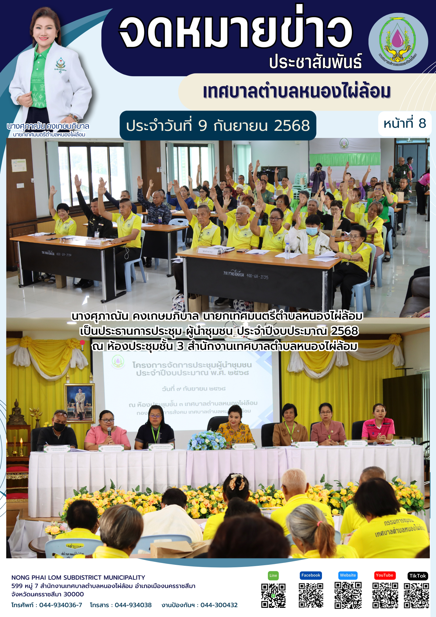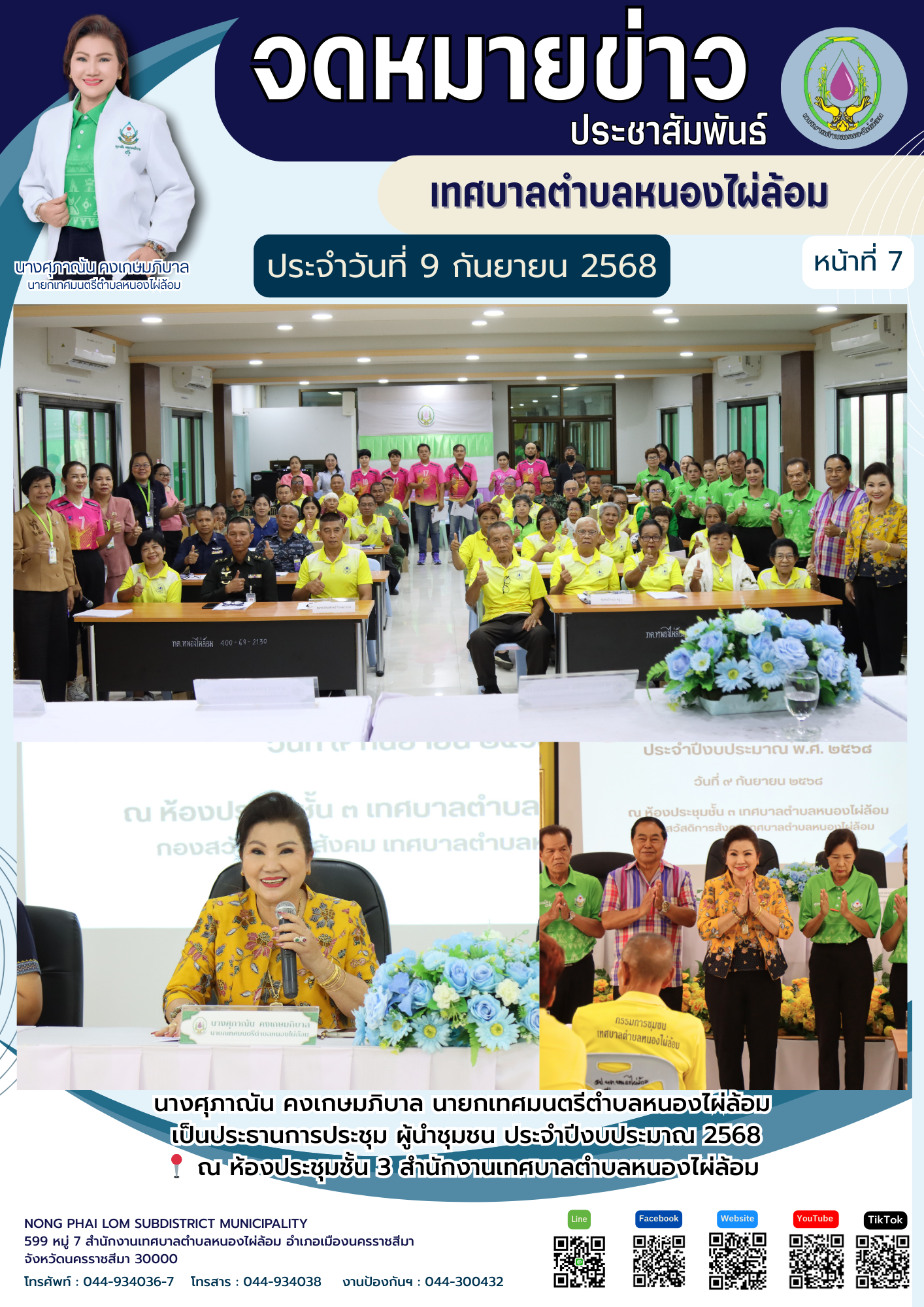 จดหมายข่าวเทศบาลตำบลหนองไผ่ล้อมประจำวันที่ 9 กันยายน 2568